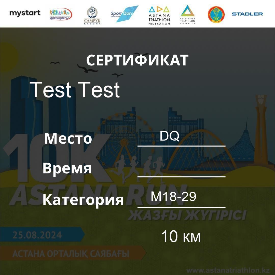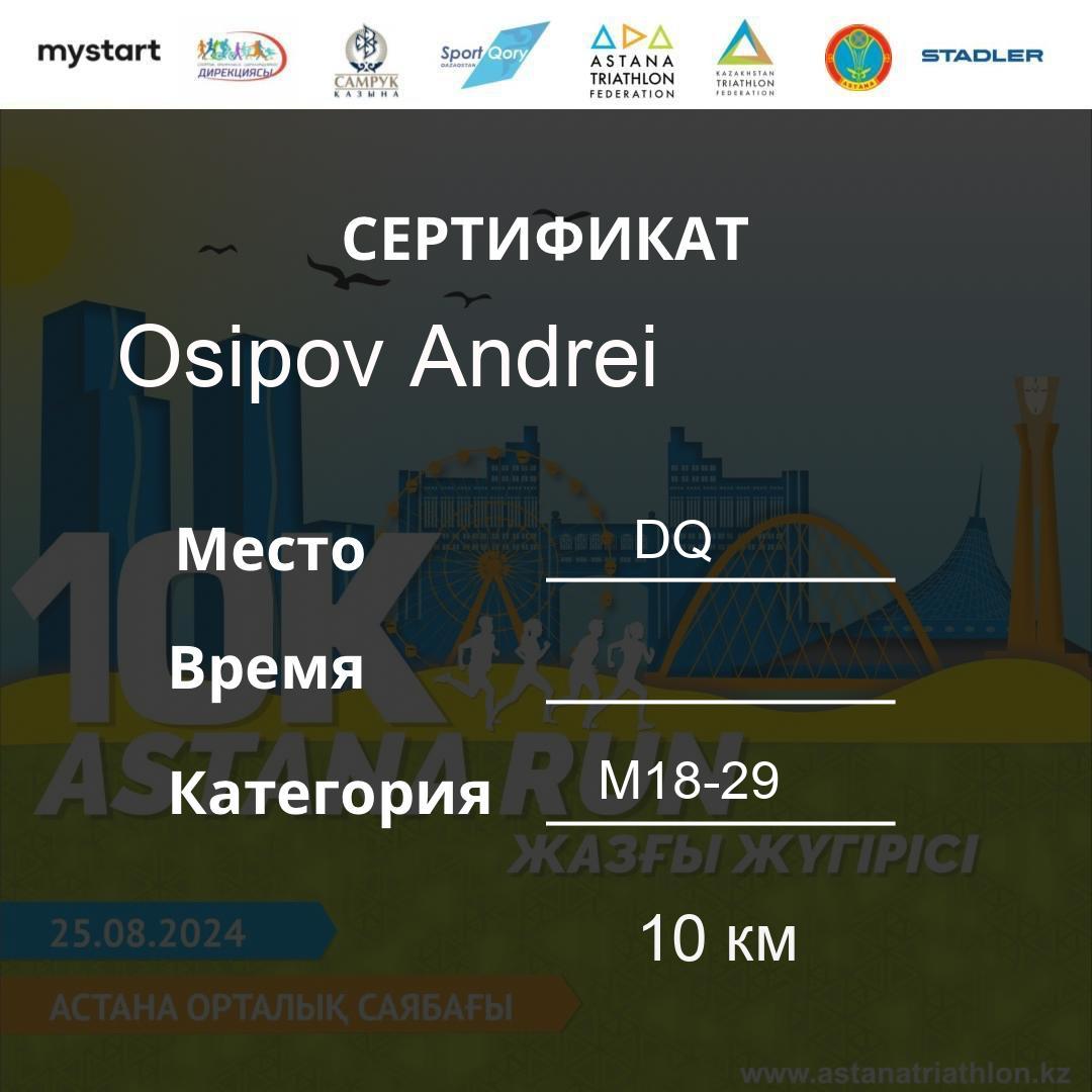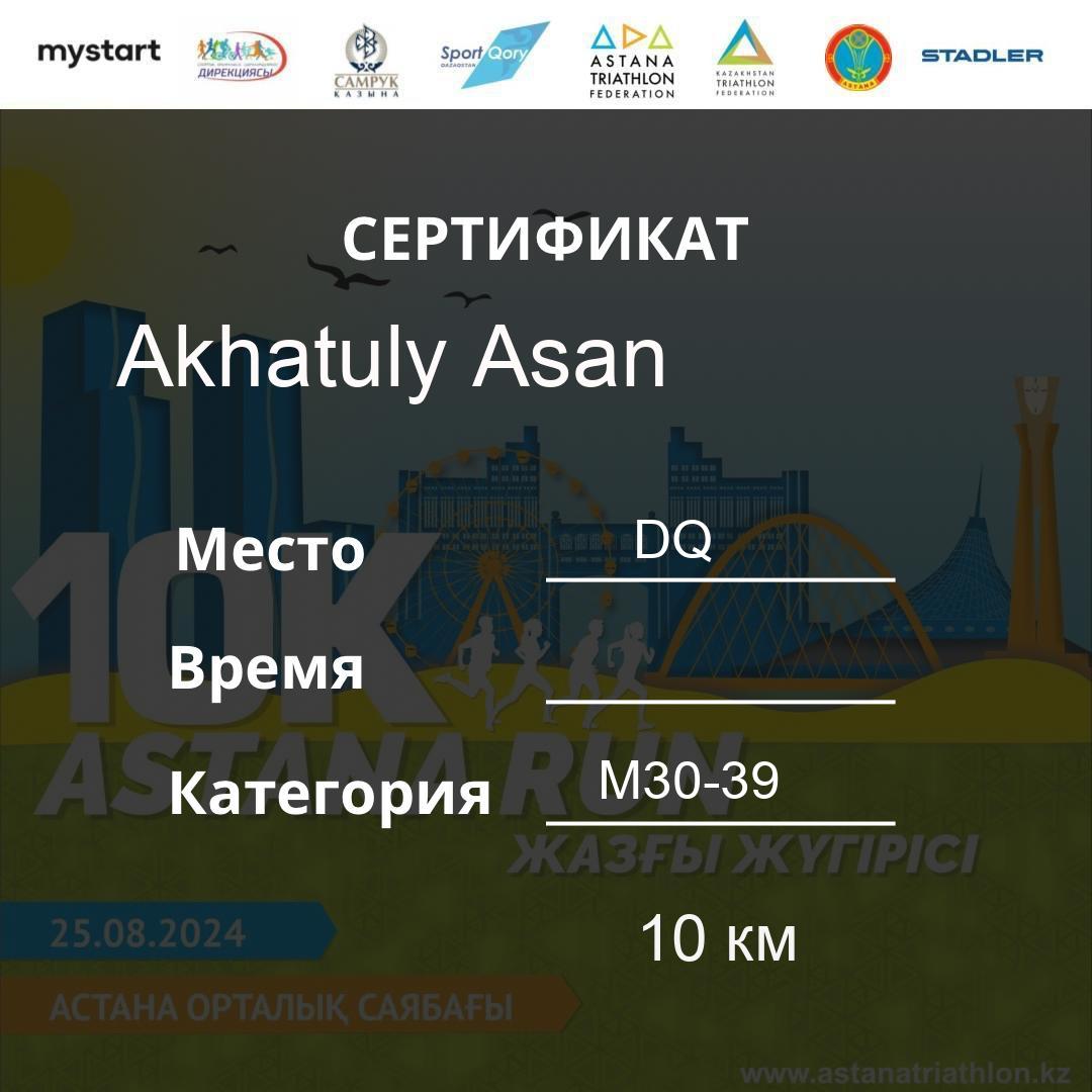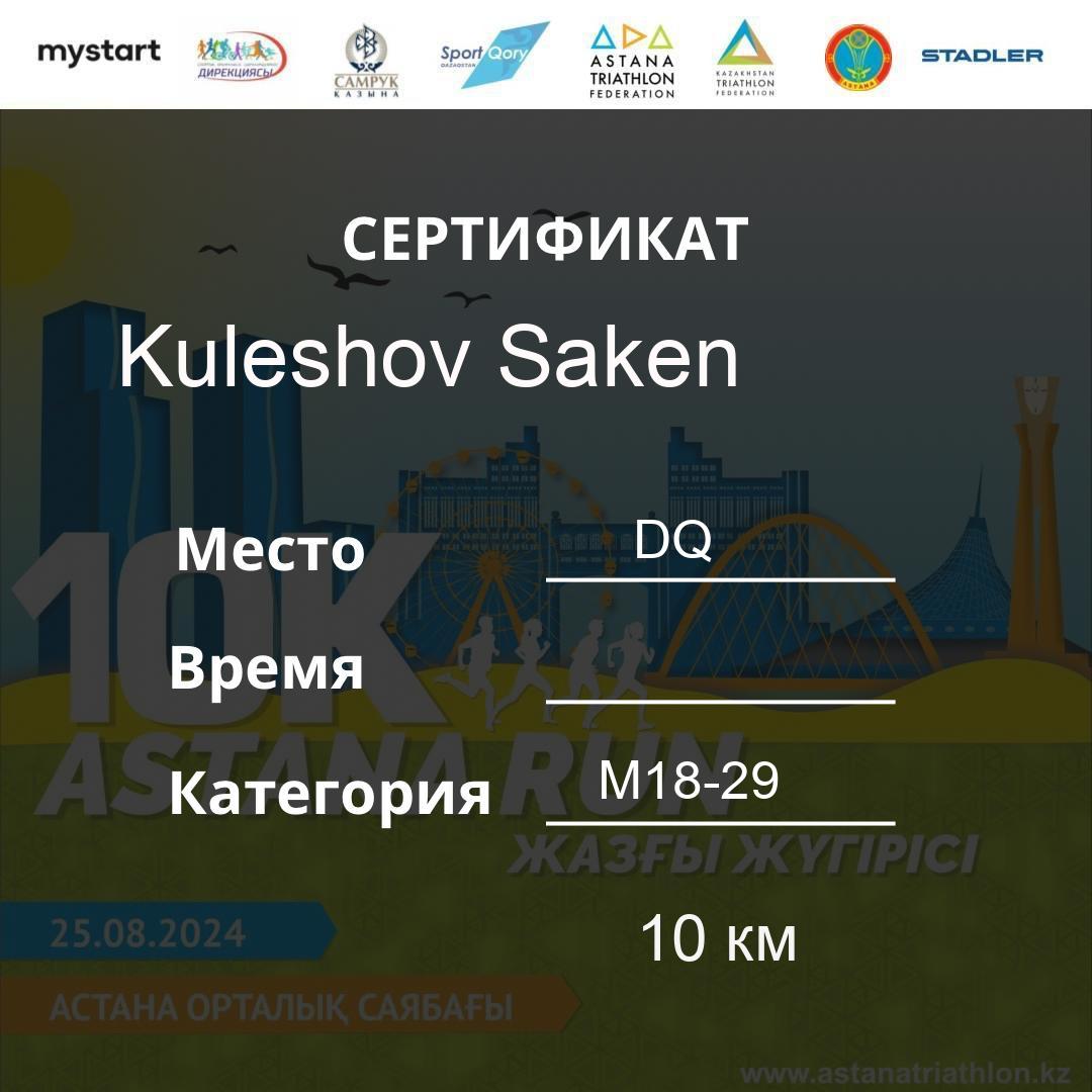 | DQ | Usserbayeva Aizhan | 626 | F30-39 | 10 км | Download | ||