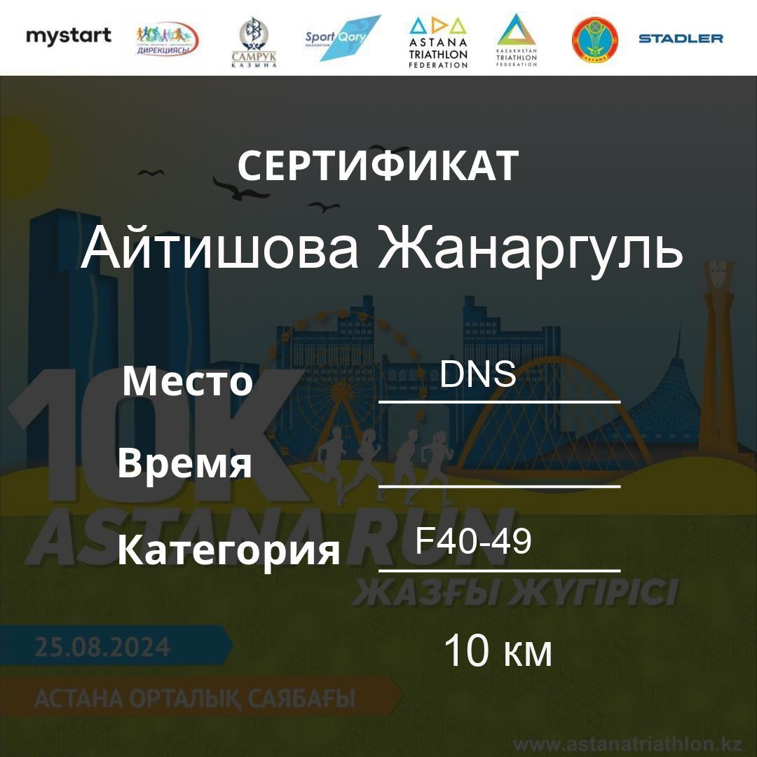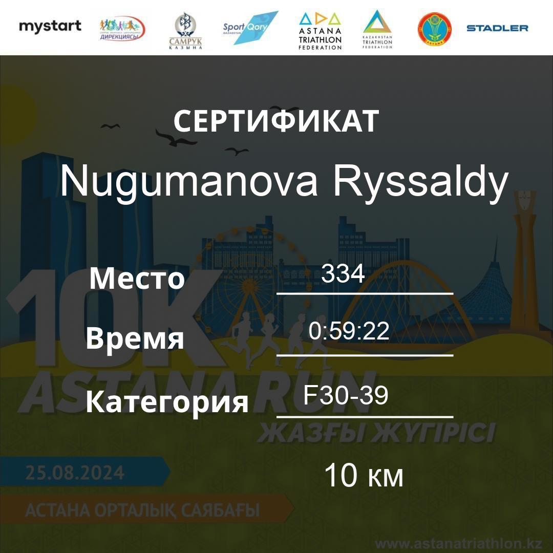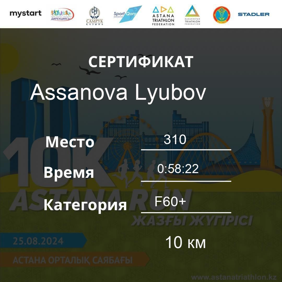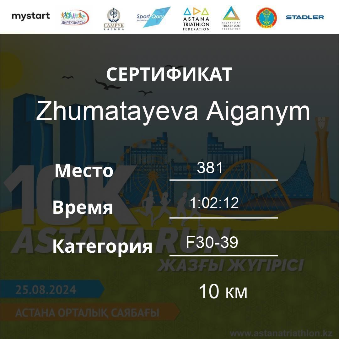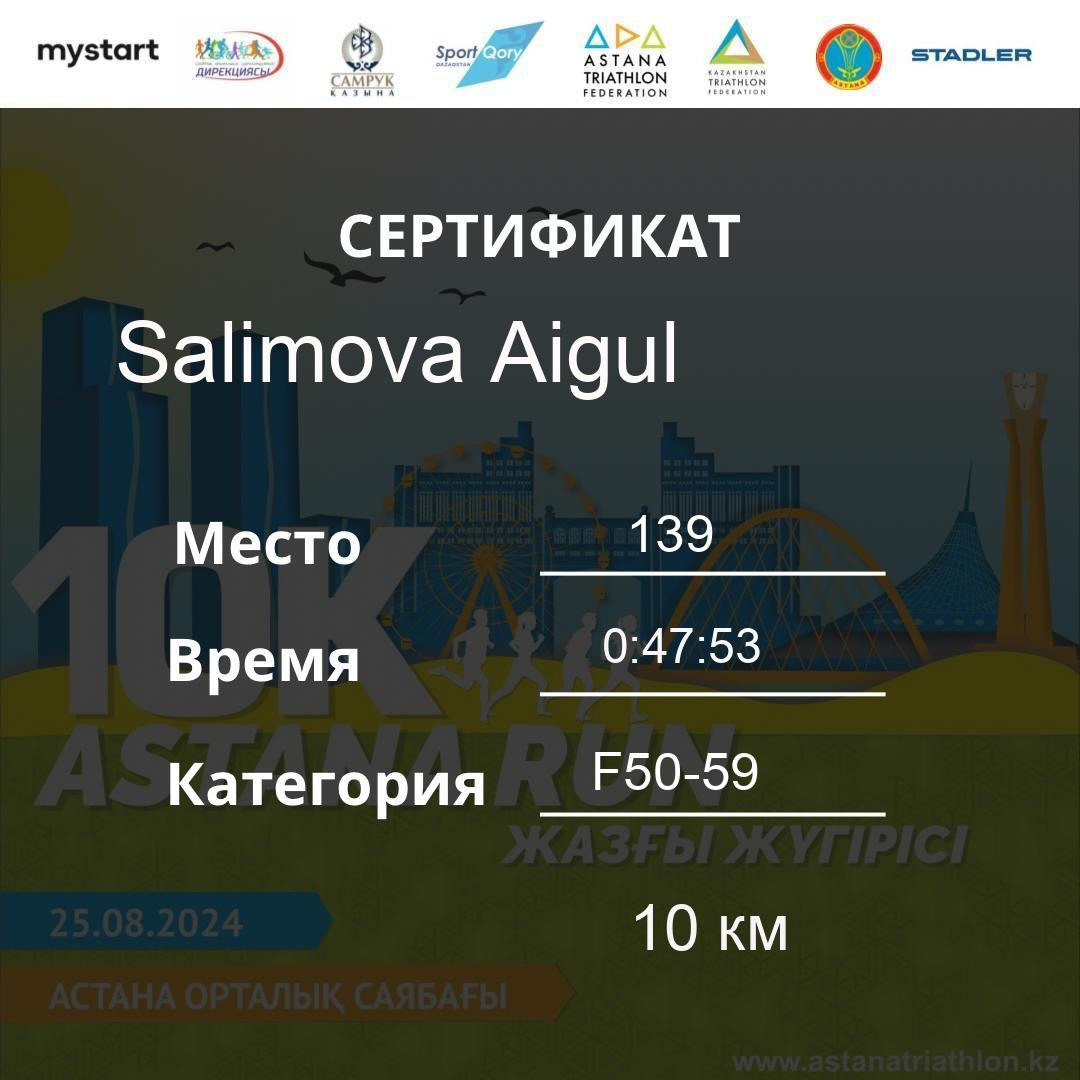 | DNS | Beisembina Aigul | 76 | F30-39 | 10 км | Download | ||
