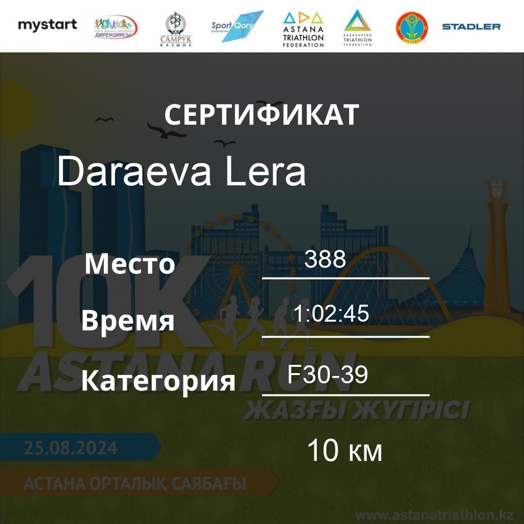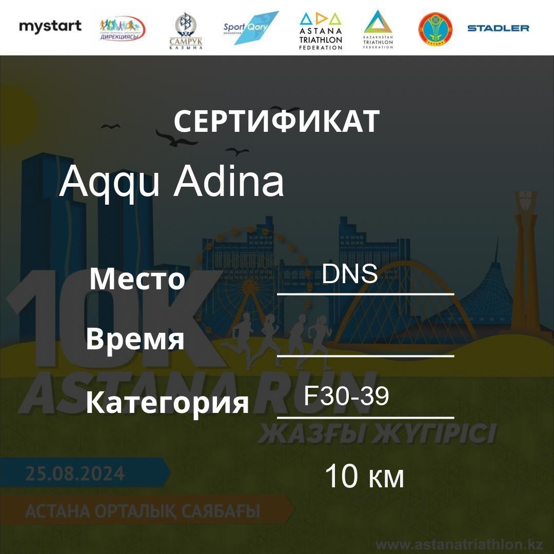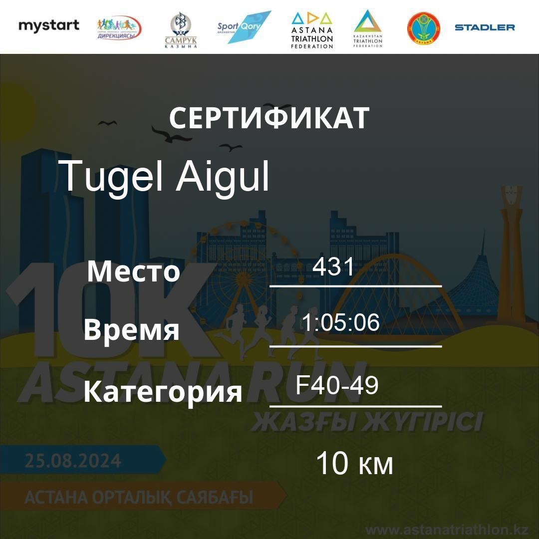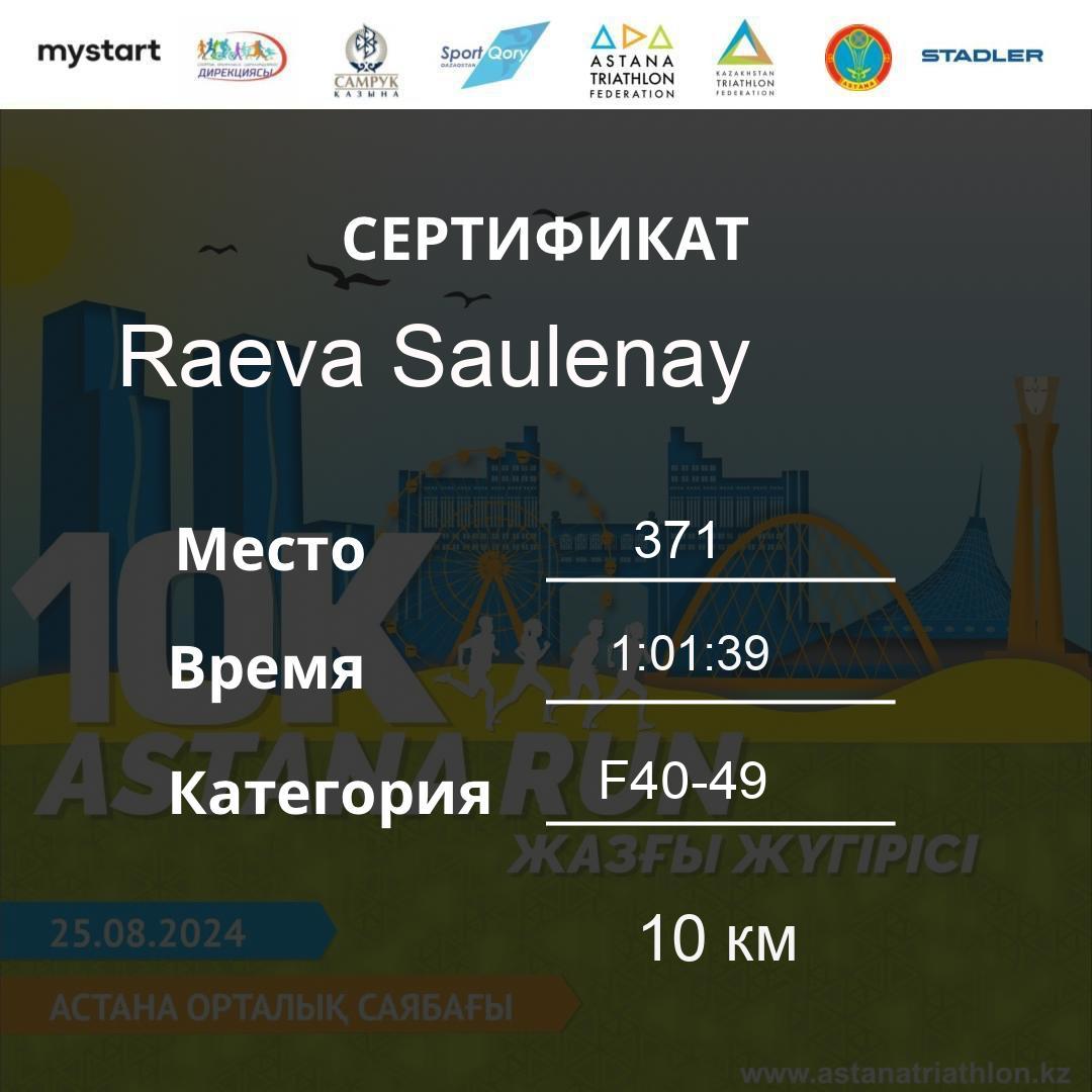 | DNS | Beisembina Aigul | 76 | F30-39 | 10 км | Download | ||