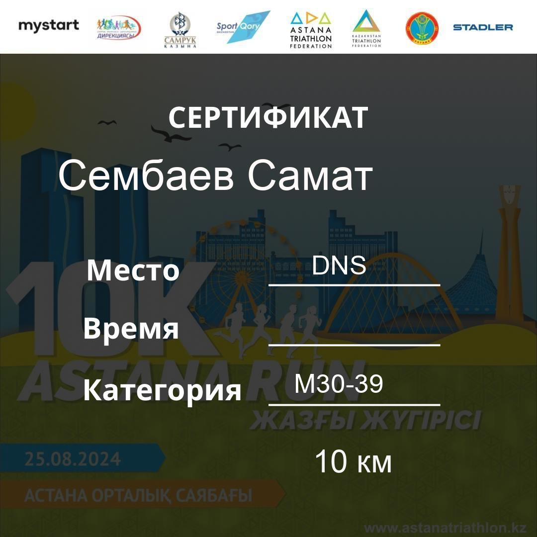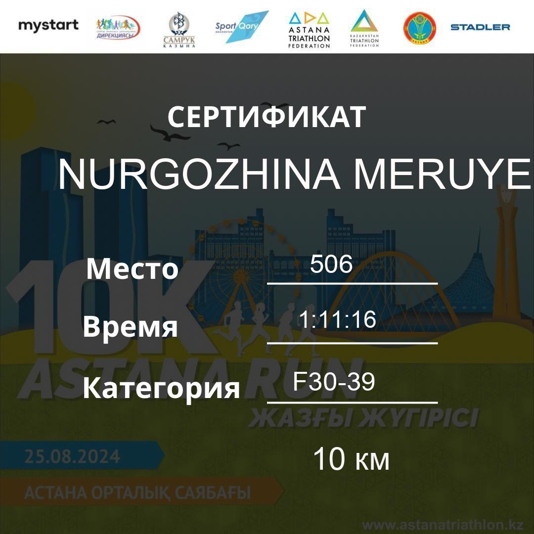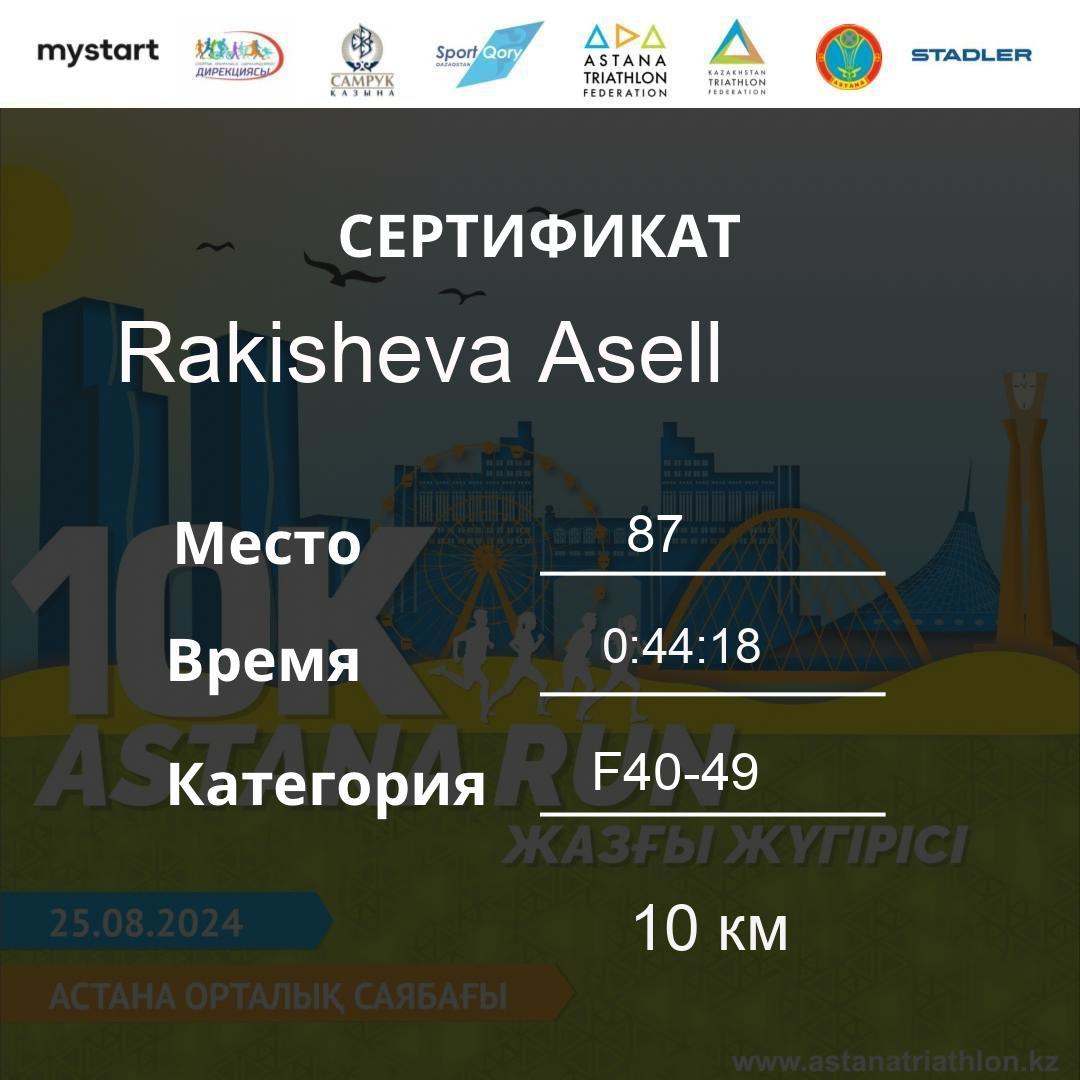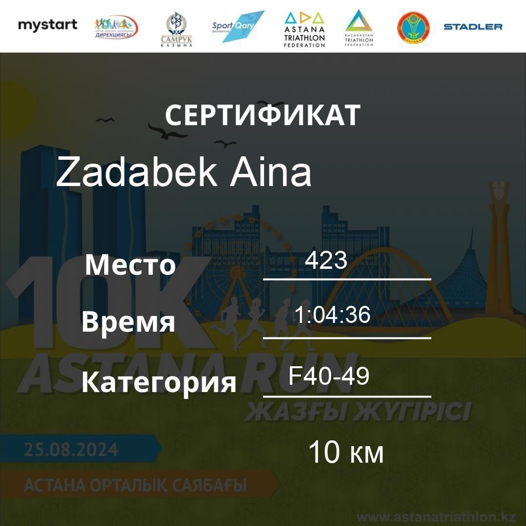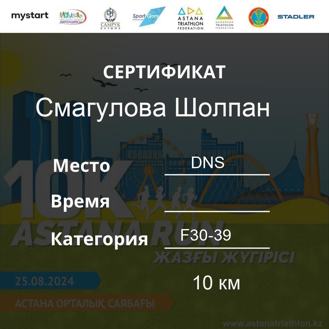 | DNS | Beisembina Aigul | 76 | F30-39 | 10 км | Download | ||