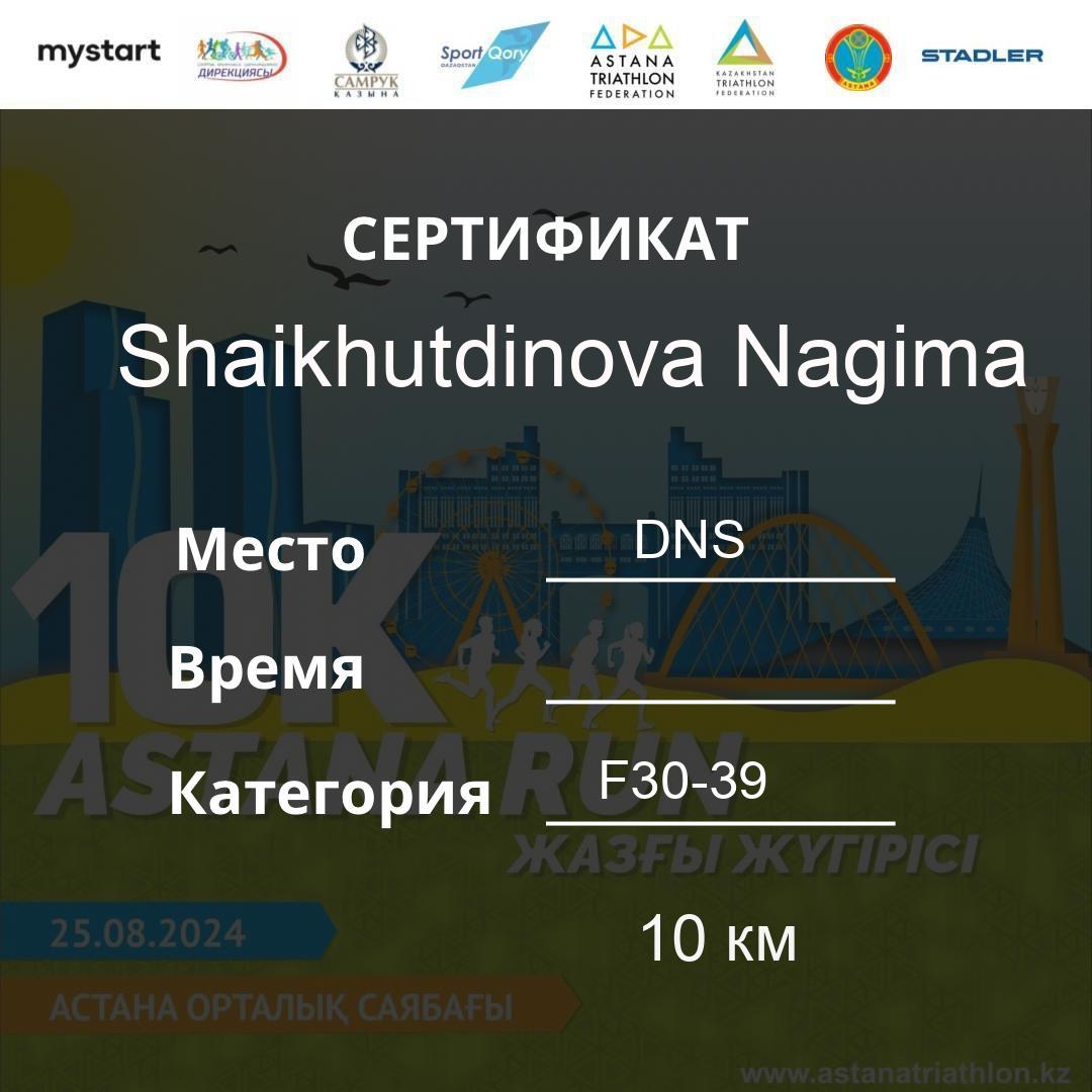 | DNS | Nayekova Saltanat | 273 | F30-39 | 10 км | Download | ||