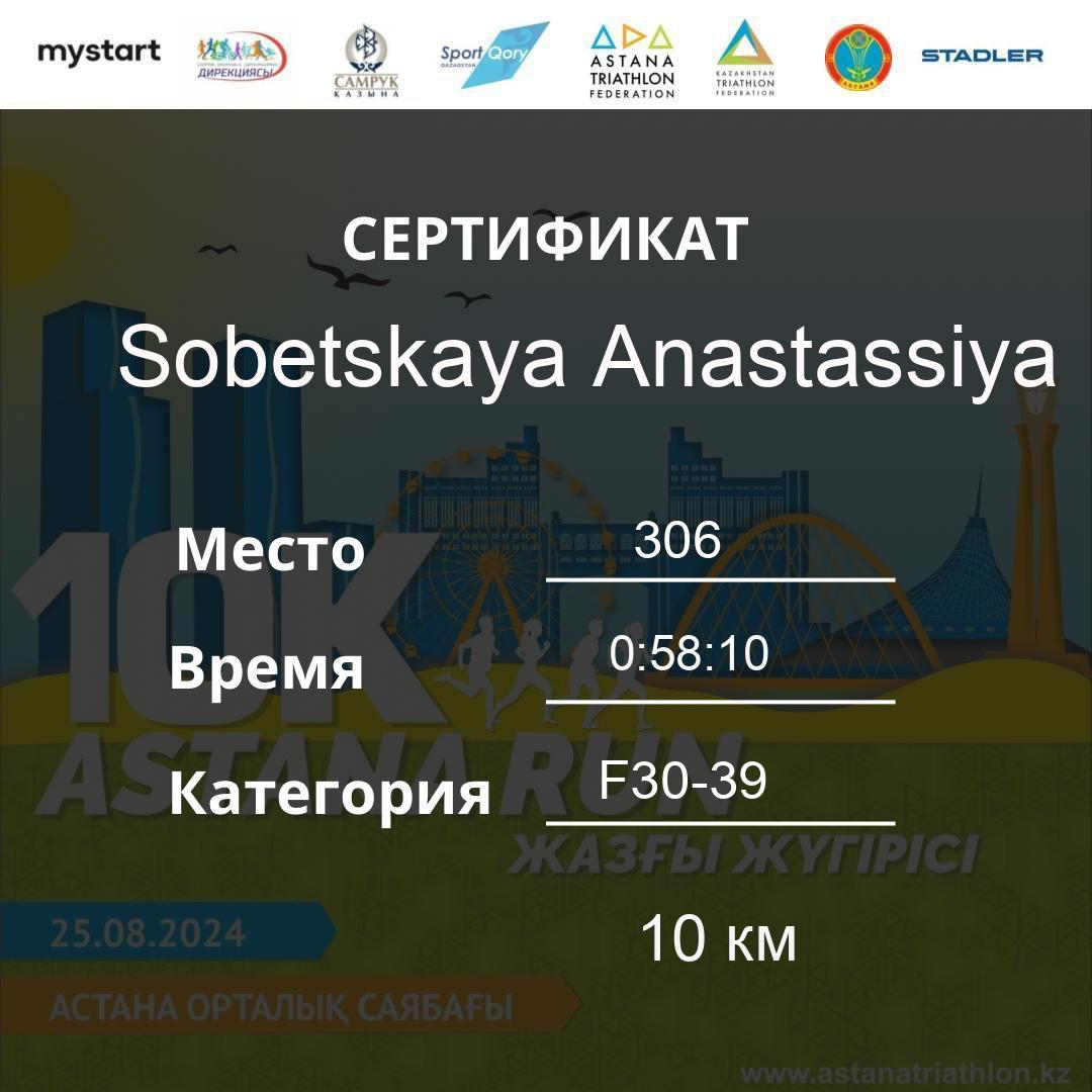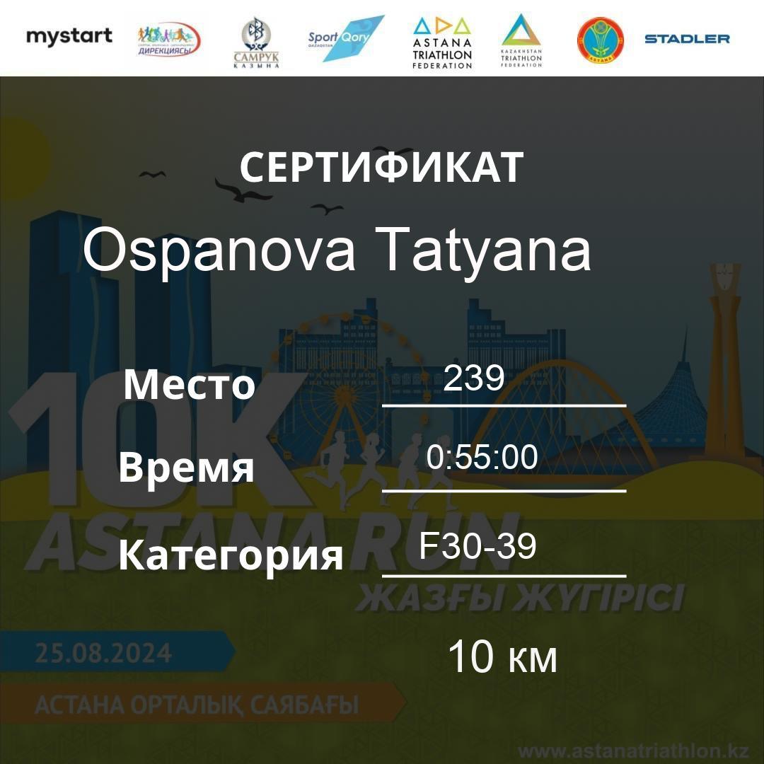 | DNS | Khussainova Inkar | 191 | F30-39 | 10 км | Download | ||