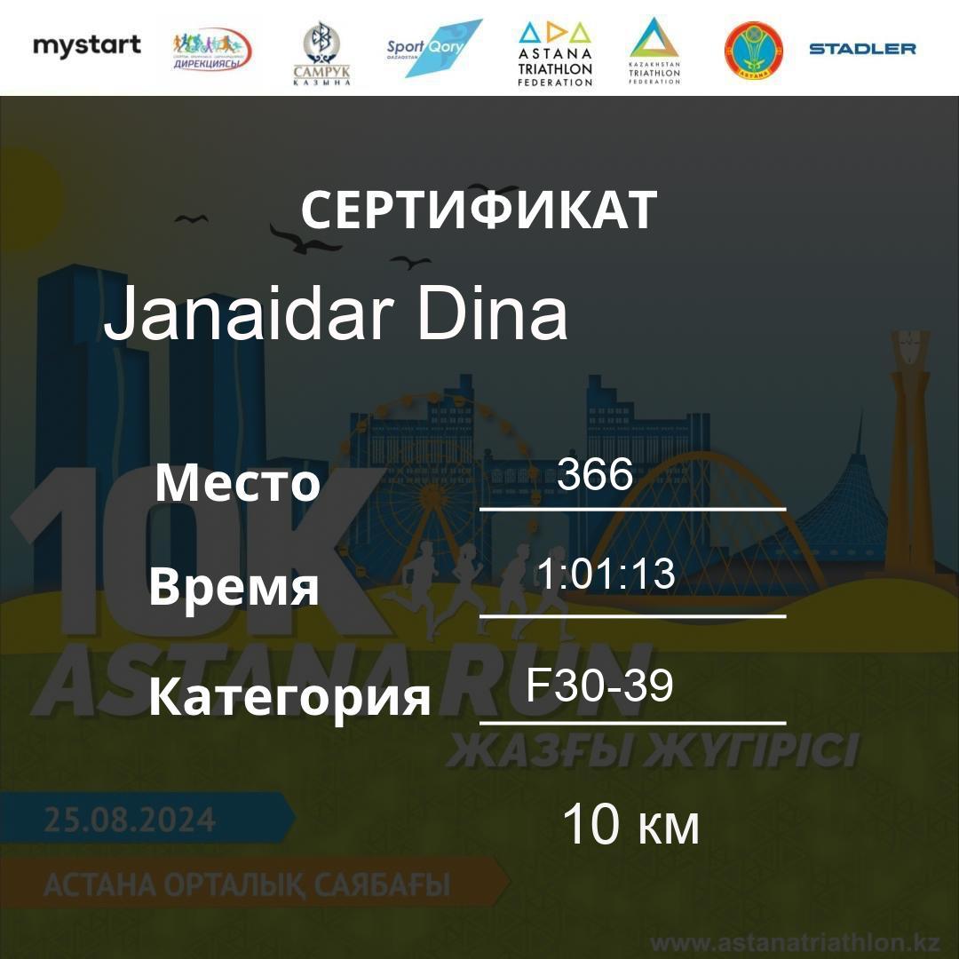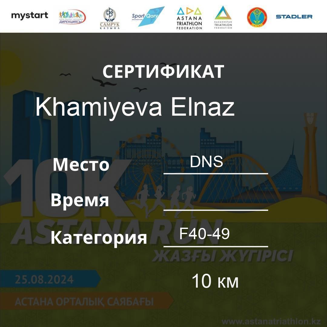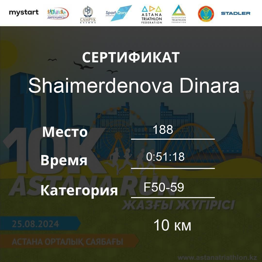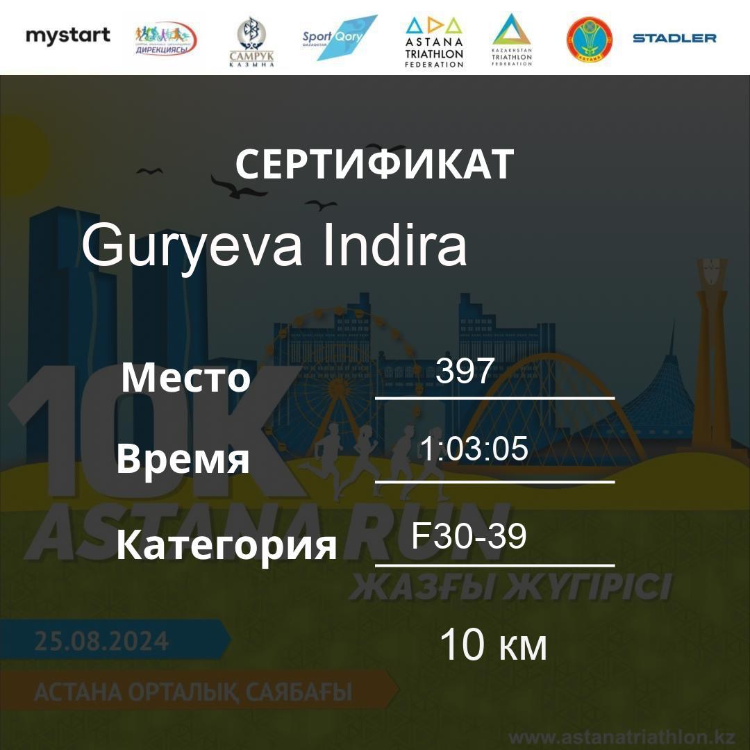 | DNS | Khamzina Zhanara | 188 | F30-39 | 10 км | Download | ||