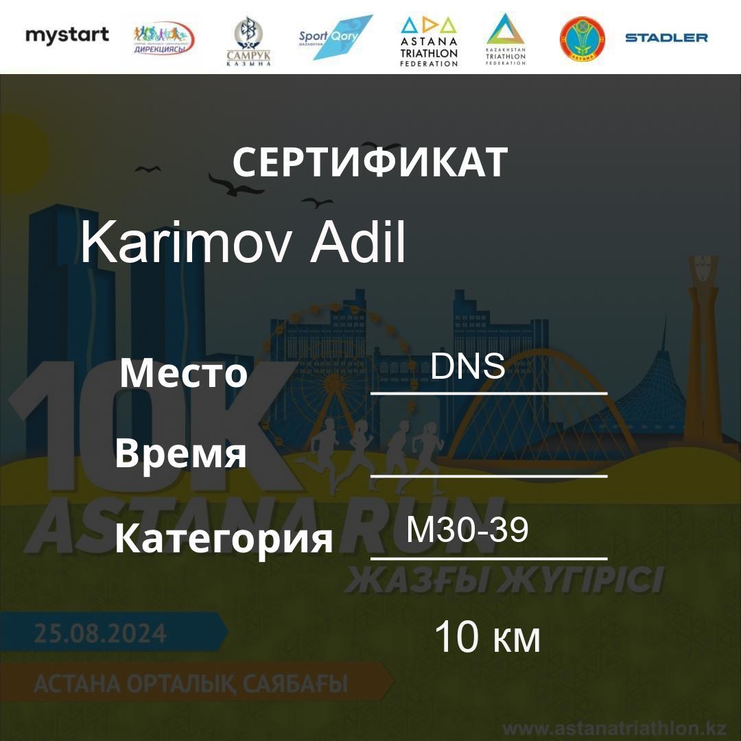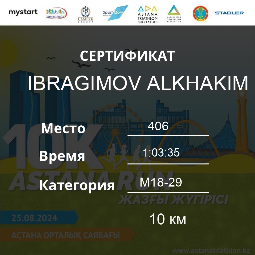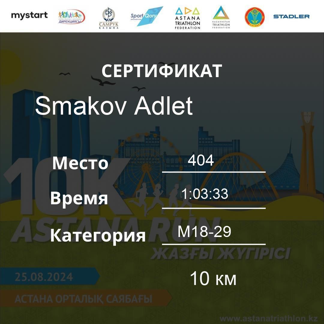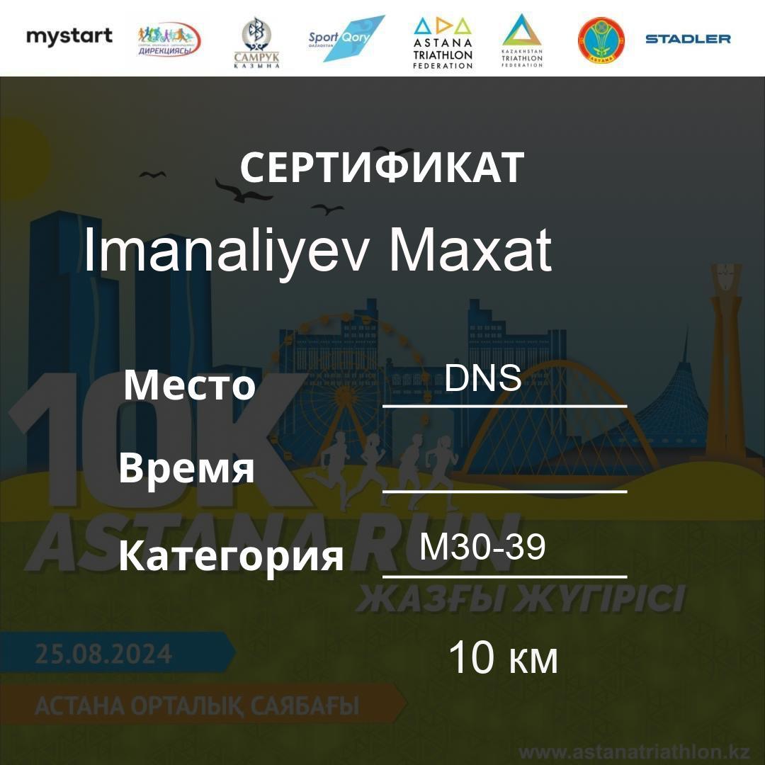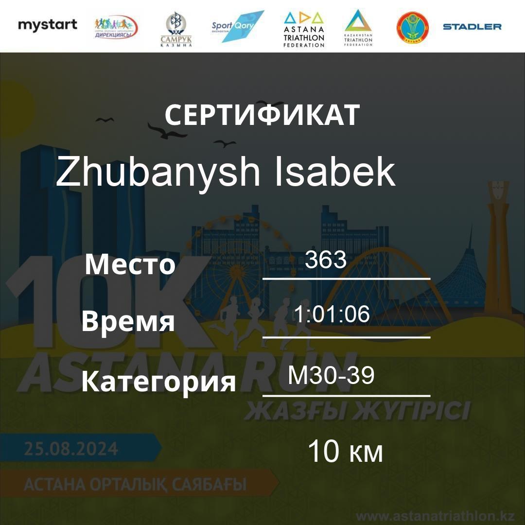 | DNS | Khamzina Zhanara | 188 | F30-39 | 10 км | Download | ||