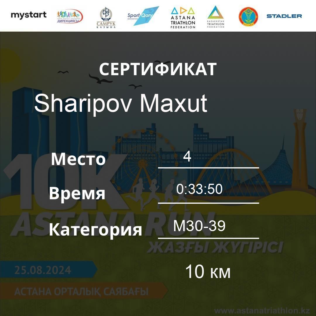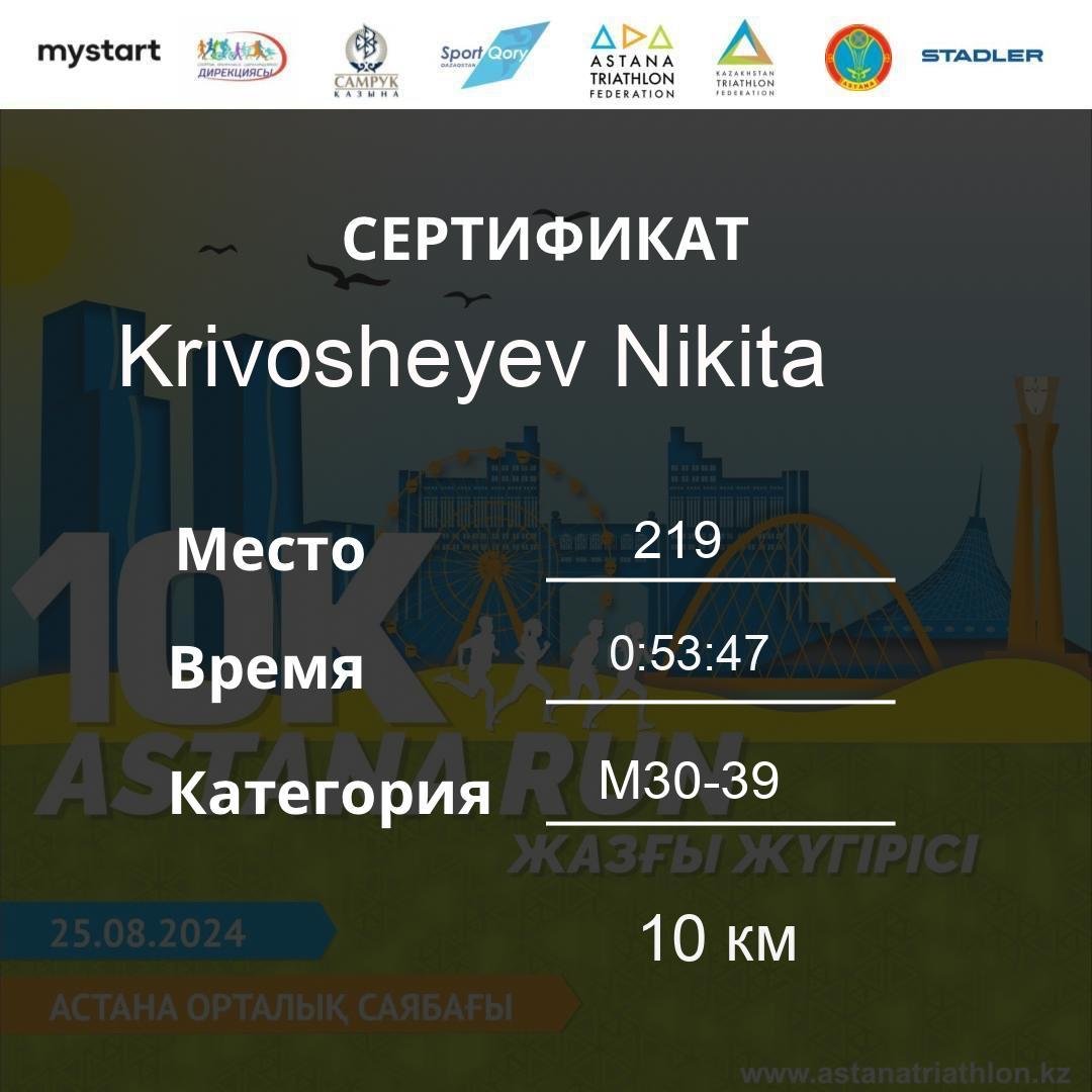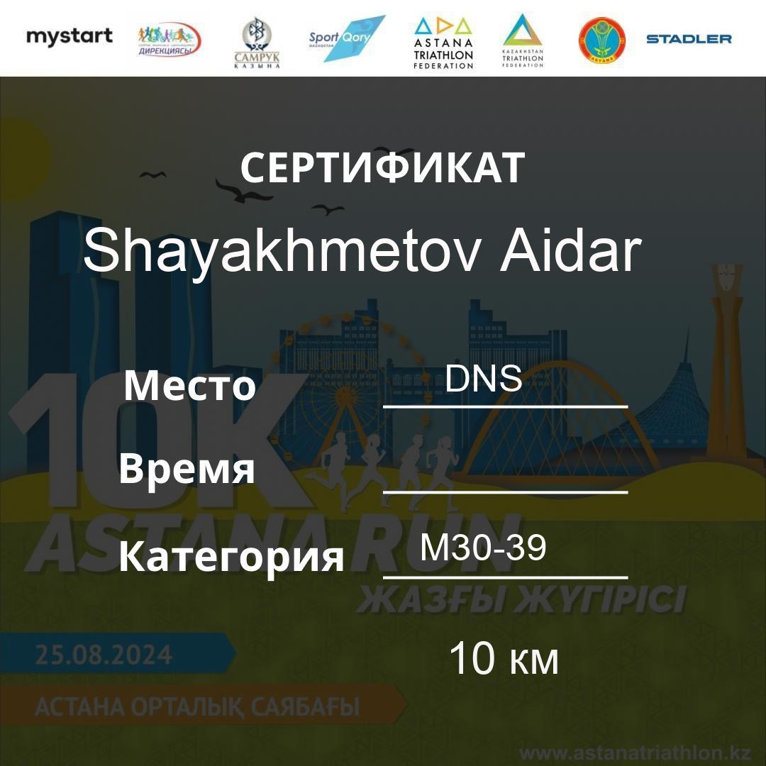 | DNS | Kaziztaeva Lazzat | 179 | F30-39 | 10 км | Download | ||