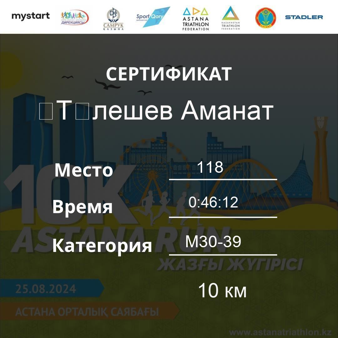 | 112 | Телғозы Әділхан | 656 | M40-49 | 10 км | 0:45:49 | 33 | Download |
