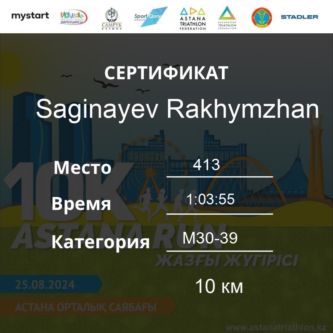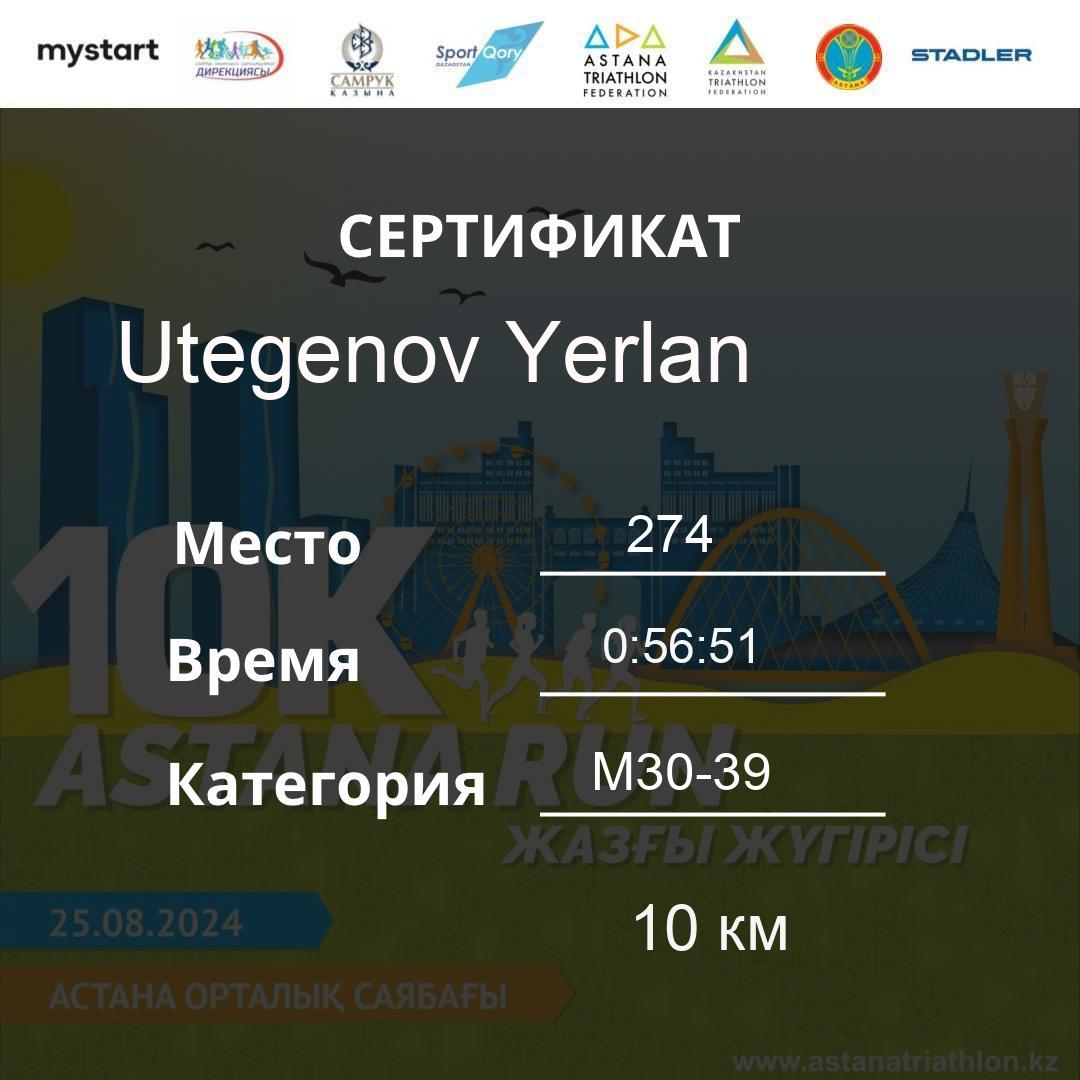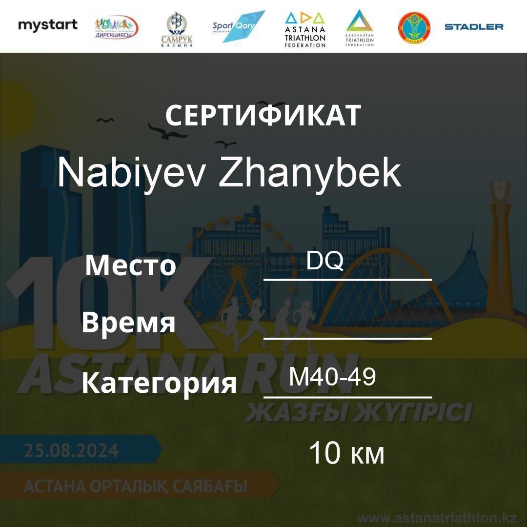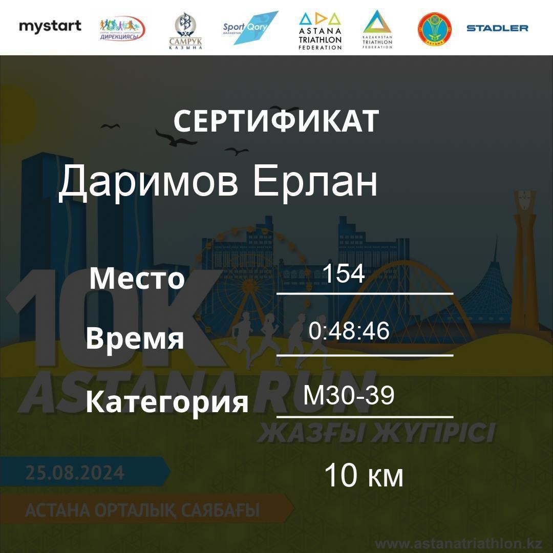 | 155 | KANAFIN YERZHAN | 171 | M40-49 | 10 км | 0:48:48 | 37 | Download |