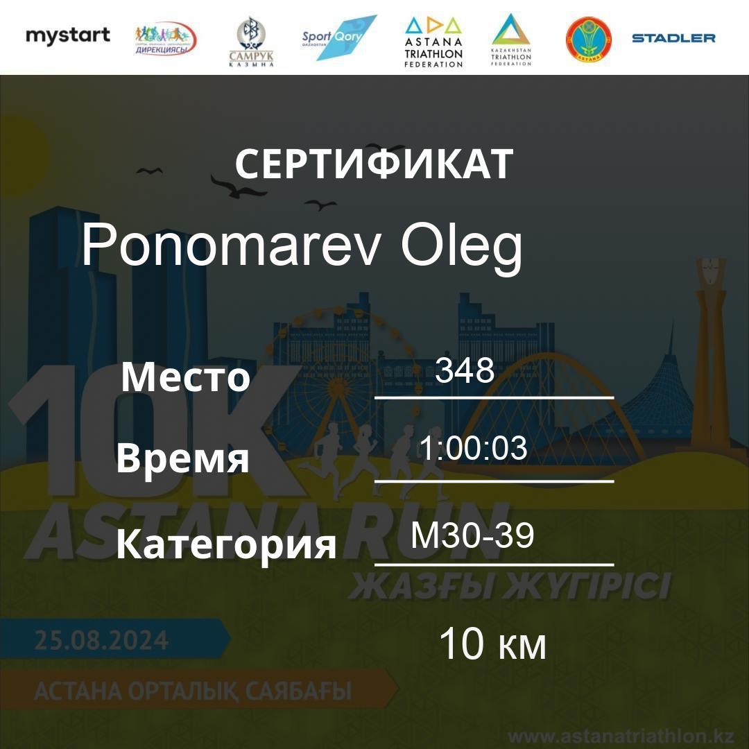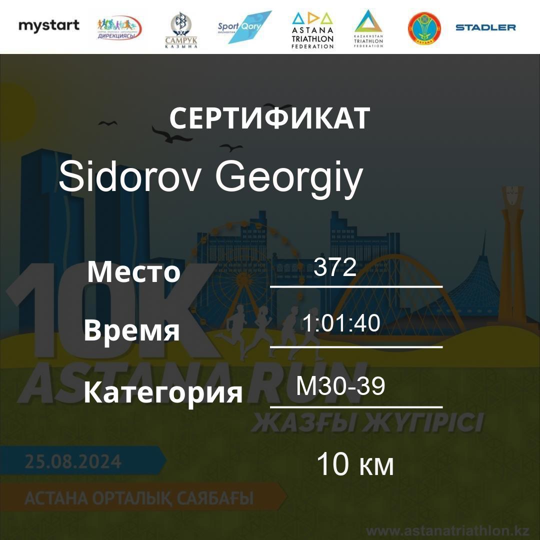 | 384 | Bapanov Azamat | 69 | M40-49 | 10 км | 1:02:23 | 78 | Download |