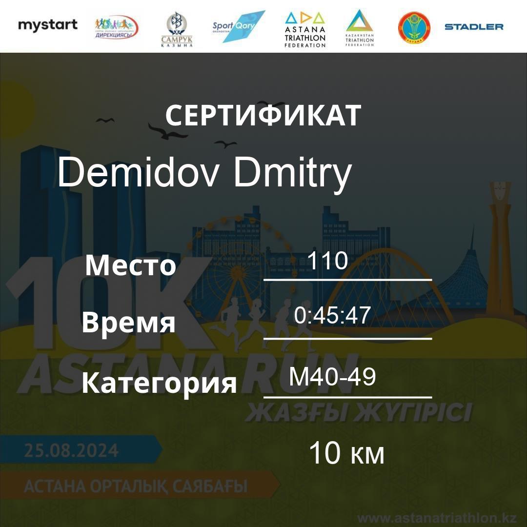 | 110 | Demidov Dmitry | 540 | M40-49 | 10 км | 0:45:47 | 32 | Download |
