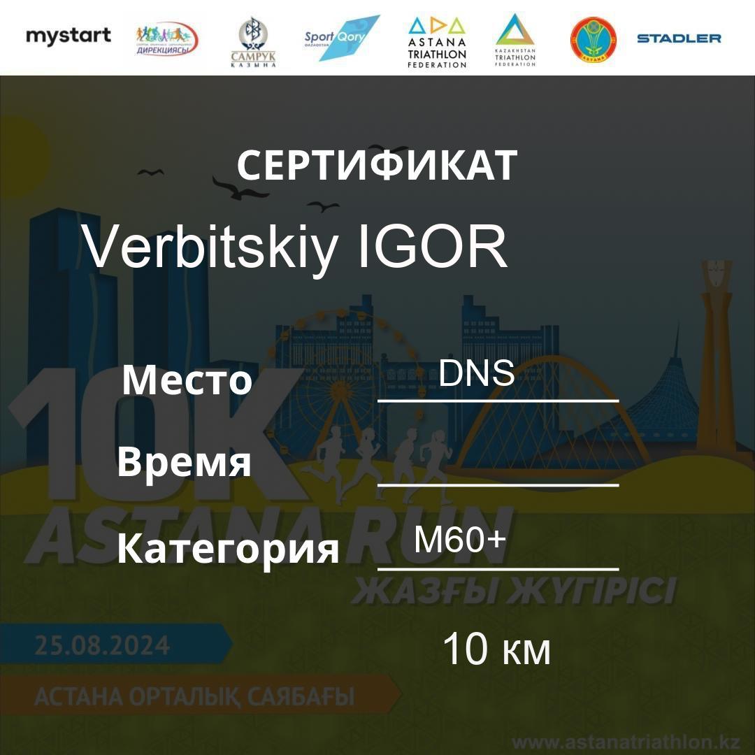 | DNS | Verbitskiy IGOR | 629 | M60+ | 10 км | Download | ||