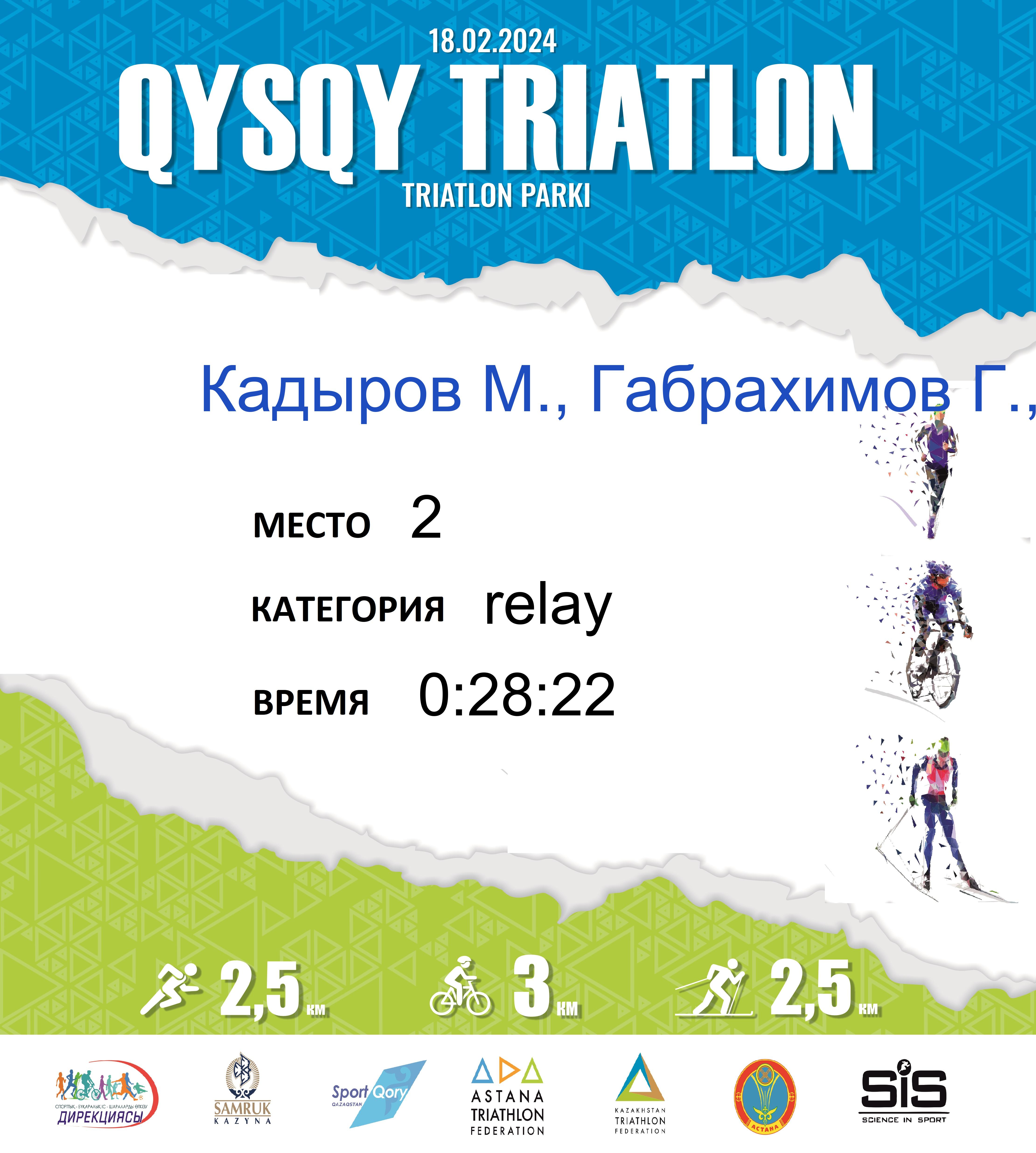 | 1 | Сейтбеков Б., Нурканов А. | 208 | relay | 7 | 0:27:47 | Download | |