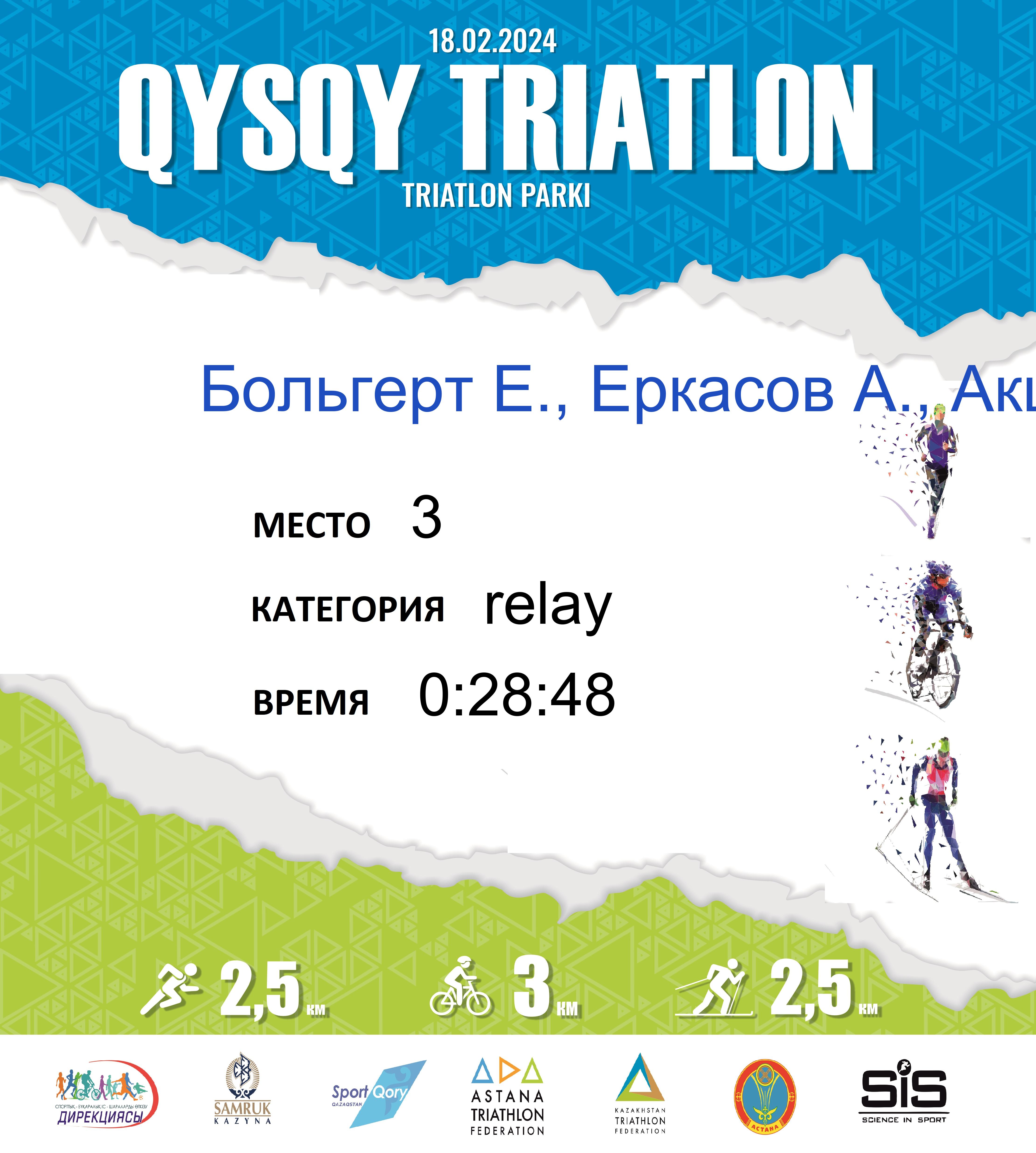 | 3 | Больгерт Е., Еркасов А., Акшалов М. | 206 | relay | 10 | 0:28:48 | Download | |