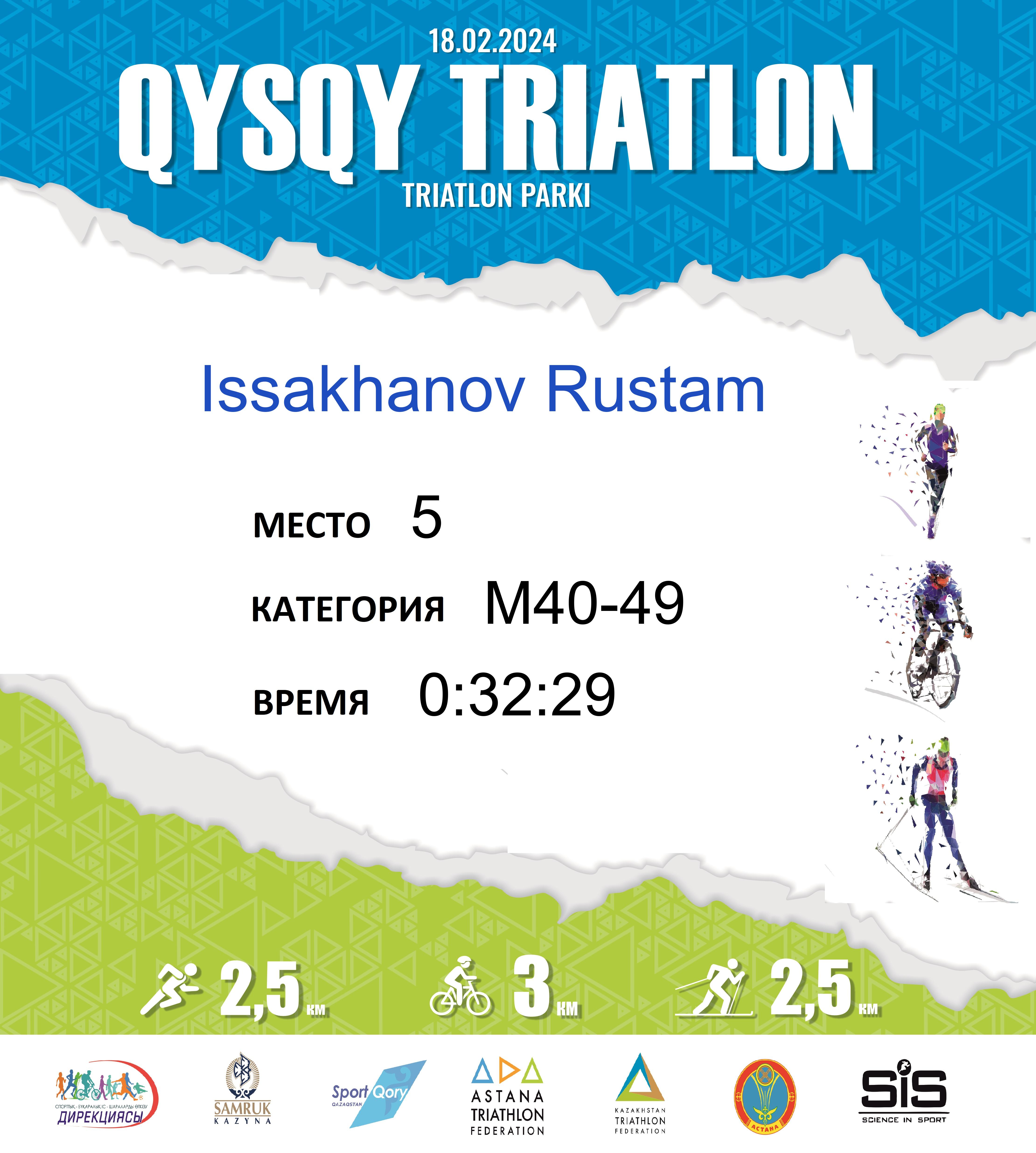 | 5 | Issakhanov Rustam | 126 | M40-49 | 21 | 0:32:29 | Download | |