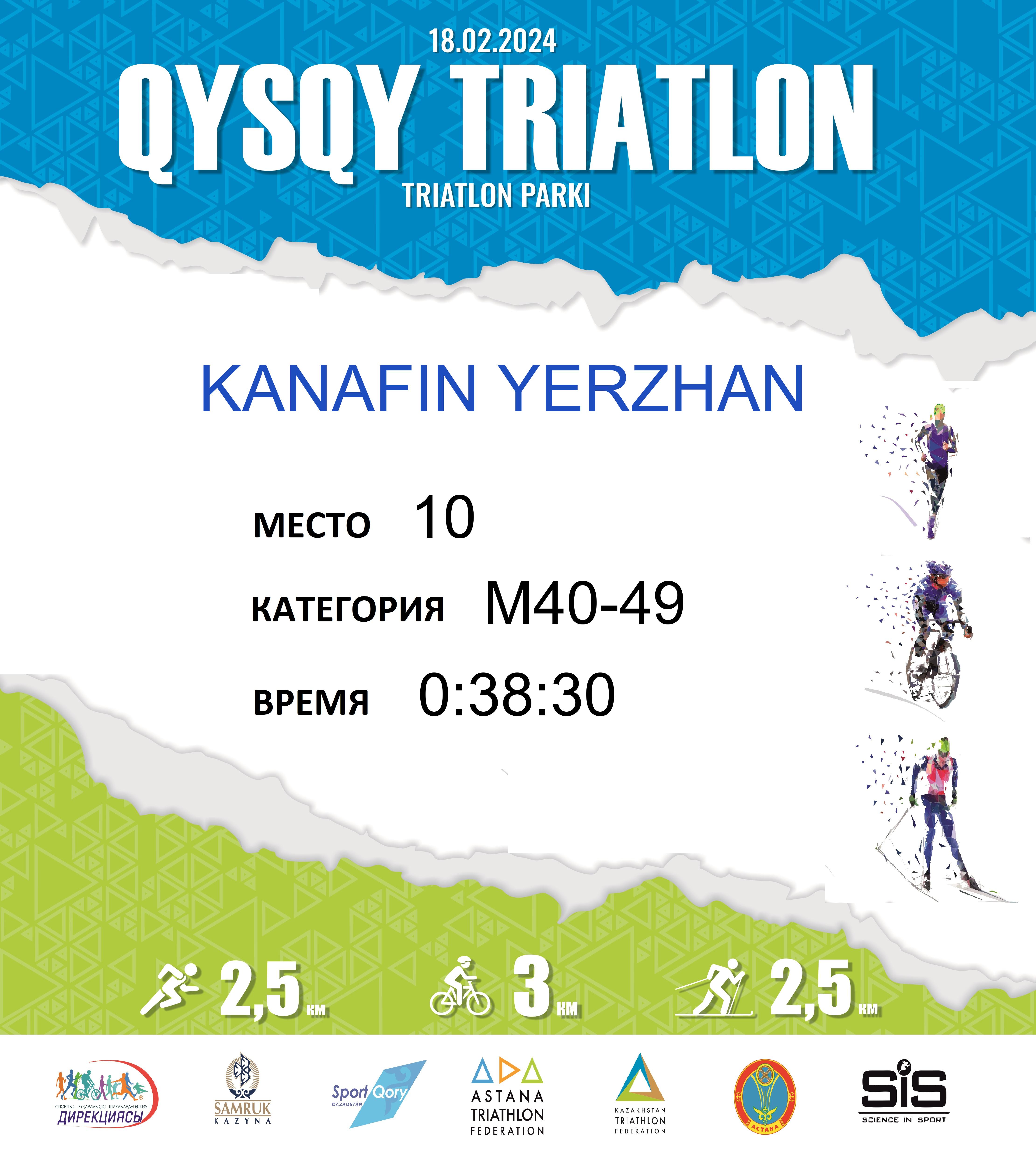 | 10 | KANAFIN YERZHAN | 136 | M40-49 | 42 | 0:38:30 | Download | |