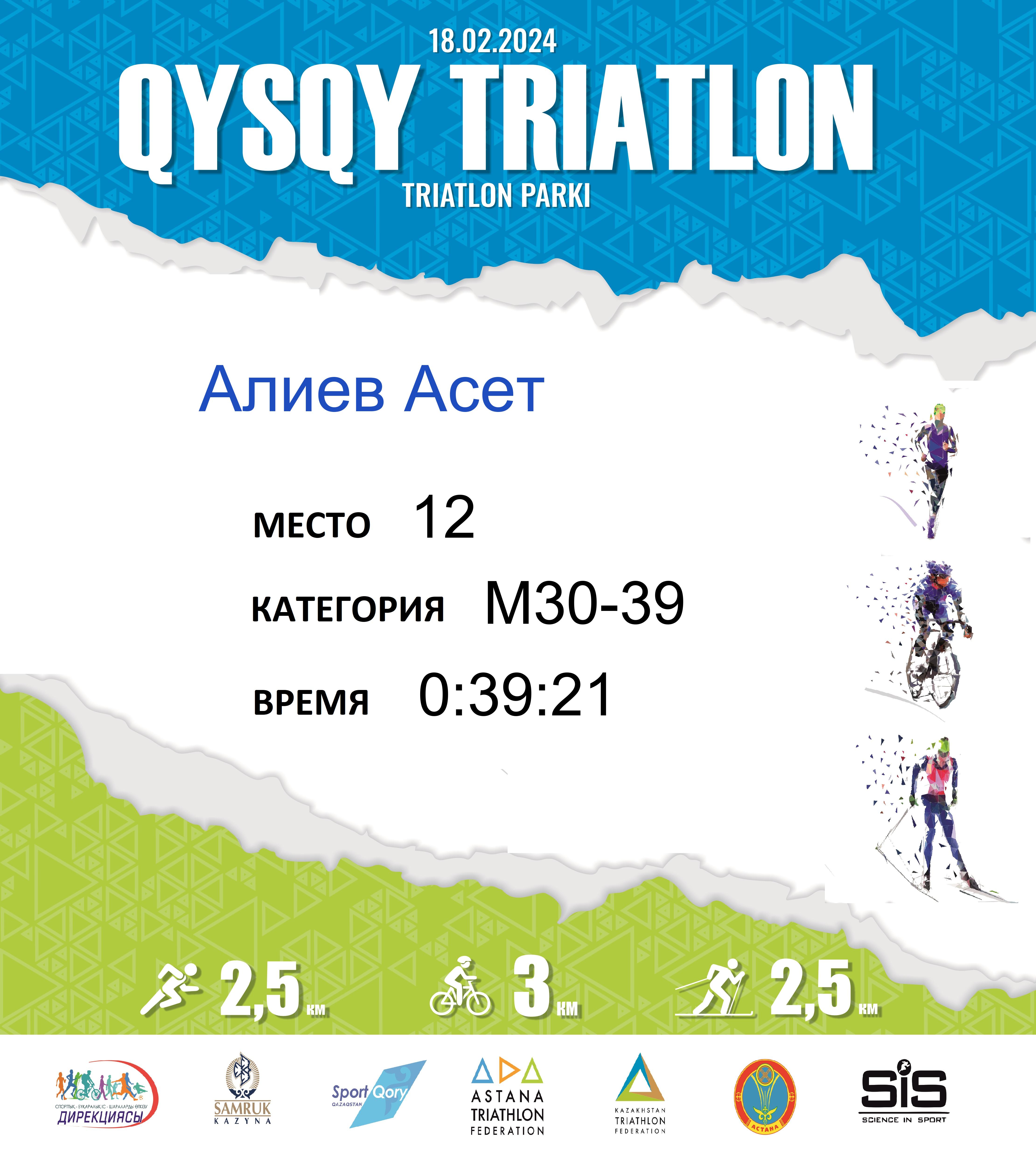 | 12 | Алиев Асет | 213 | M30-39 | 46 | 0:39:21 | Download | |