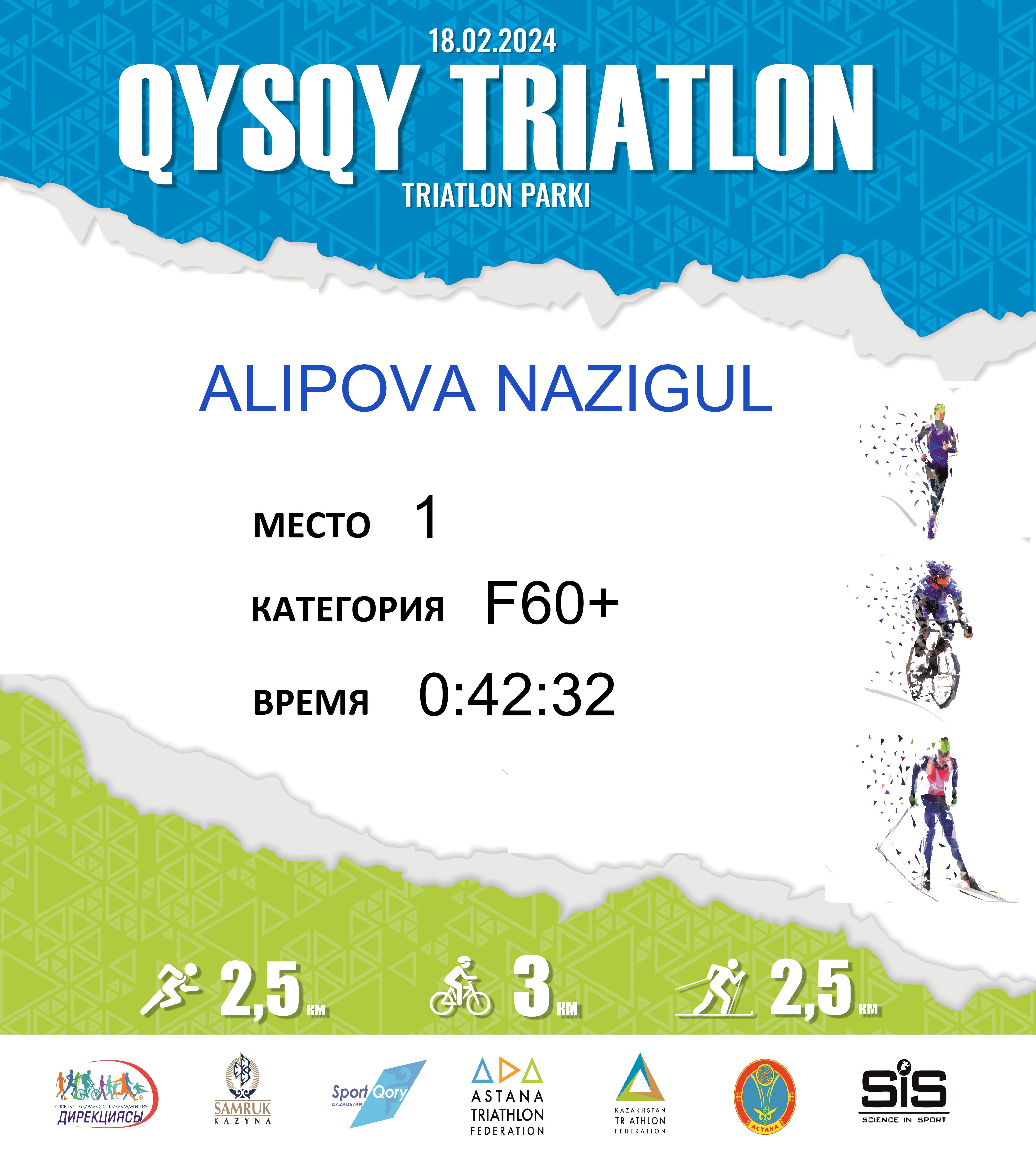 | 1 | ALIPOVA NAZIGUL | 7 | F60+ | 51 | 0:42:32 | Download | |