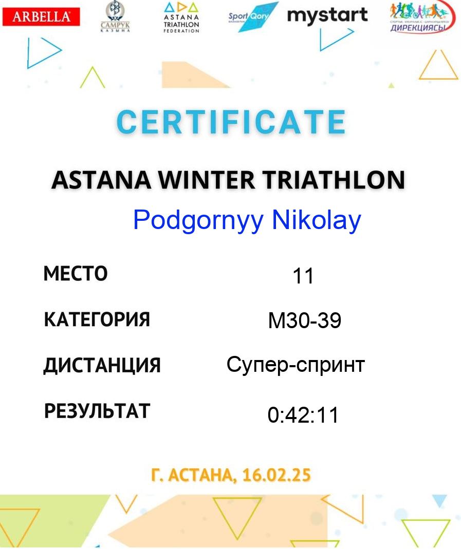 | 11 | Podgornyy Nikolay | 175 | M30-39 | Супер-спринт | 51 | 0:14:58 | 0:01:25 | 0:09:34 | 0:02:52 | 0:13:24 | 0:42:11 | Жүктеу |
