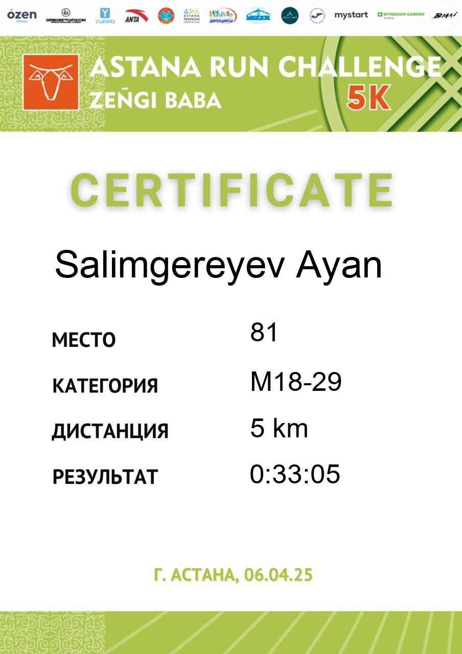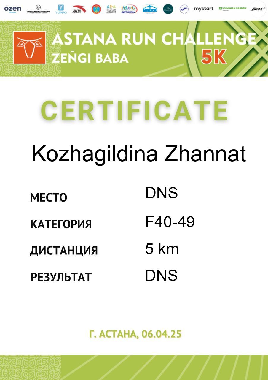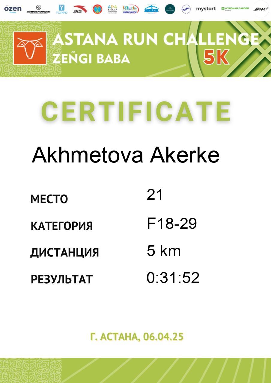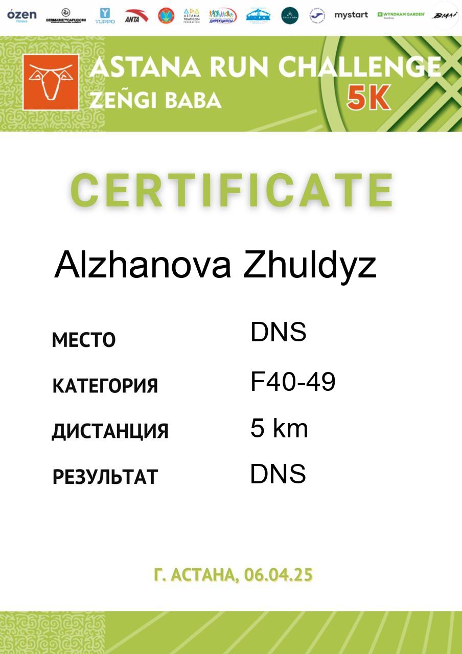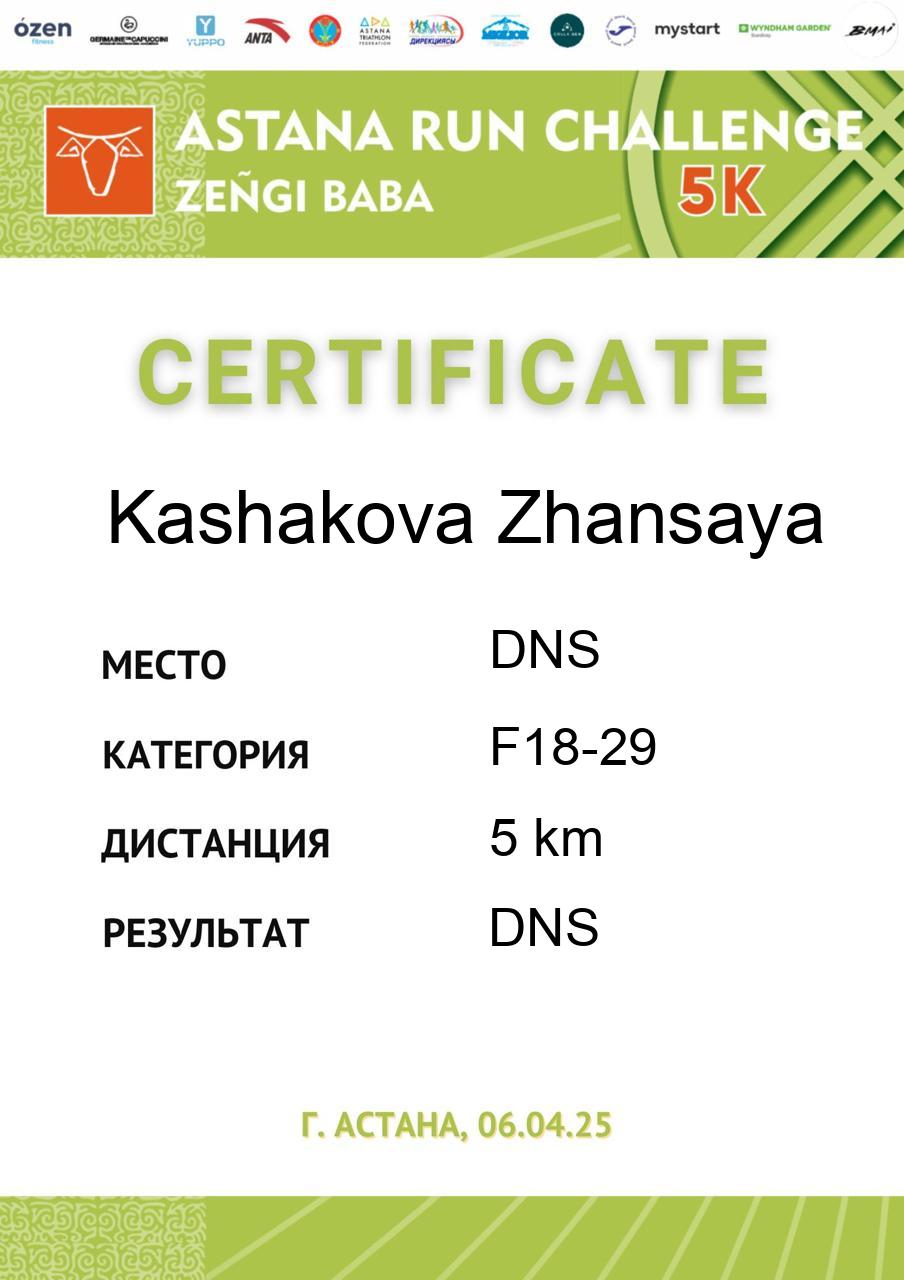 | DNS | Kashakova Zhansaya | 342 | F18-29 | 5 km | DNS | DNS | Жүктеу |