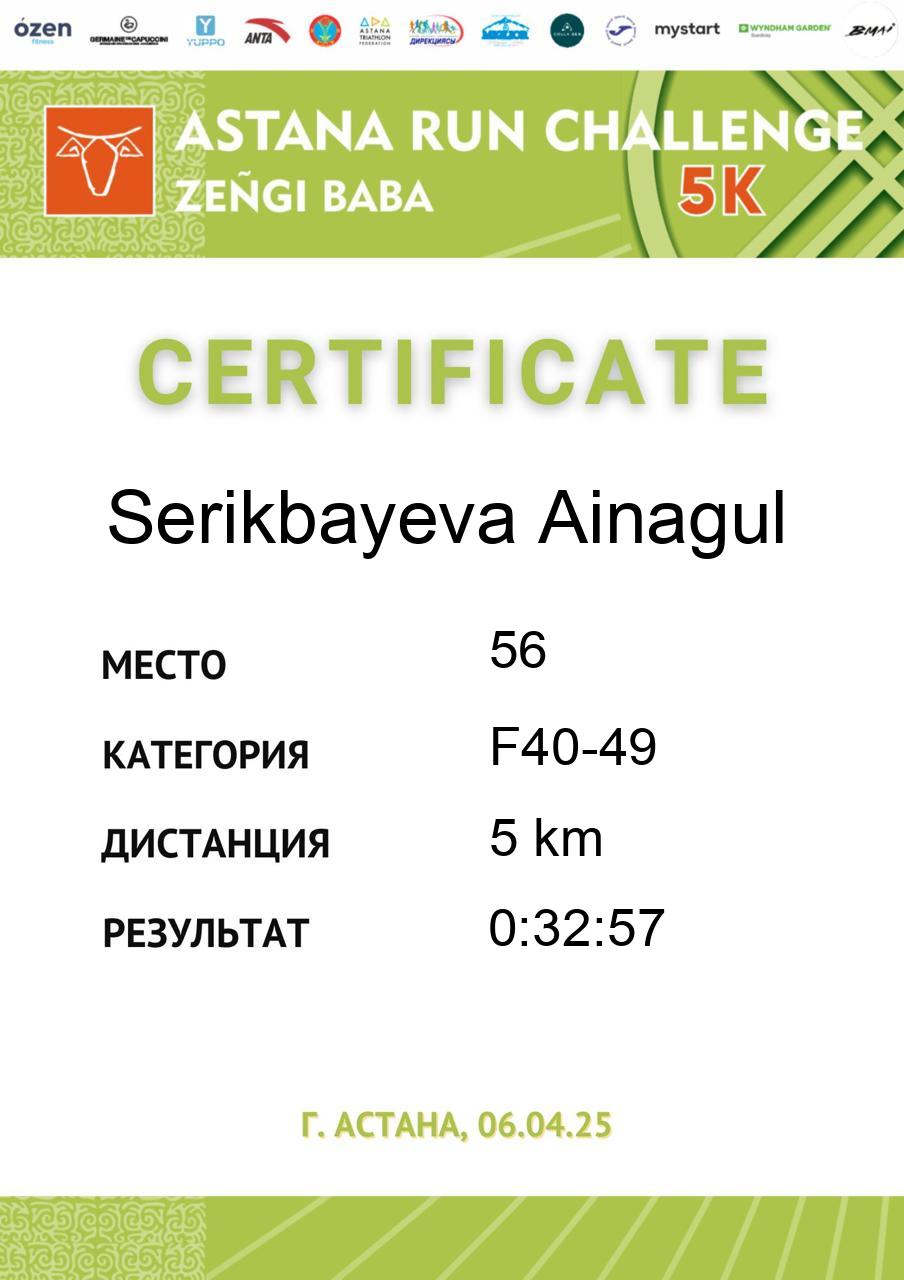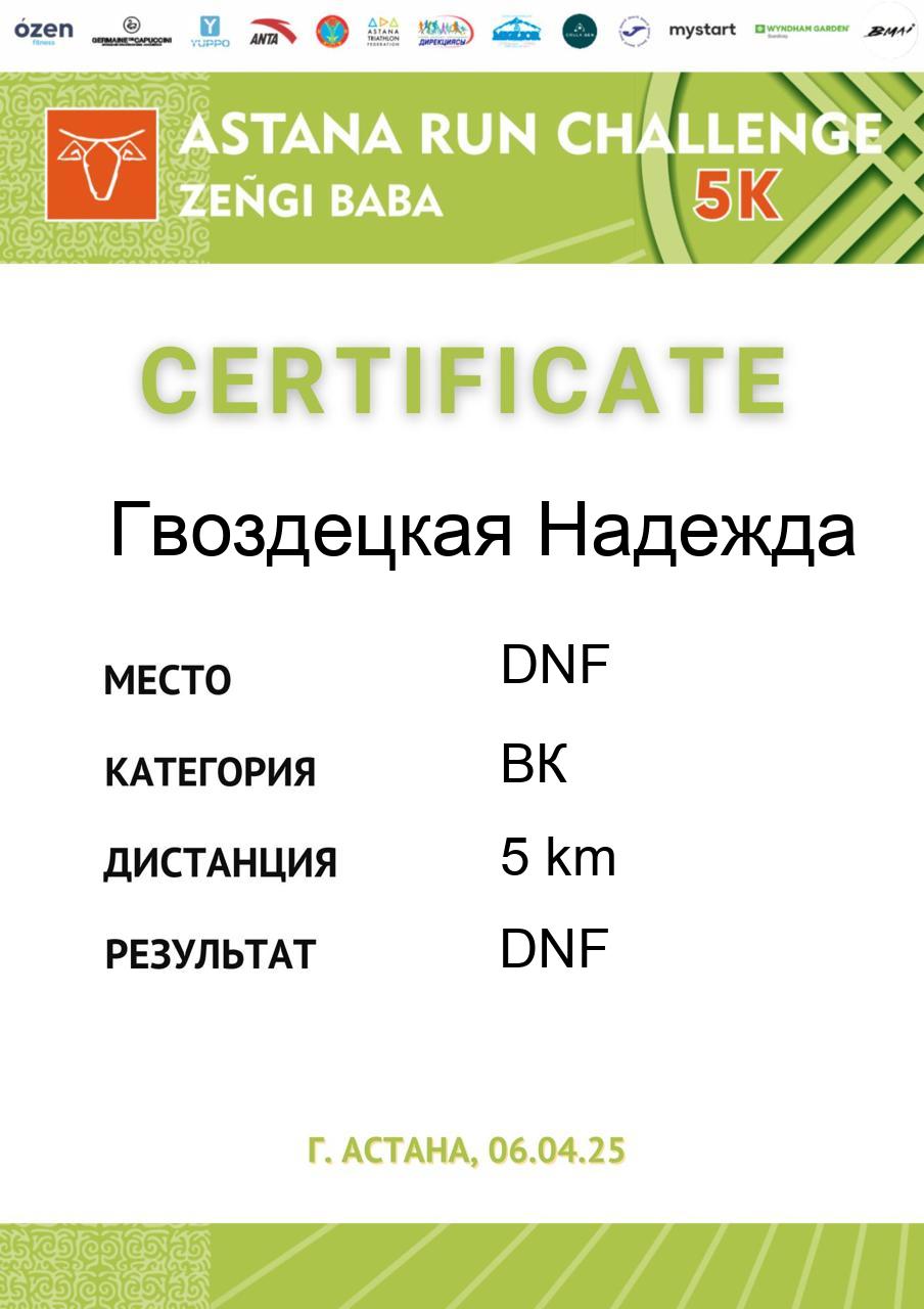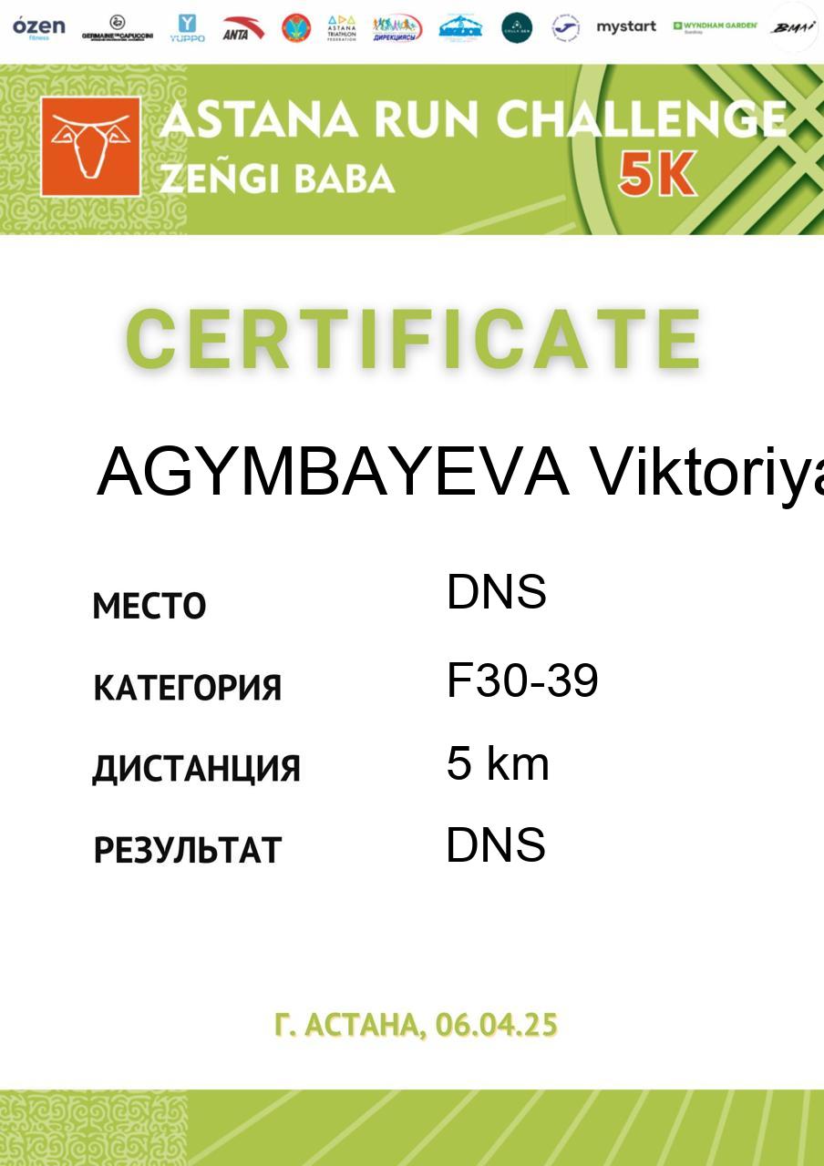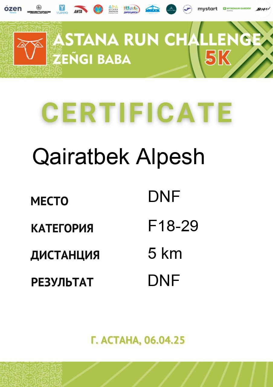 | DNS | Касымбекова Арайлым | 28 | F18-29 | 5 km | DNS | DNS | Жүктеу |