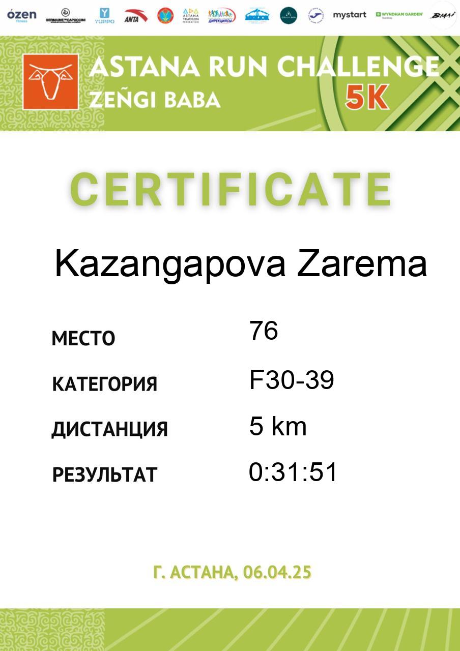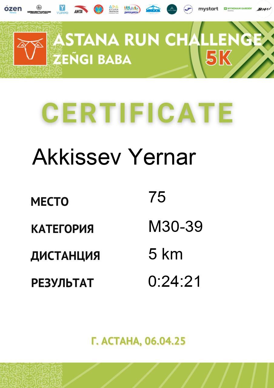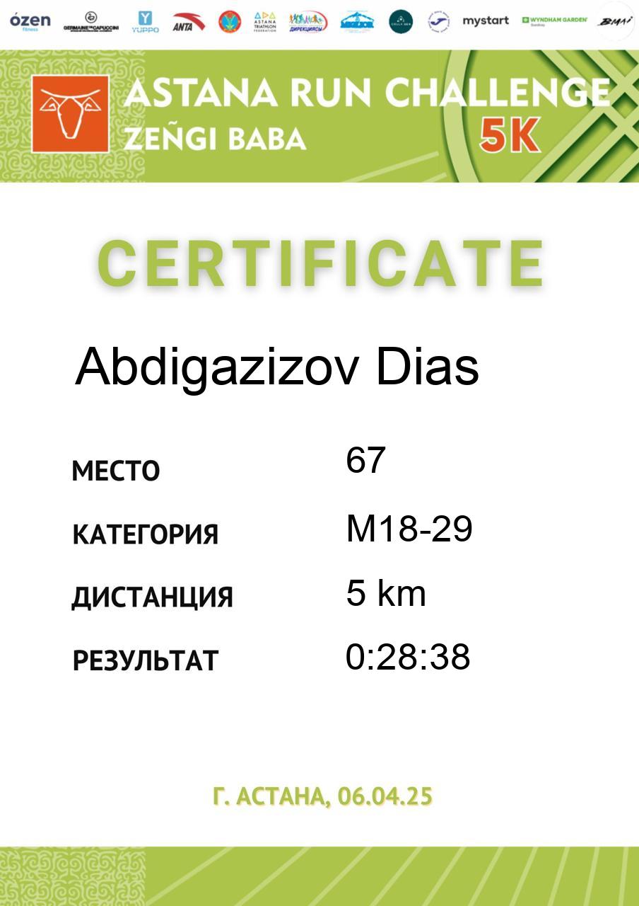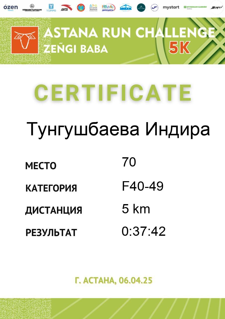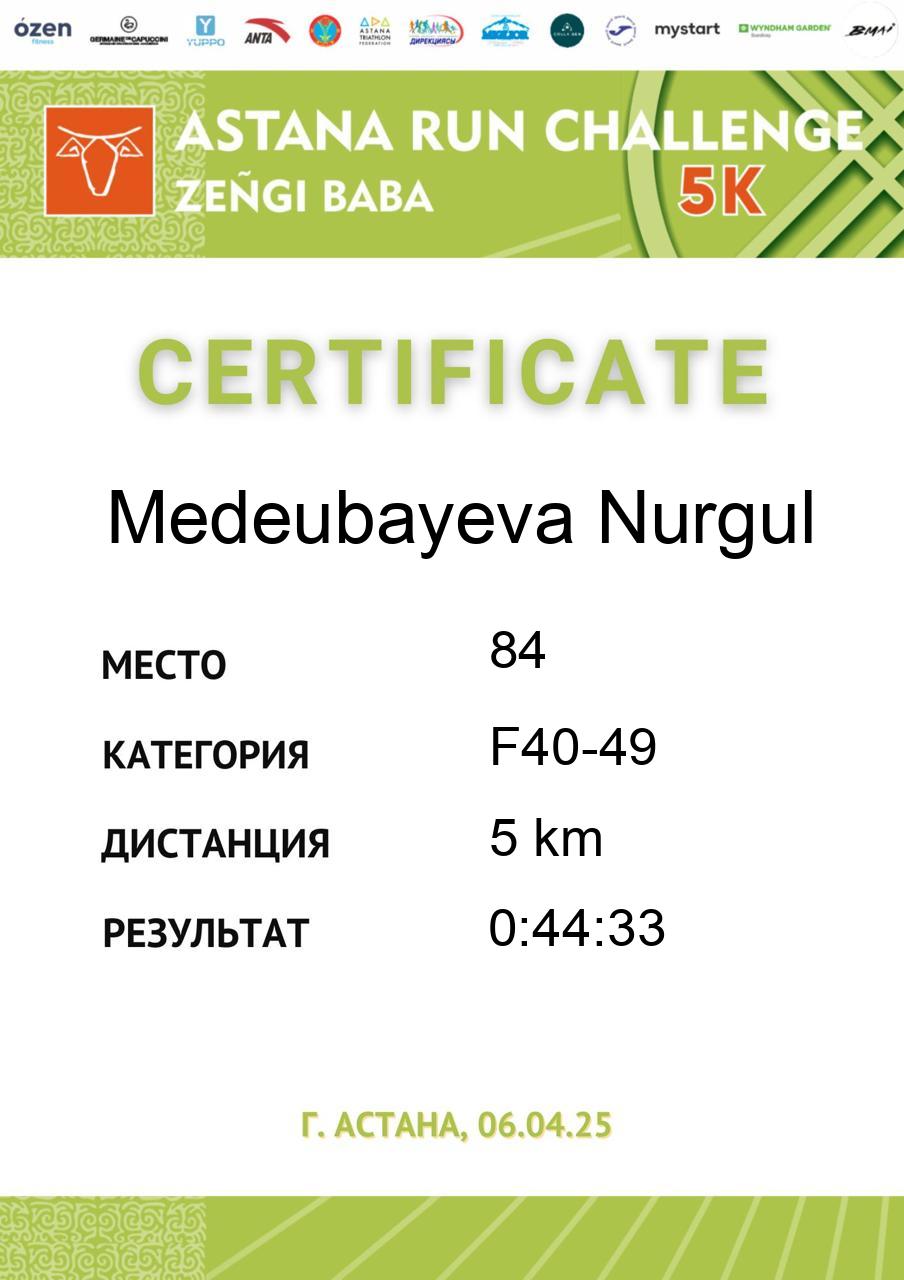 | 5 | Gali Dinmukhammed | 255 | M50-59 | 5 km | 0:21:37 | 91 | Жүктеу |