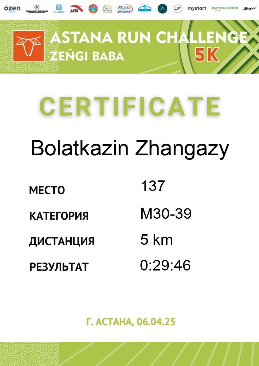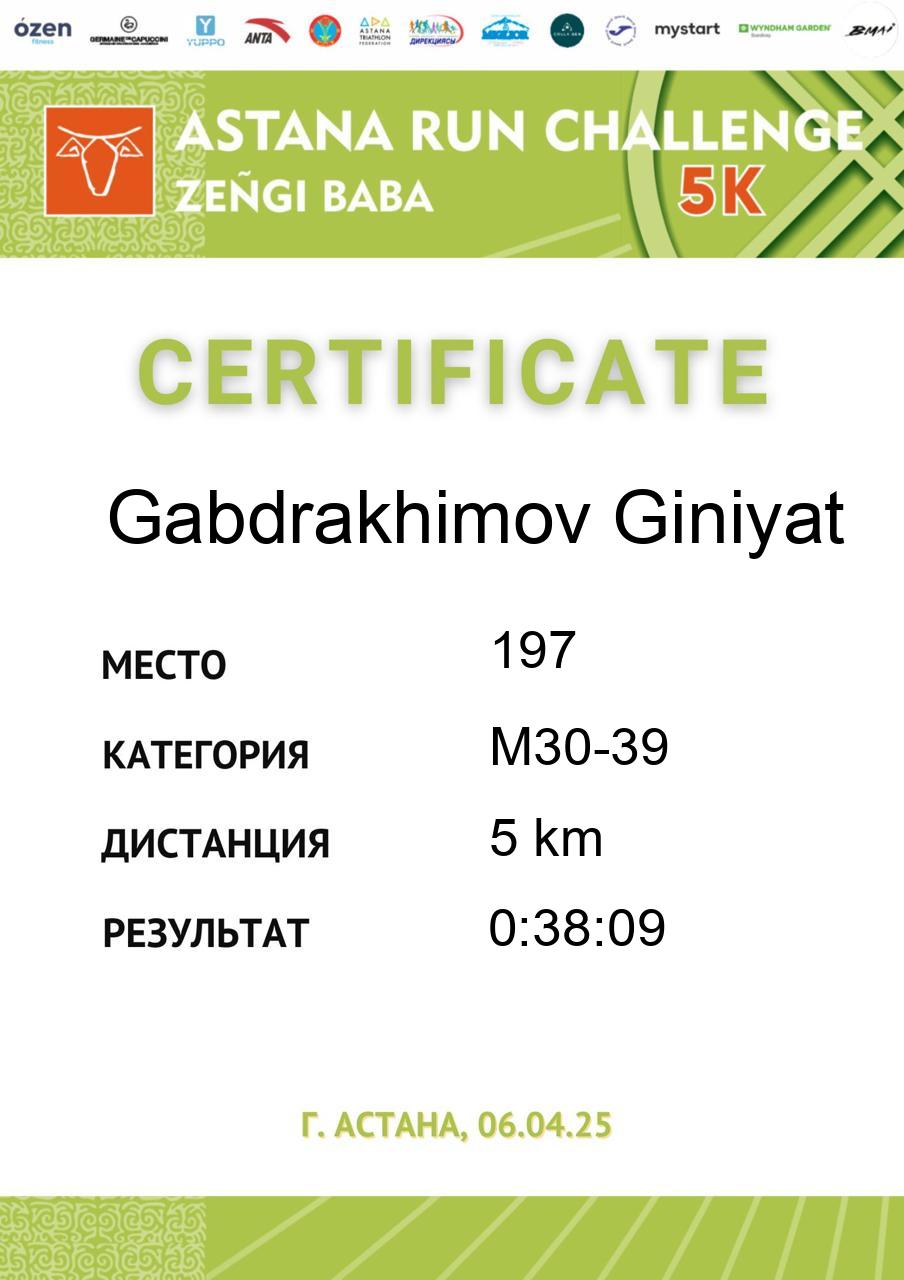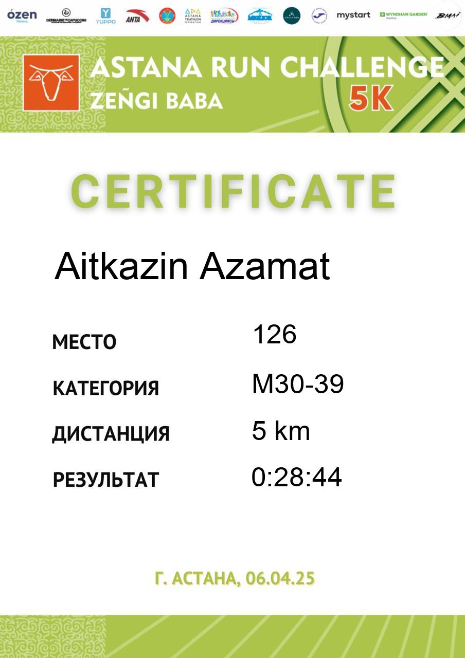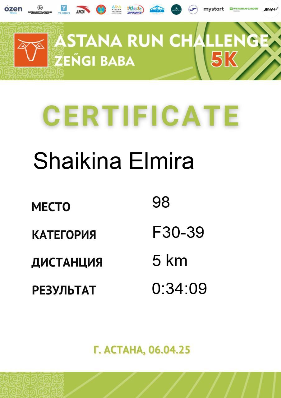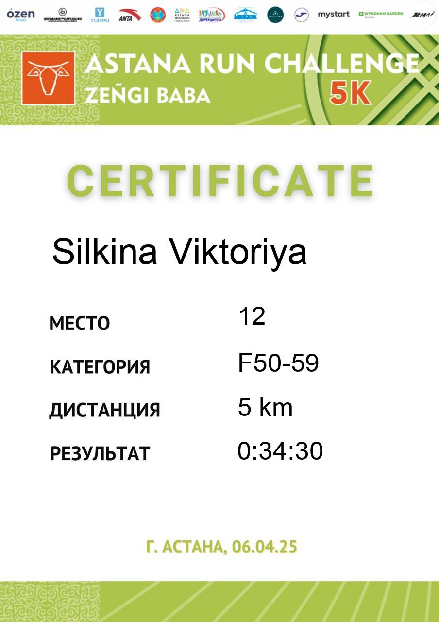 | 5 | Gali Dinmukhammed | 255 | M50-59 | 5 km | 0:21:37 | 91 | Жүктеу |