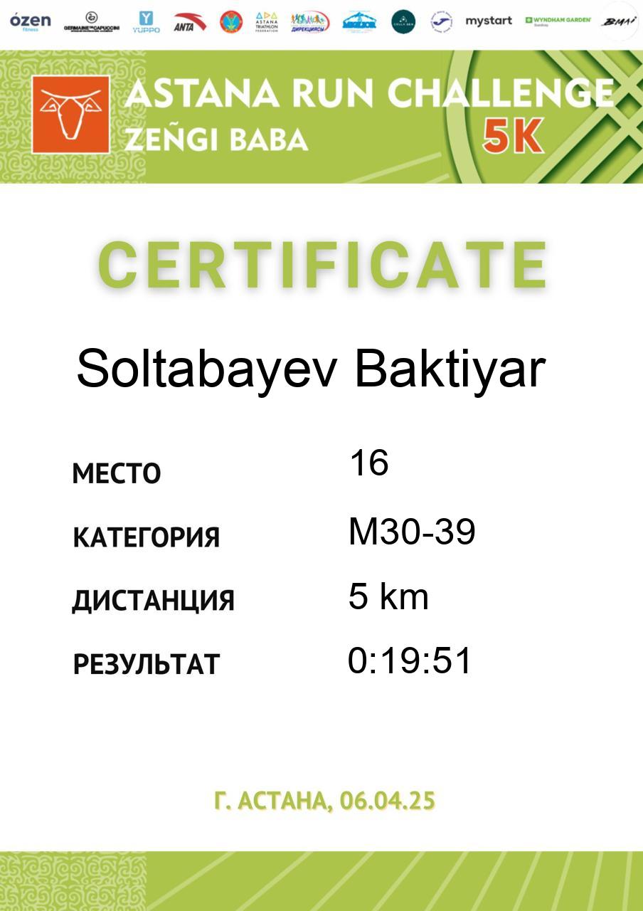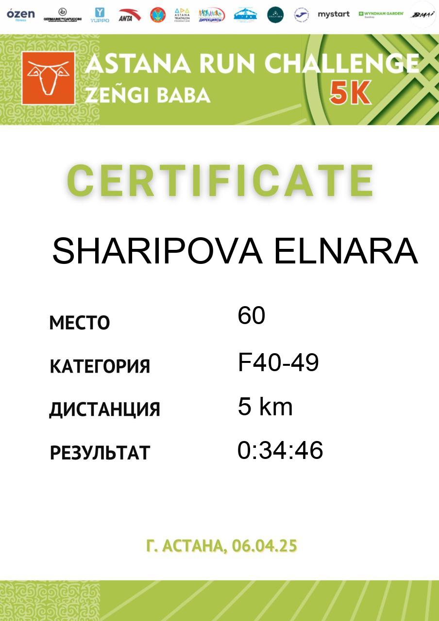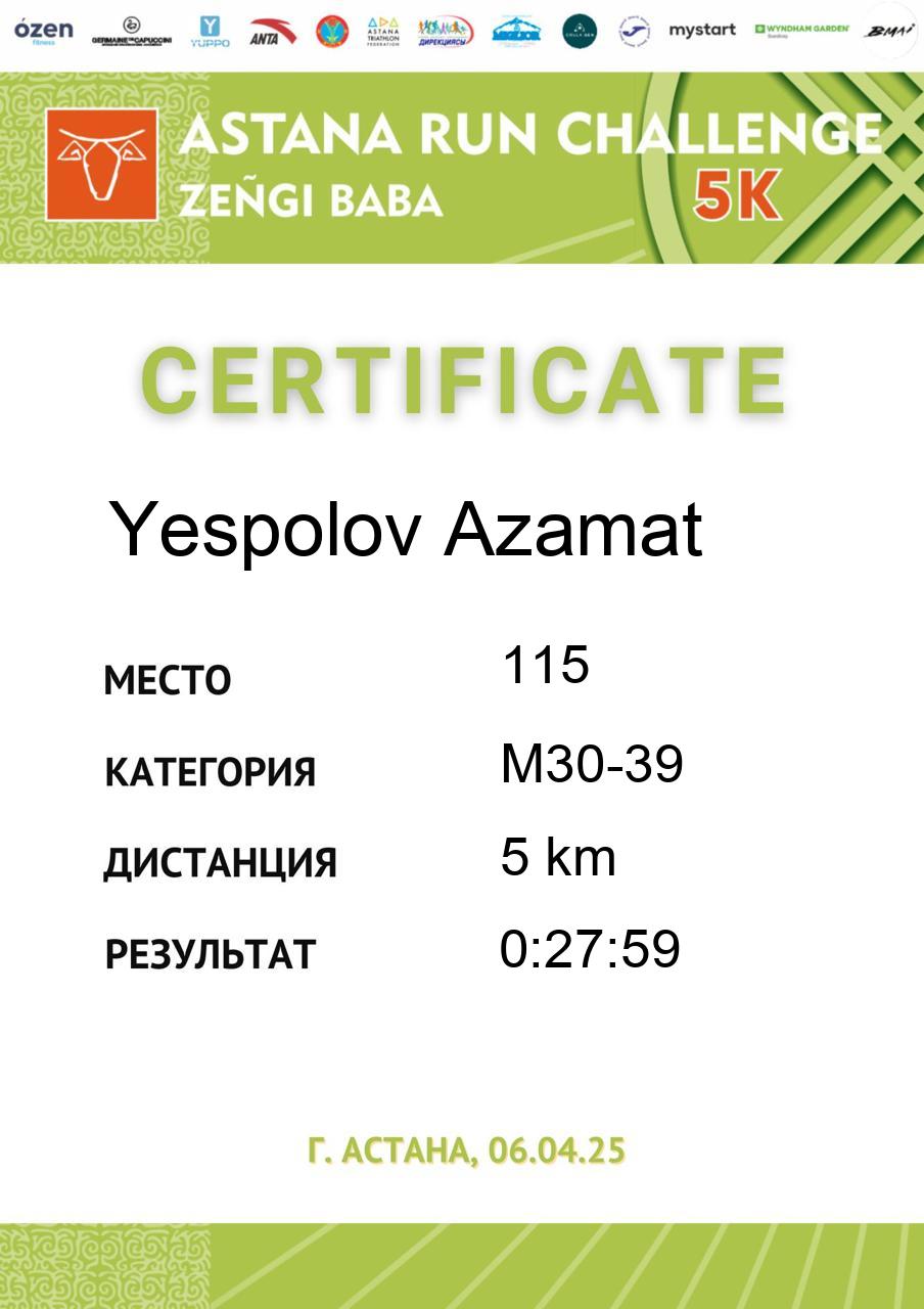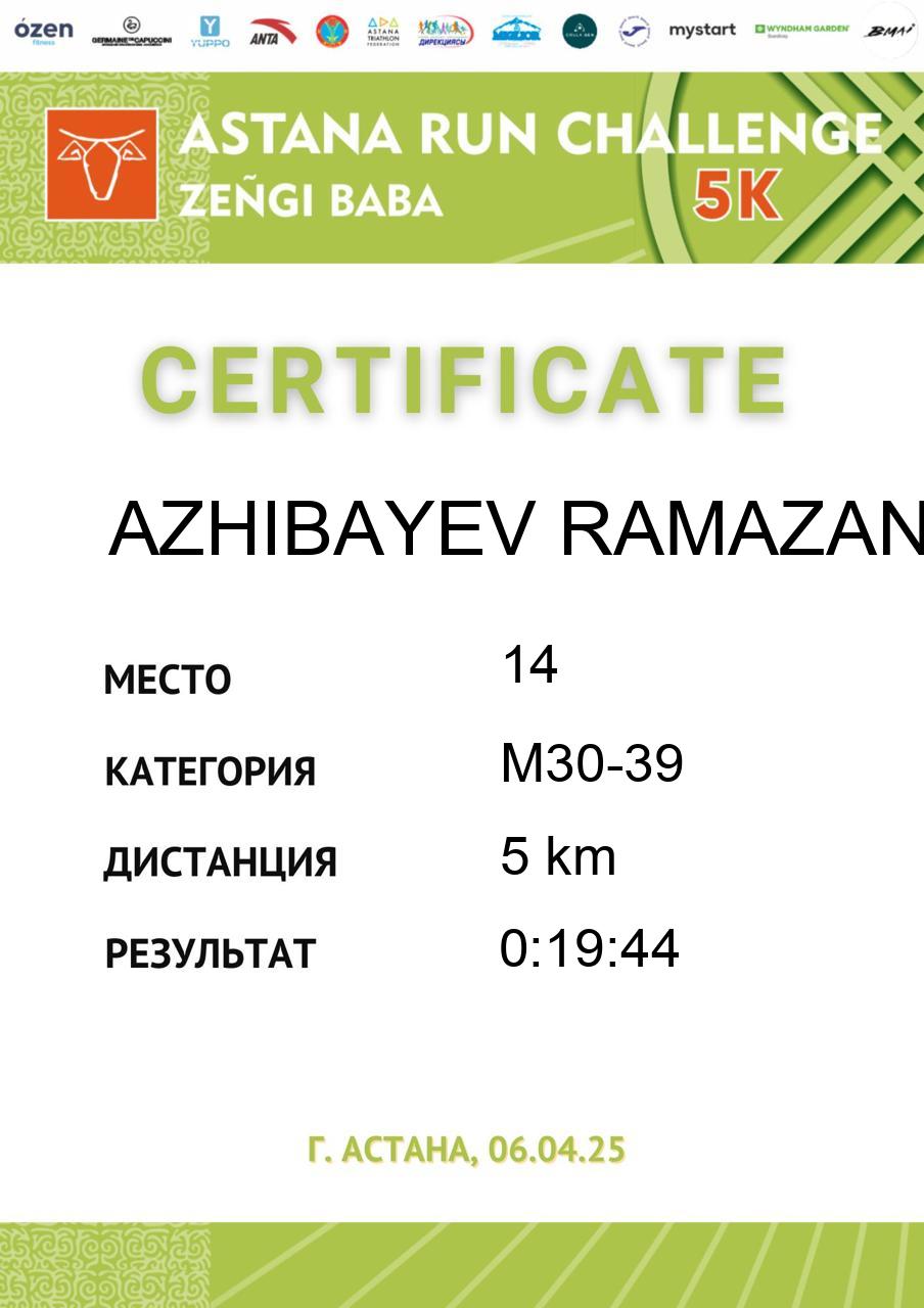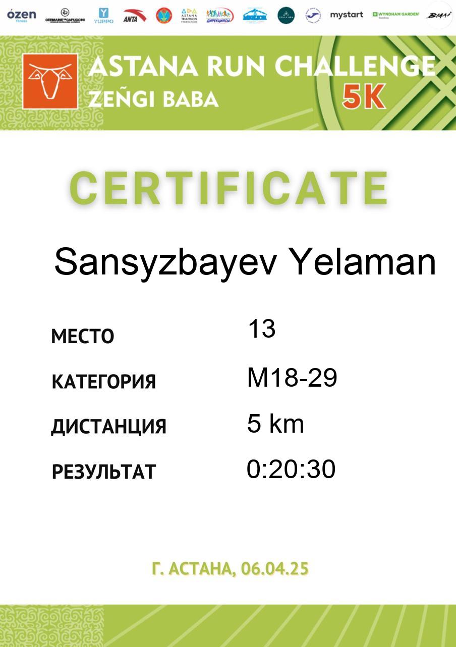 | 5 | Gali Dinmukhammed | 255 | M50-59 | 5 km | 0:21:37 | 91 | Жүктеу |