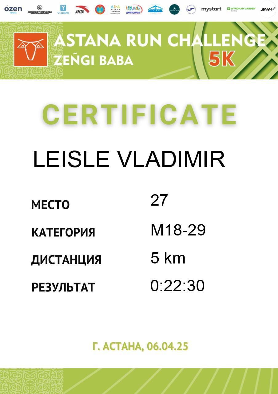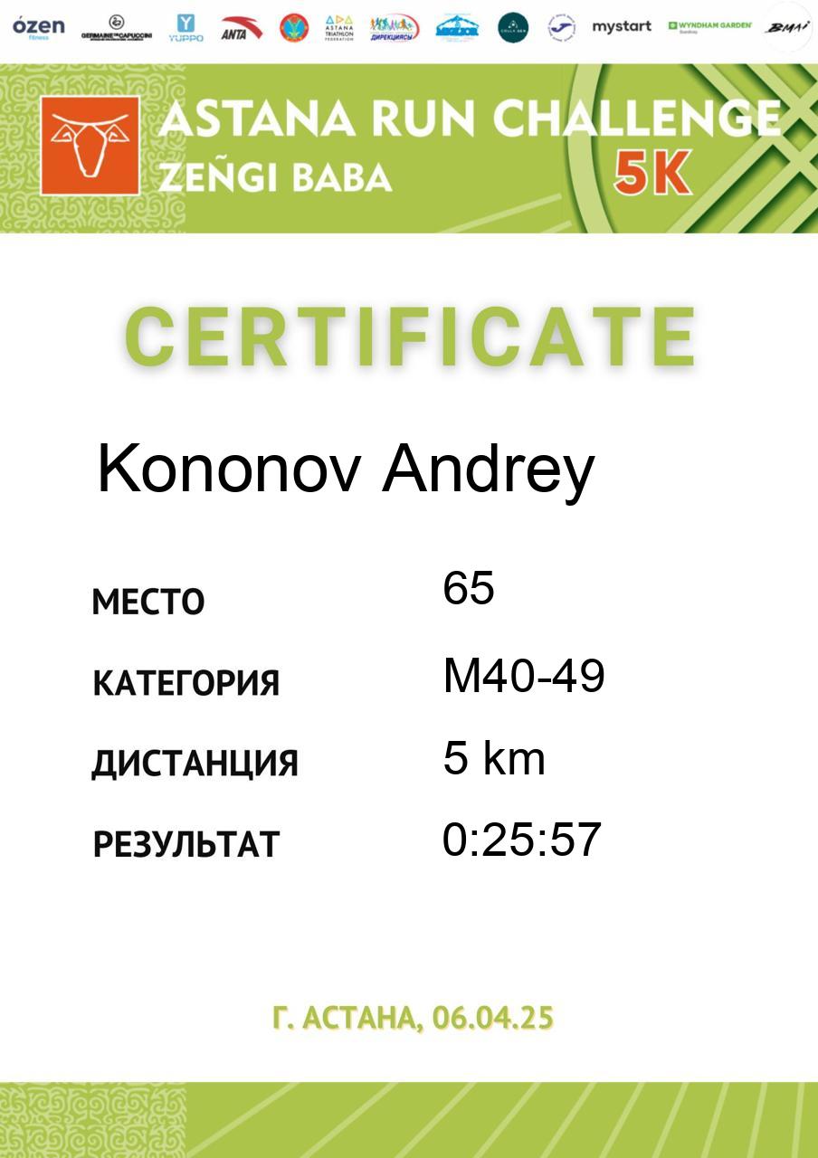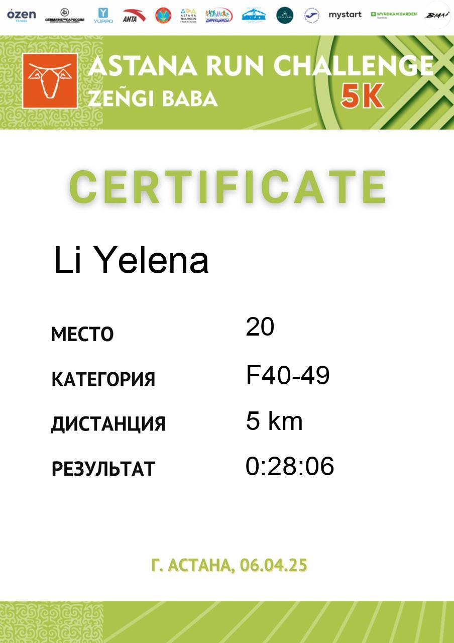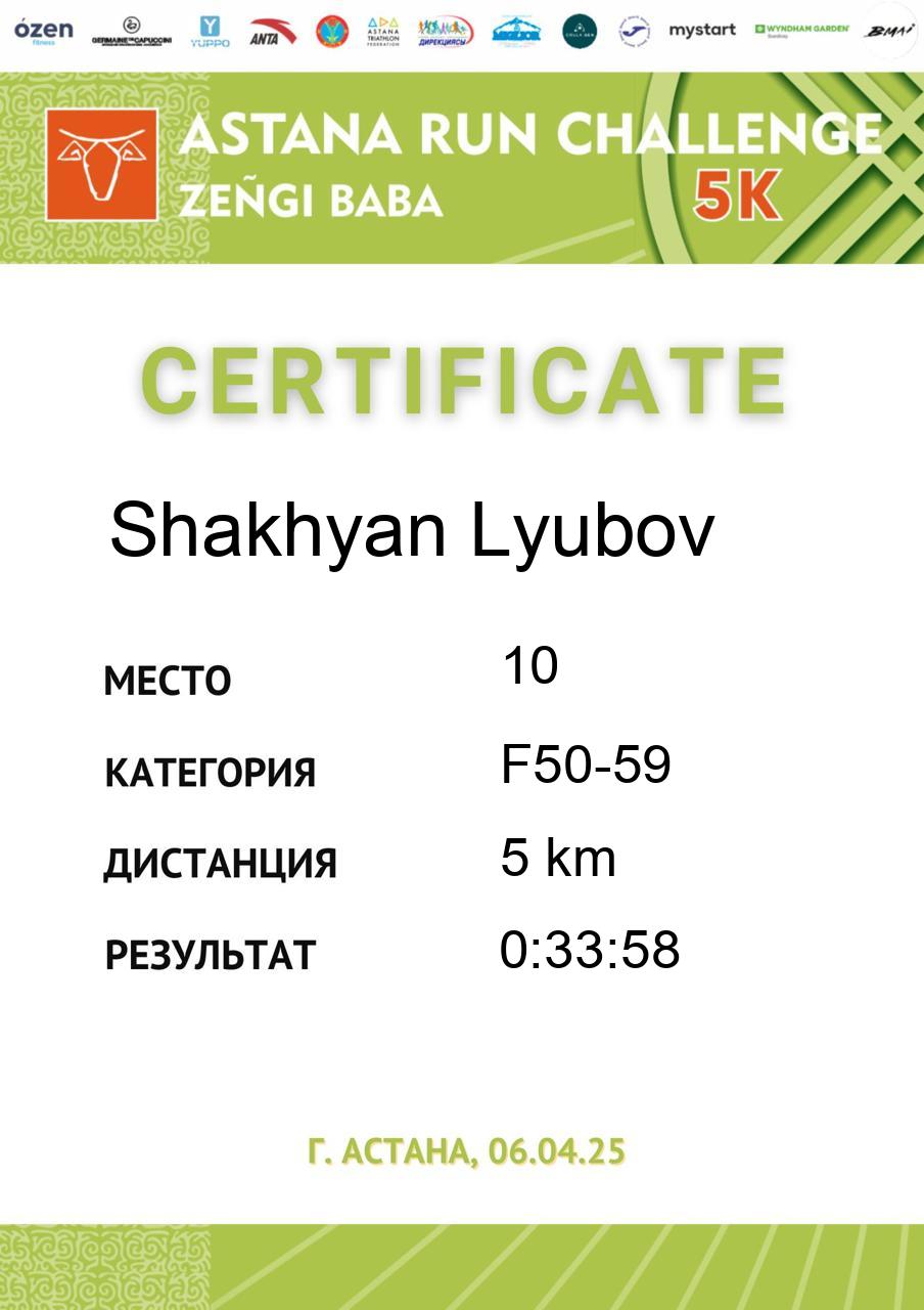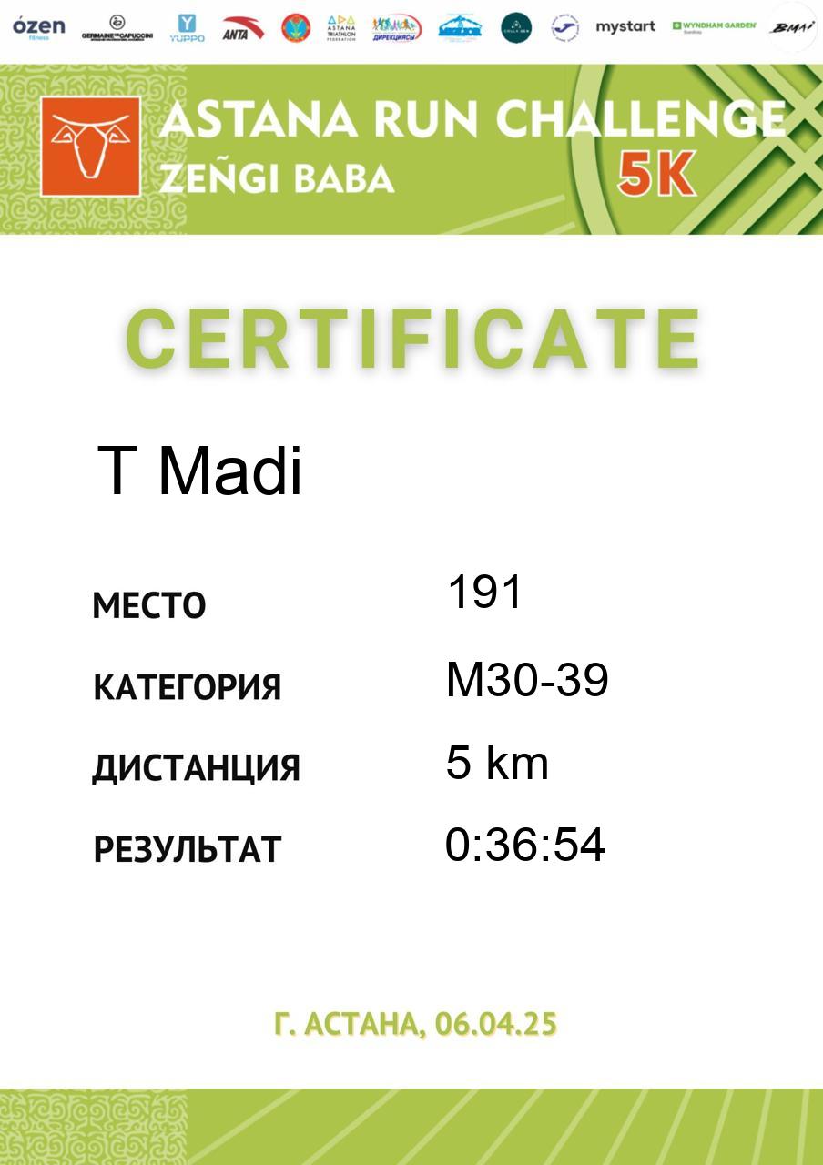 | 5 | Gali Dinmukhammed | 255 | M50-59 | 5 km | 0:21:37 | 91 | Жүктеу |