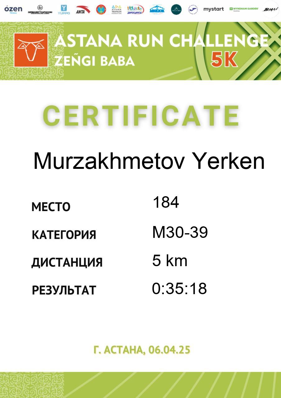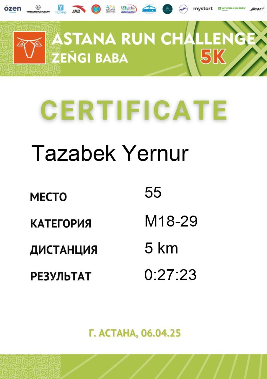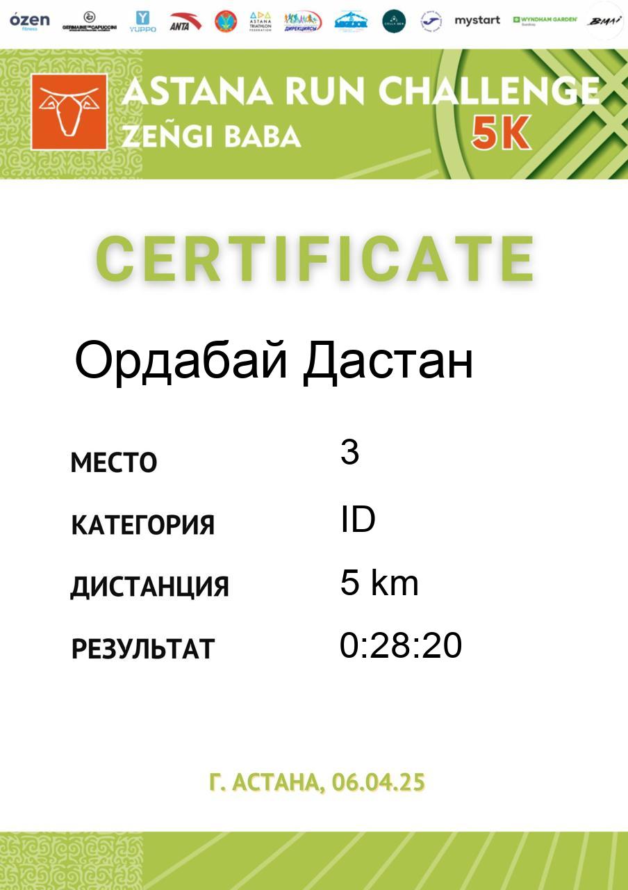 | 5 | Abdil Yerke | 4 | F18-29 | 5 km | 0:26:18 | 283 | Жүктеу |