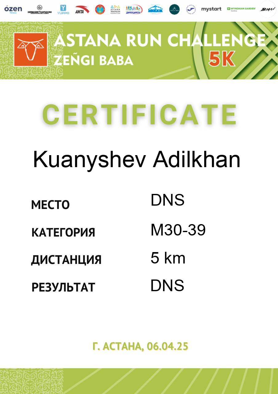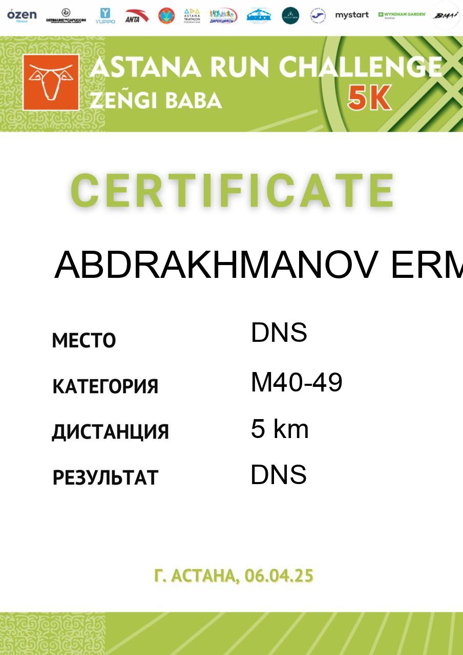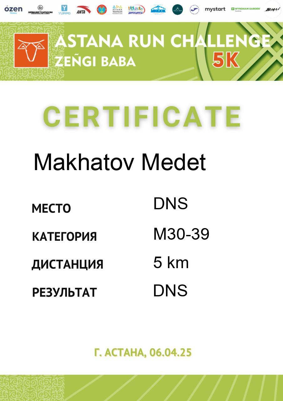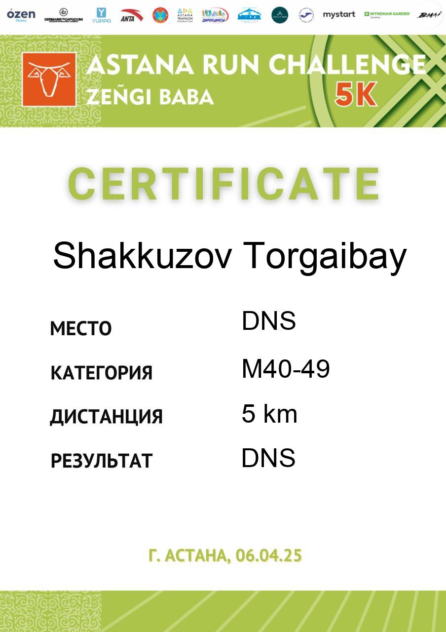| DNS | Zharmakhanov Duman | 887 | M40-49 | 5 km | DNS | DNS | Жүктеу |