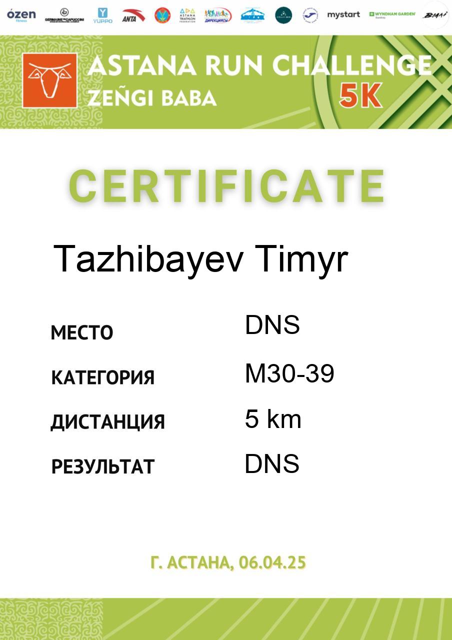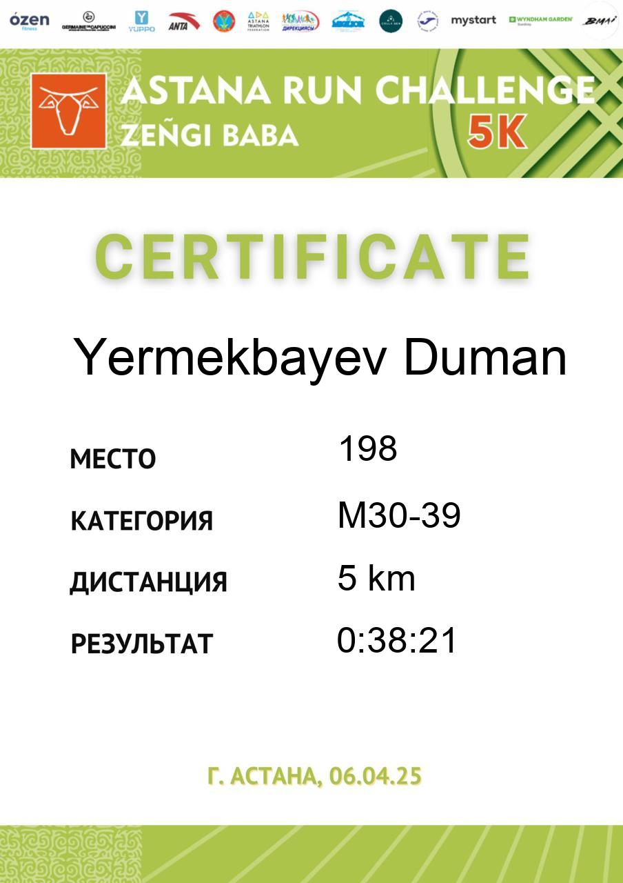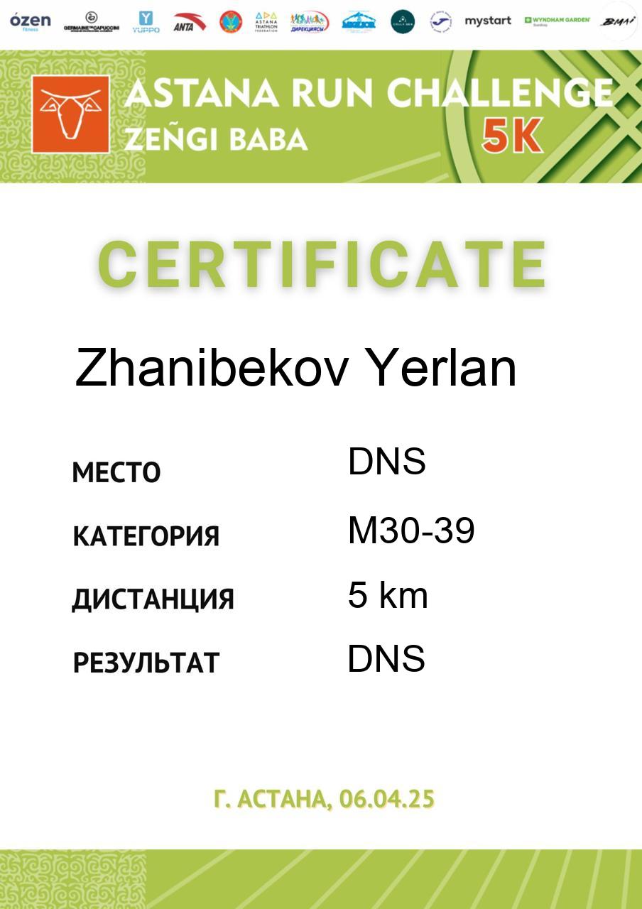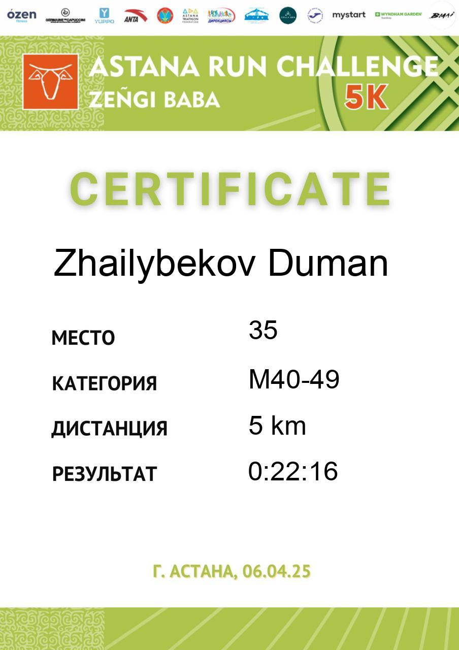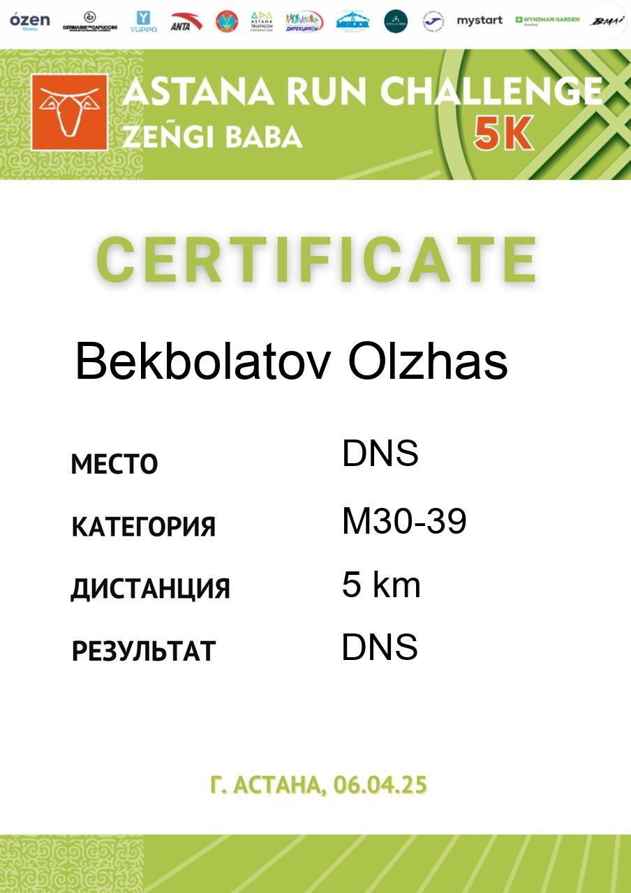| DNS | Zharmakhanov Duman | 887 | M40-49 | 5 km | DNS | DNS | Жүктеу |
