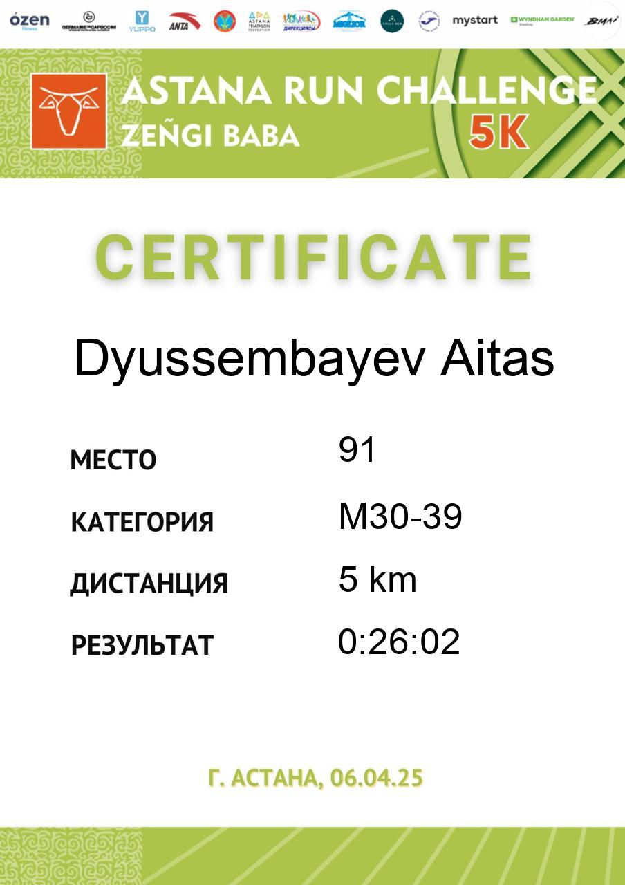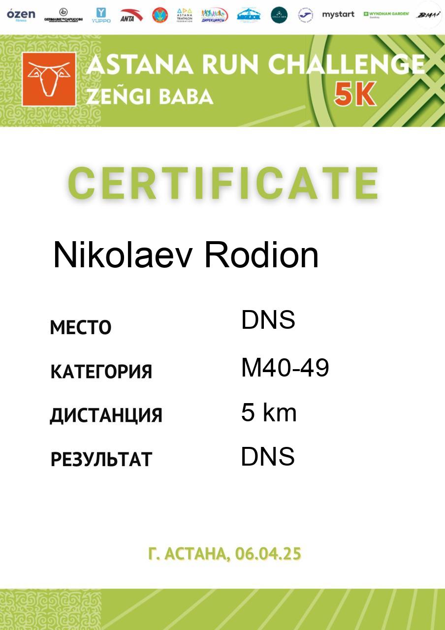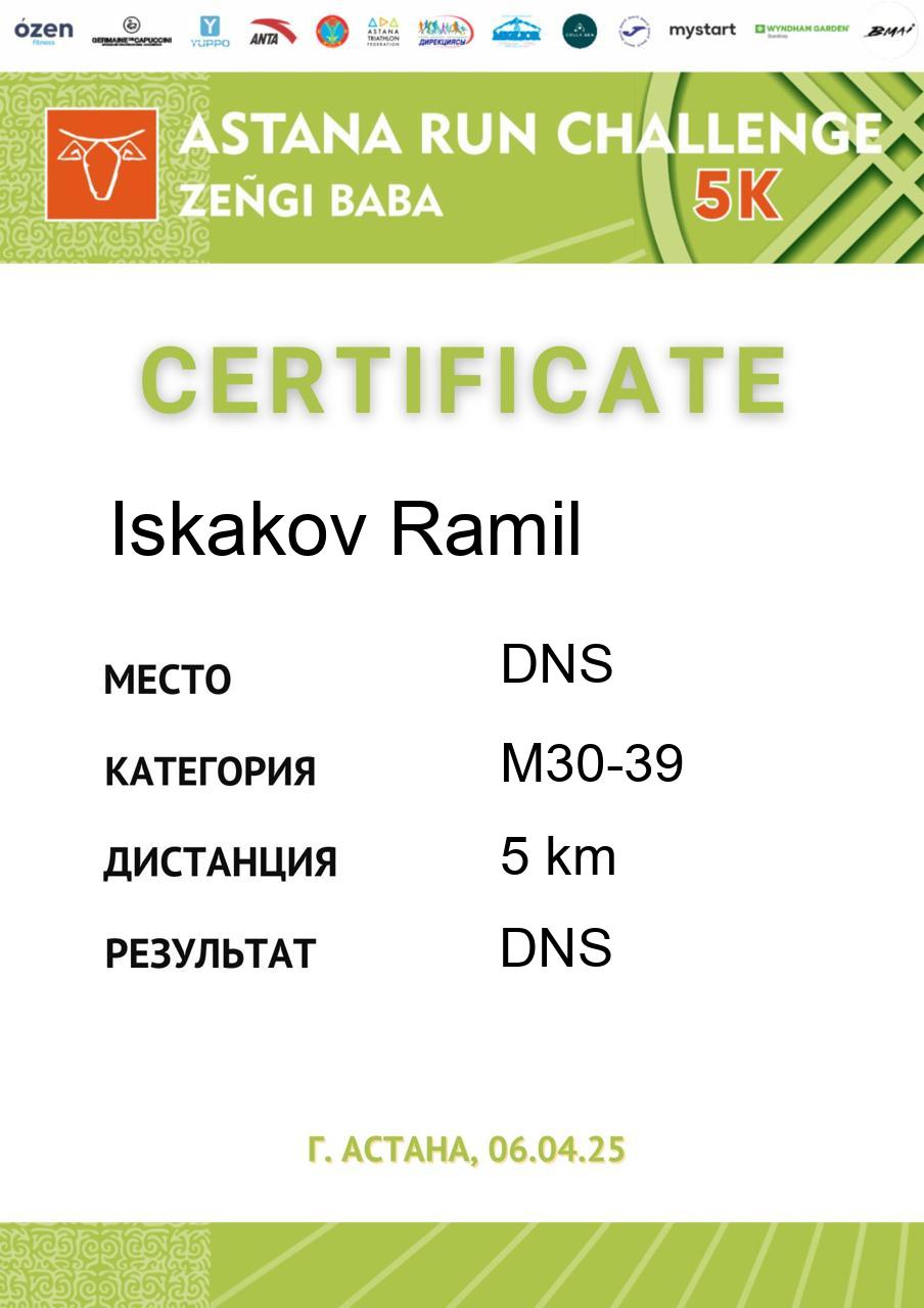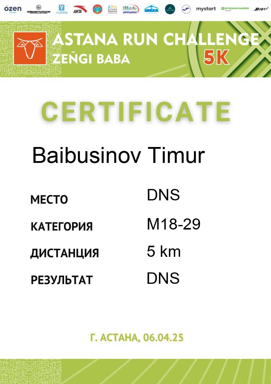 | DNS | Zharmakhanov Duman | 887 | M40-49 | 5 km | DNS | DNS | Жүктеу |