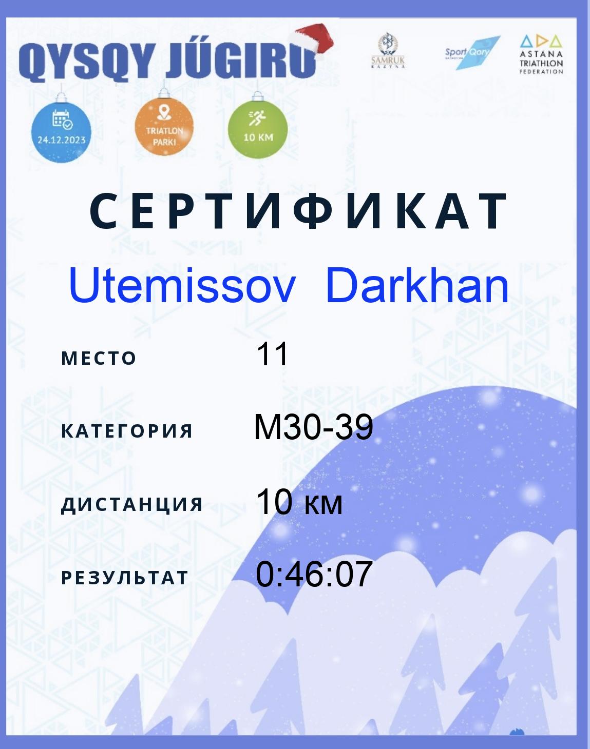 | 11 | Utemissov Darkhan | 246 | M30-39 | 10 км | 0:46:07 | Жүктеу |
