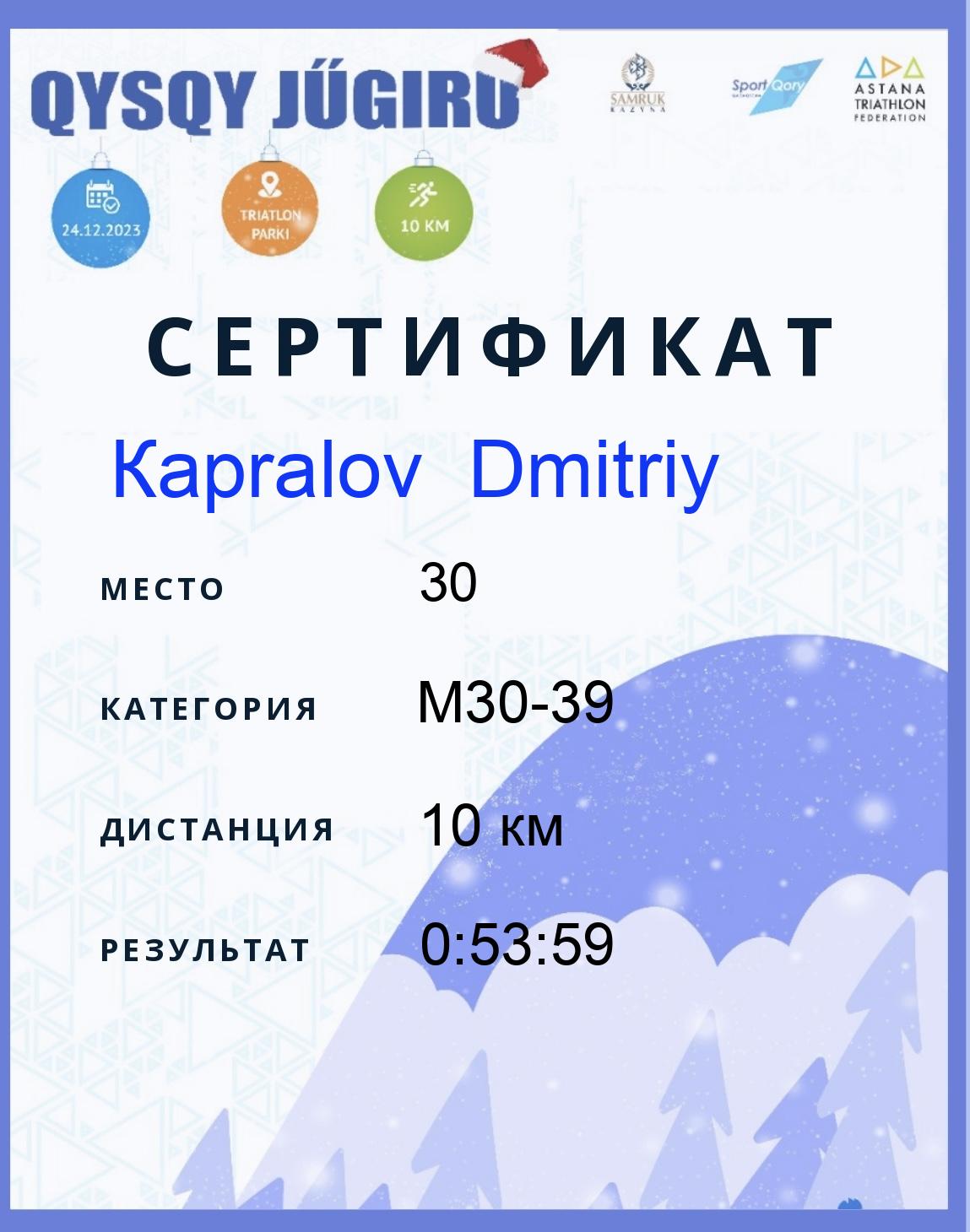 | 8 | Nadraliyev Bisultan | 164 | M18-29 | 10 км | 0:48:28 | Жүктеу |