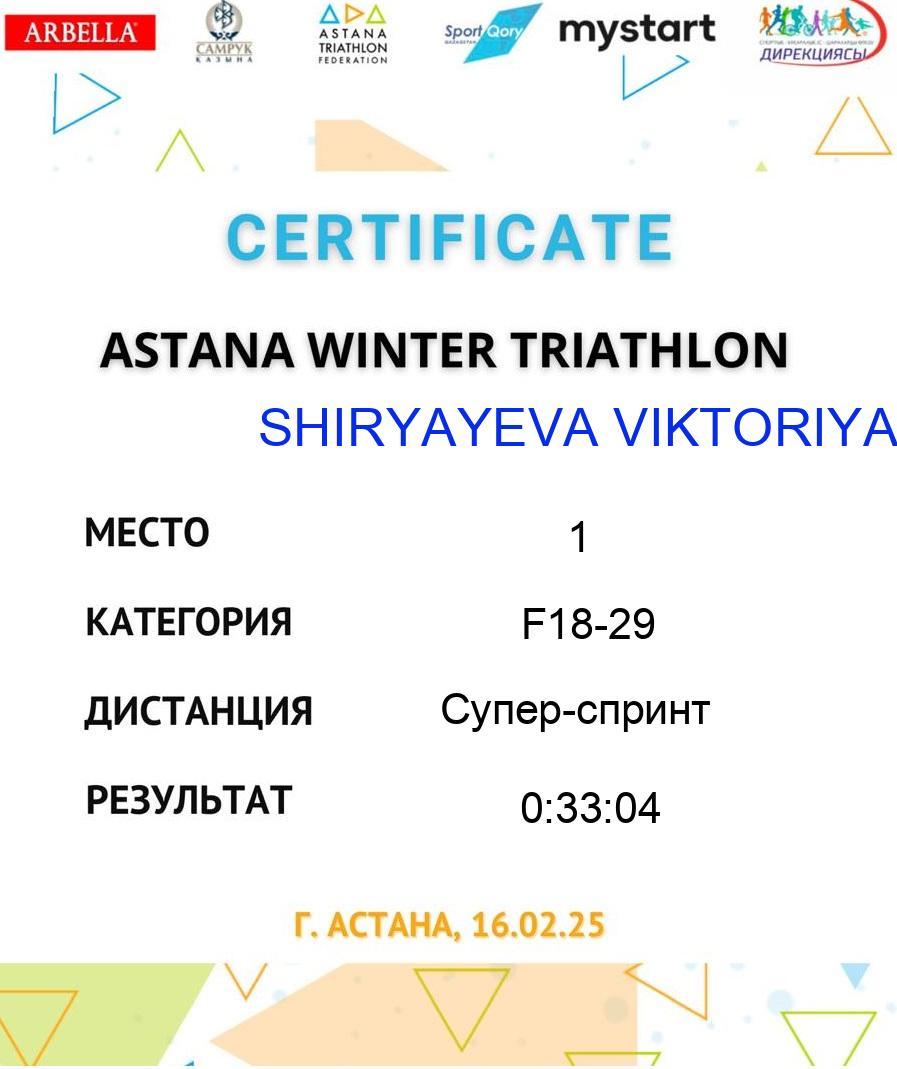 | 1 | SHIRYAYEVA VIKTORIYA | 182 | F18-29 | Супер-спринт | 20 | 0:11:29 | 0:00:58 | 0:08:53 | 0:01:49 | 0:09:57 | 0:33:04 | Скачать |