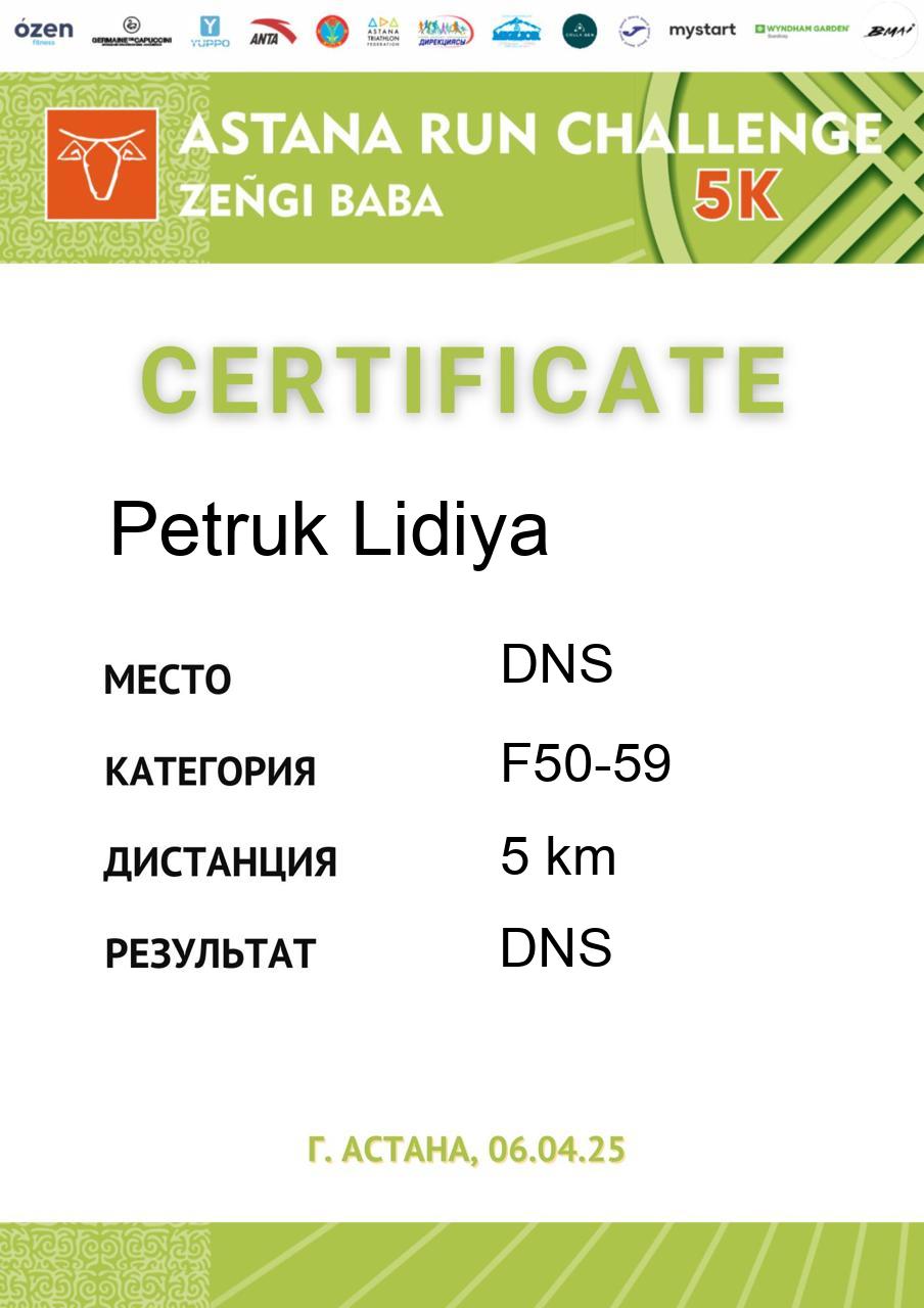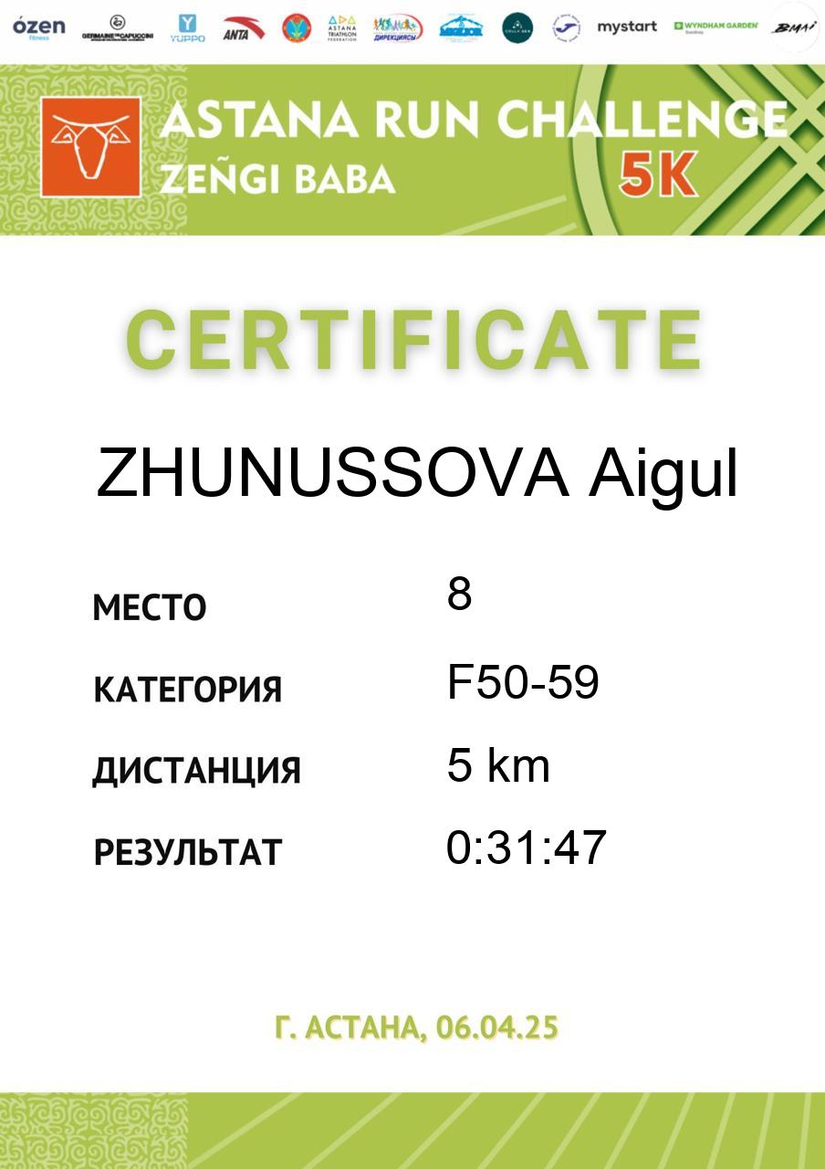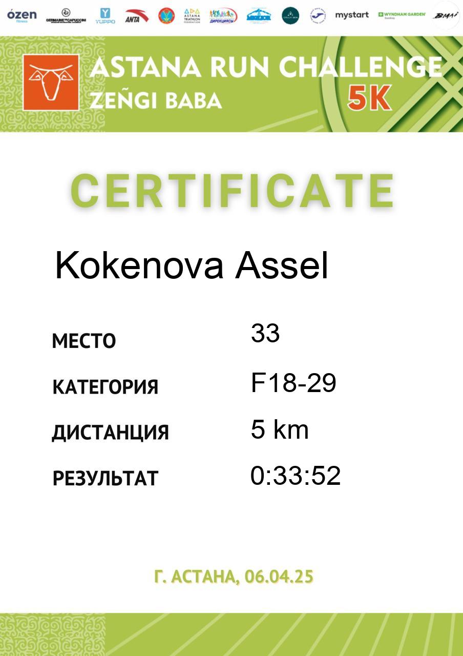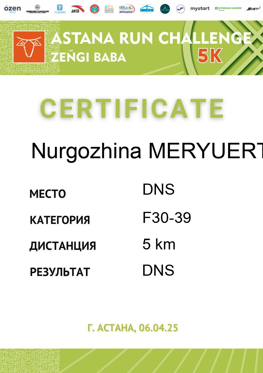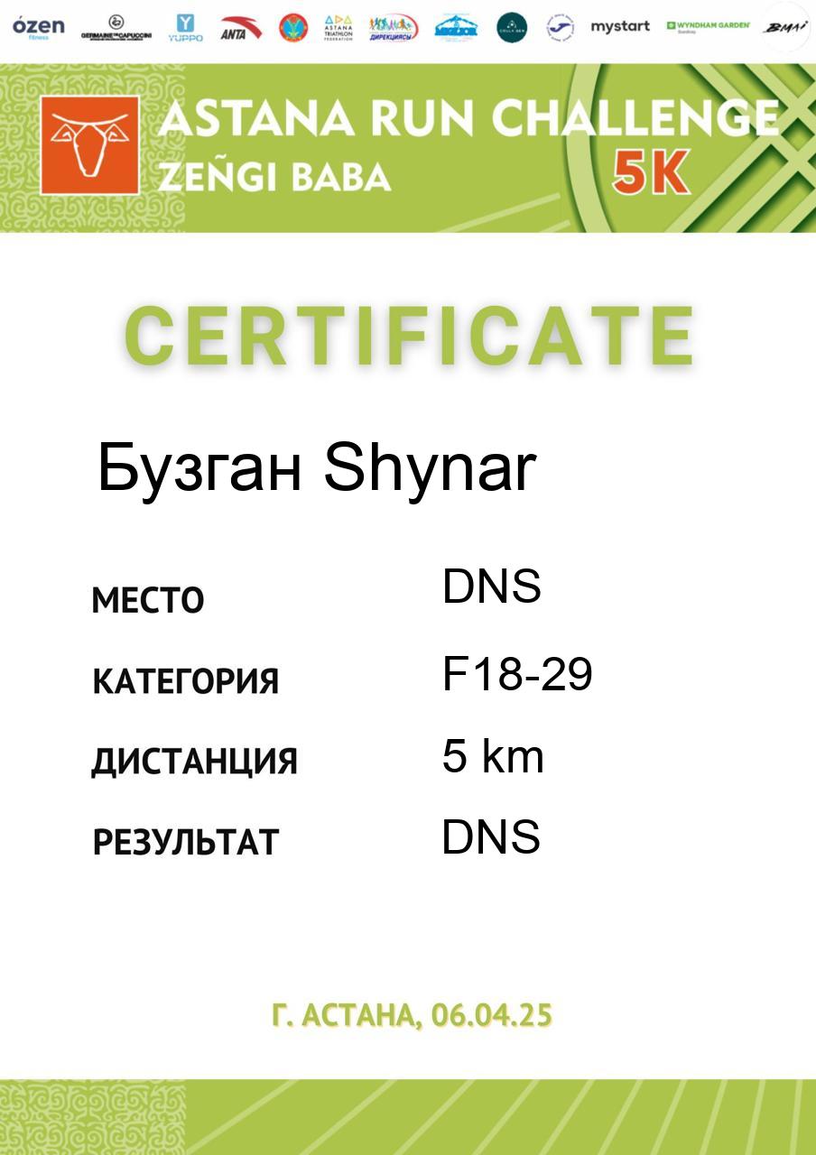 | DNS | Касымбекова Арайлым | 28 | F18-29 | 5 km | DNS | DNS | Скачать |