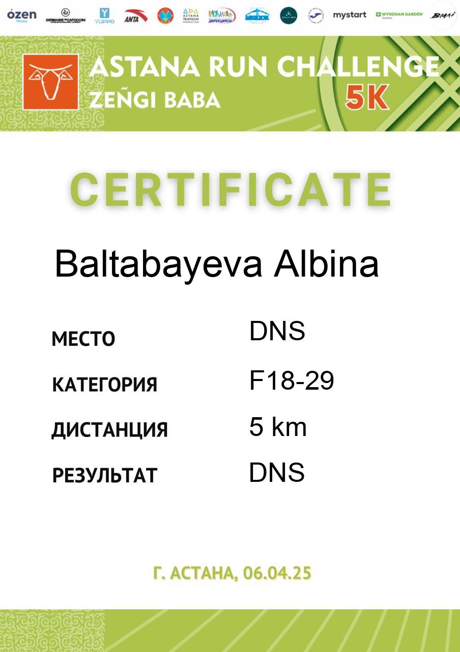 | DNS | Kashakova Zhansaya | 342 | F18-29 | 5 km | DNS | DNS | Скачать |