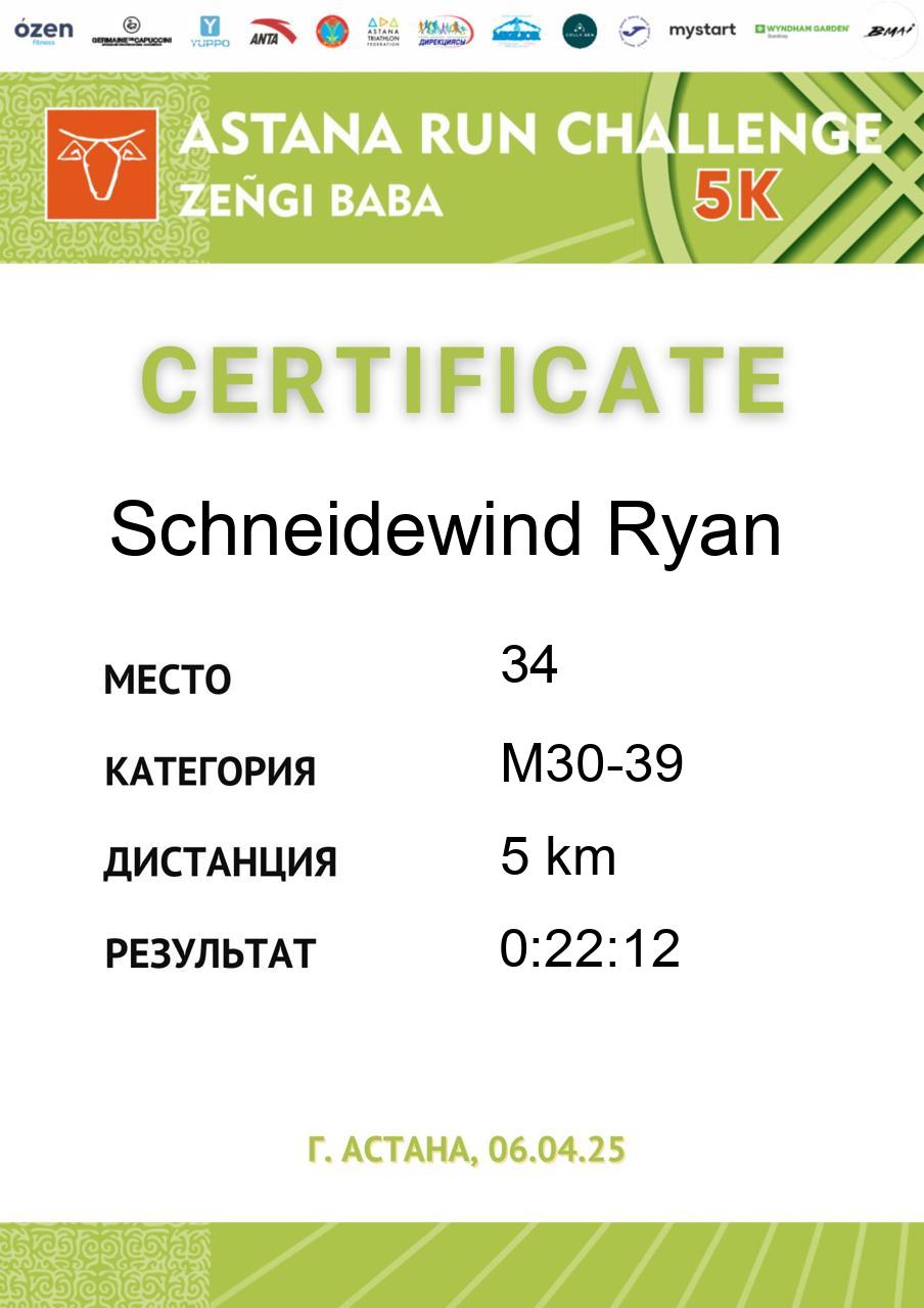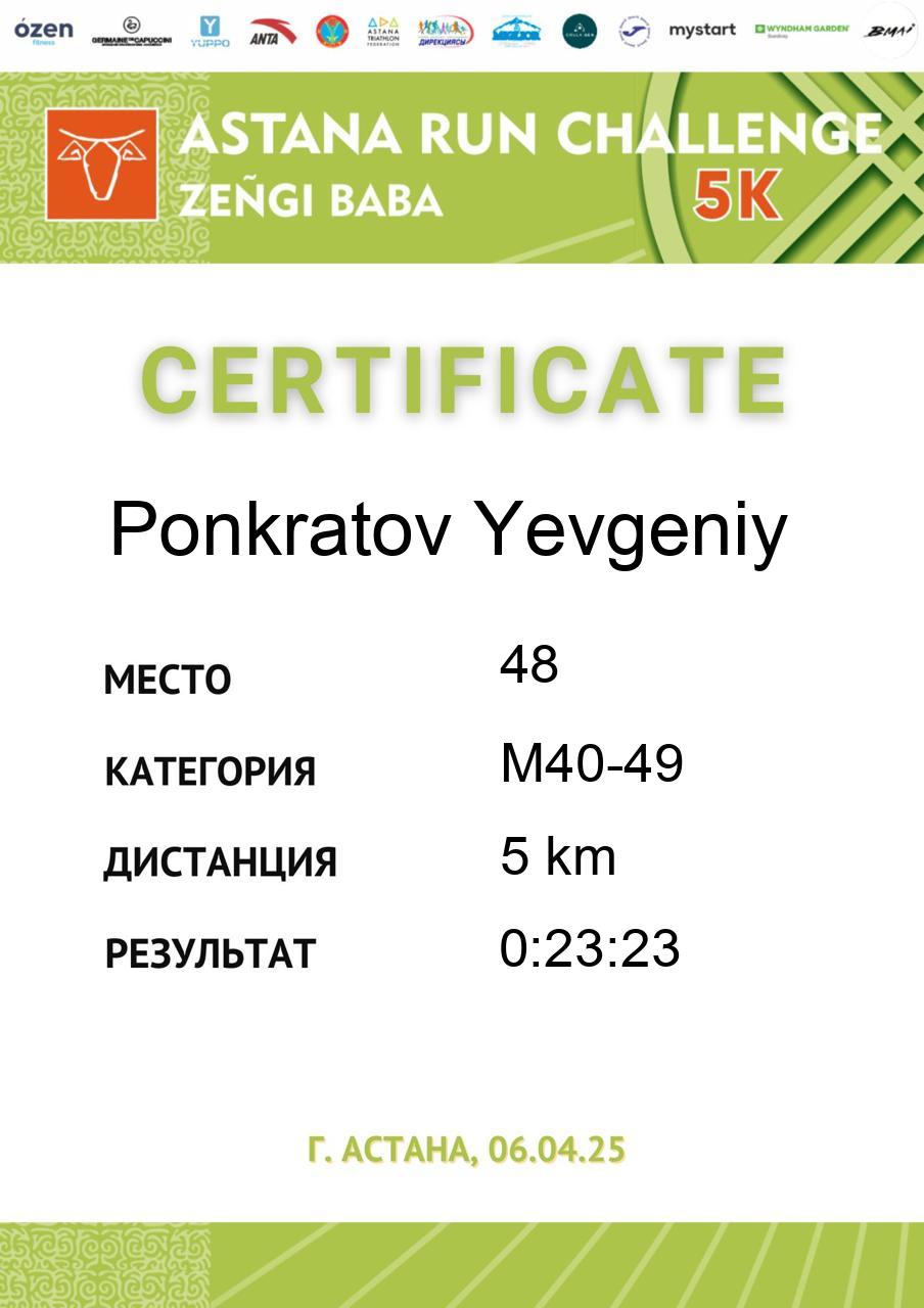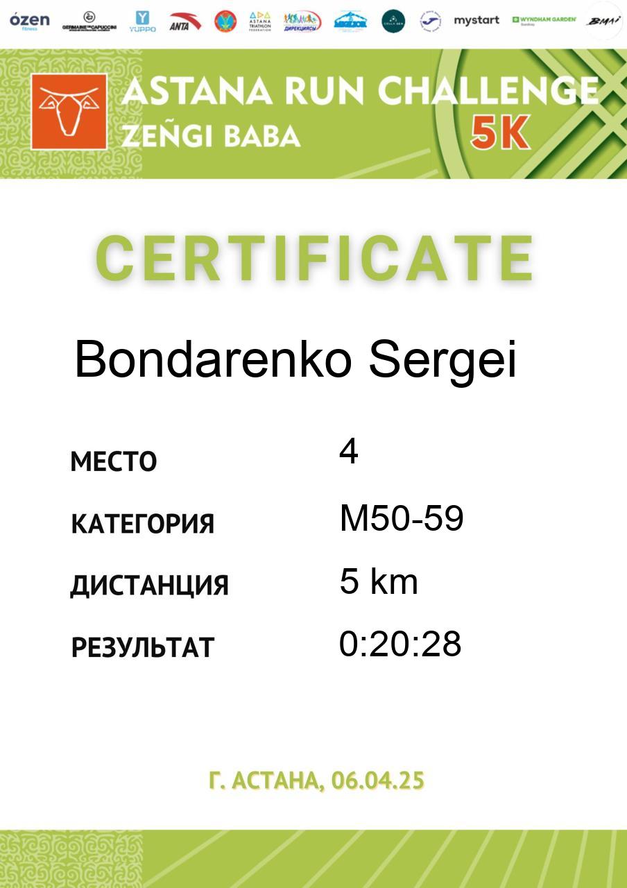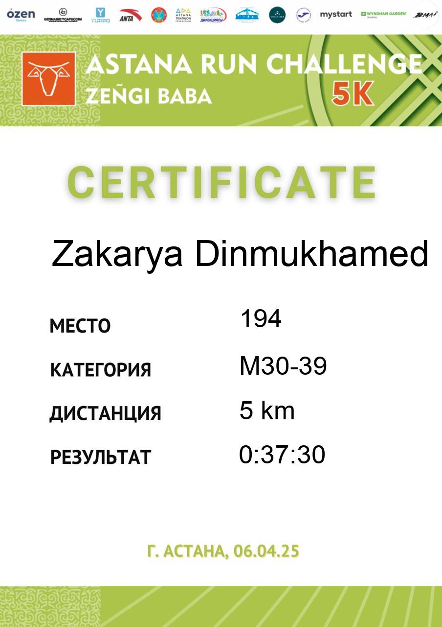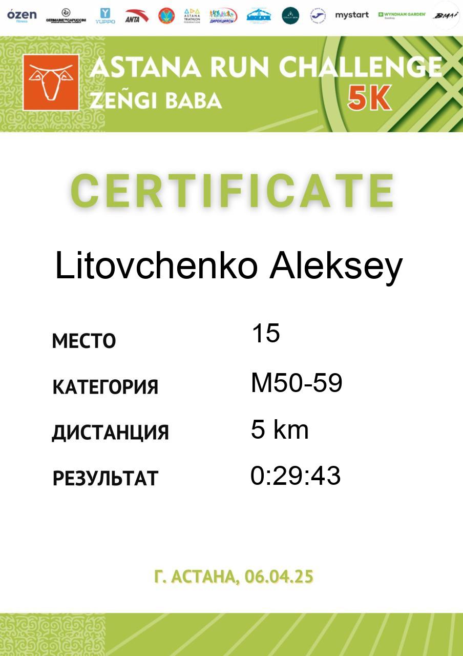 | 5 | Gali Dinmukhammed | 255 | M50-59 | 5 km | 0:21:37 | 91 | Скачать |