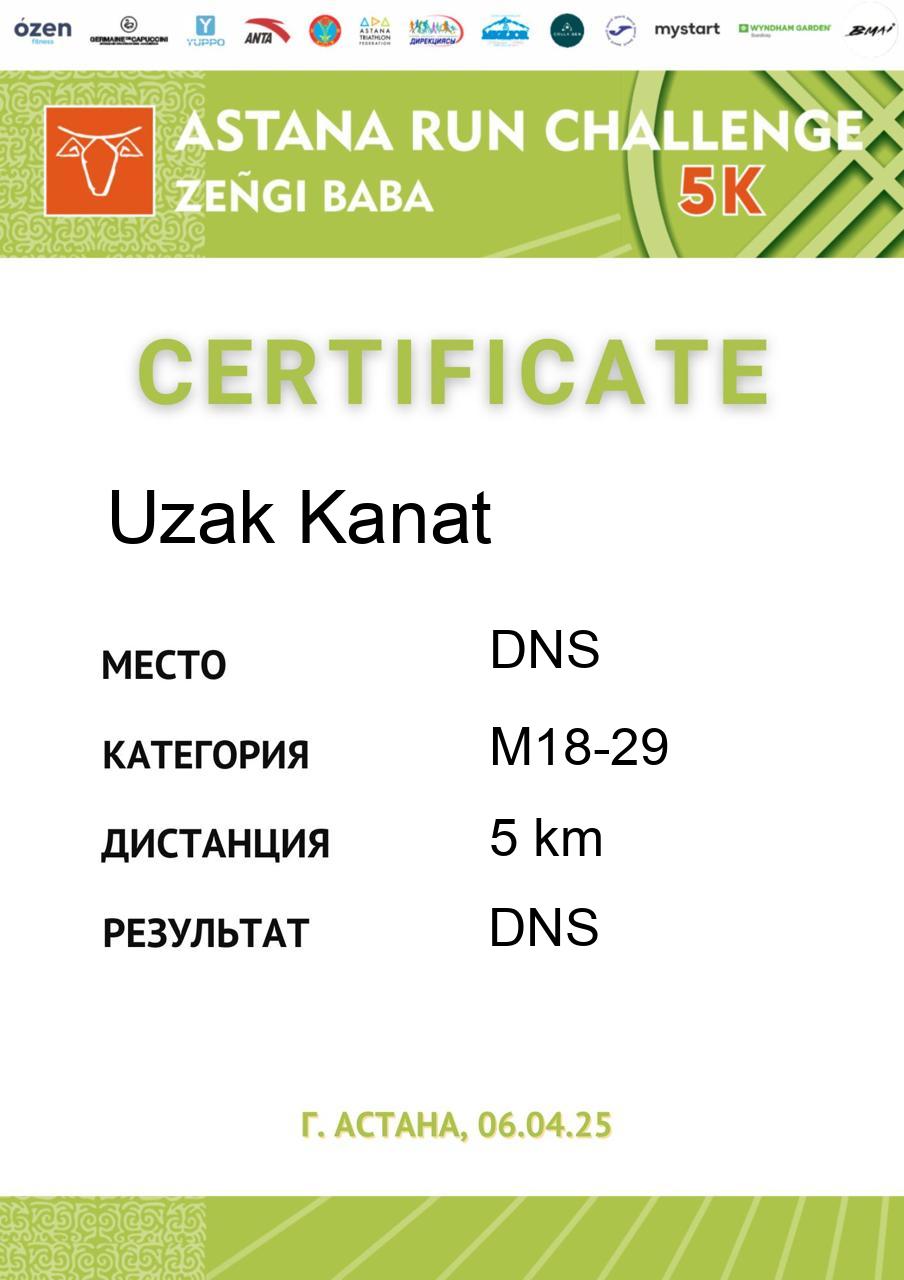 | DNS | Кабибулов Кенес | 406 | ВК | 5 km | DNS | DNS | Скачать |