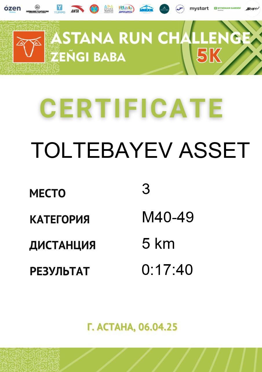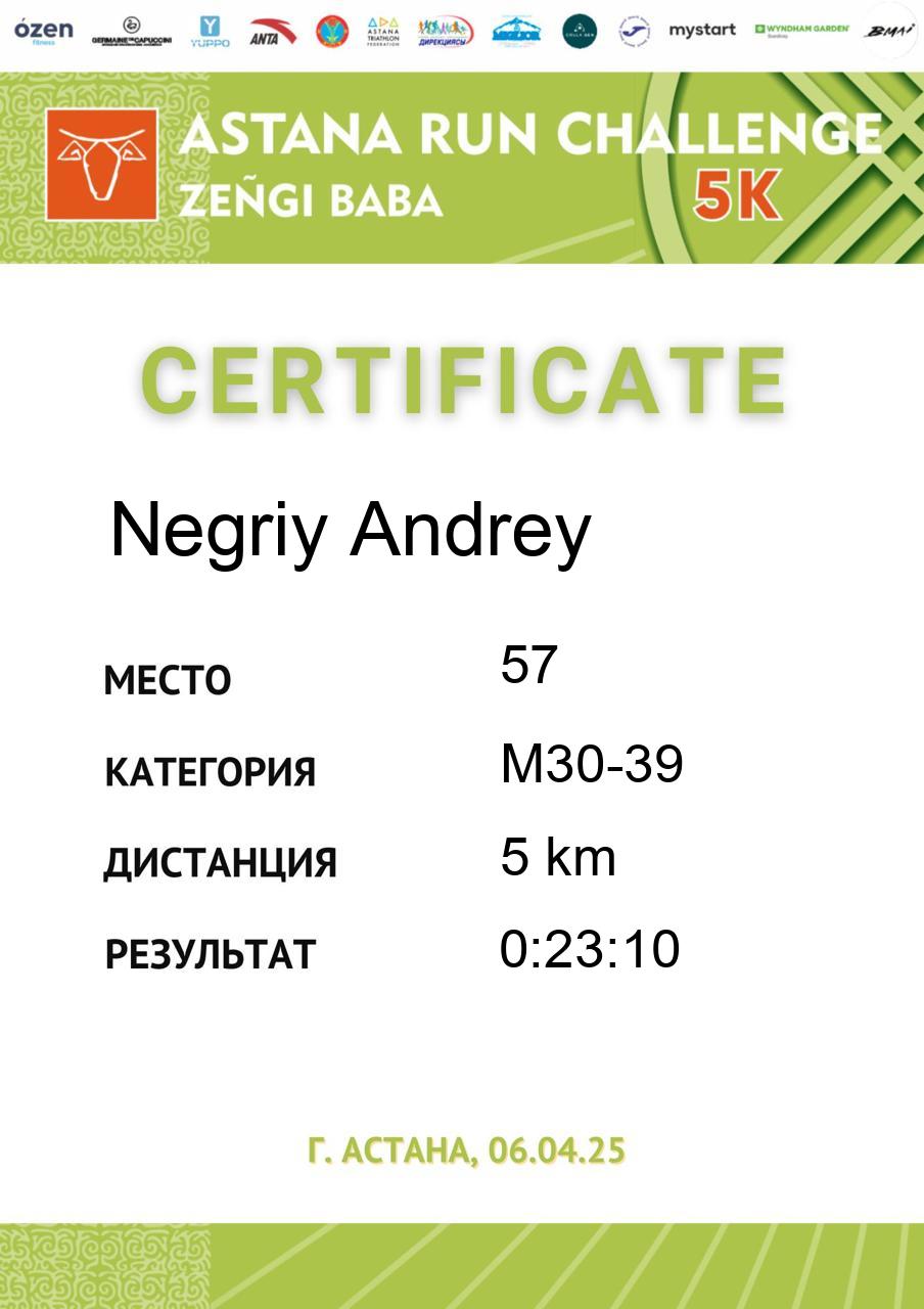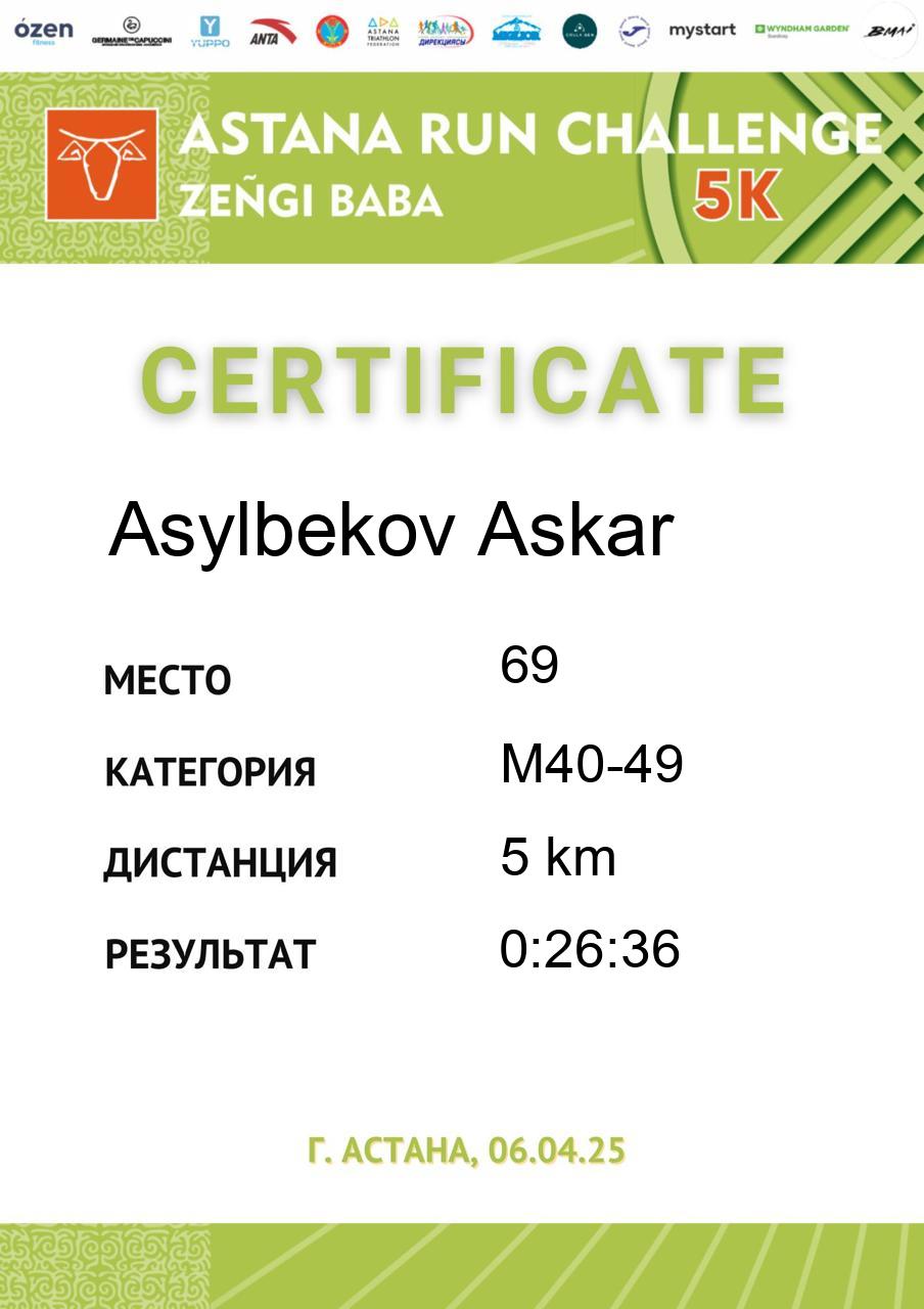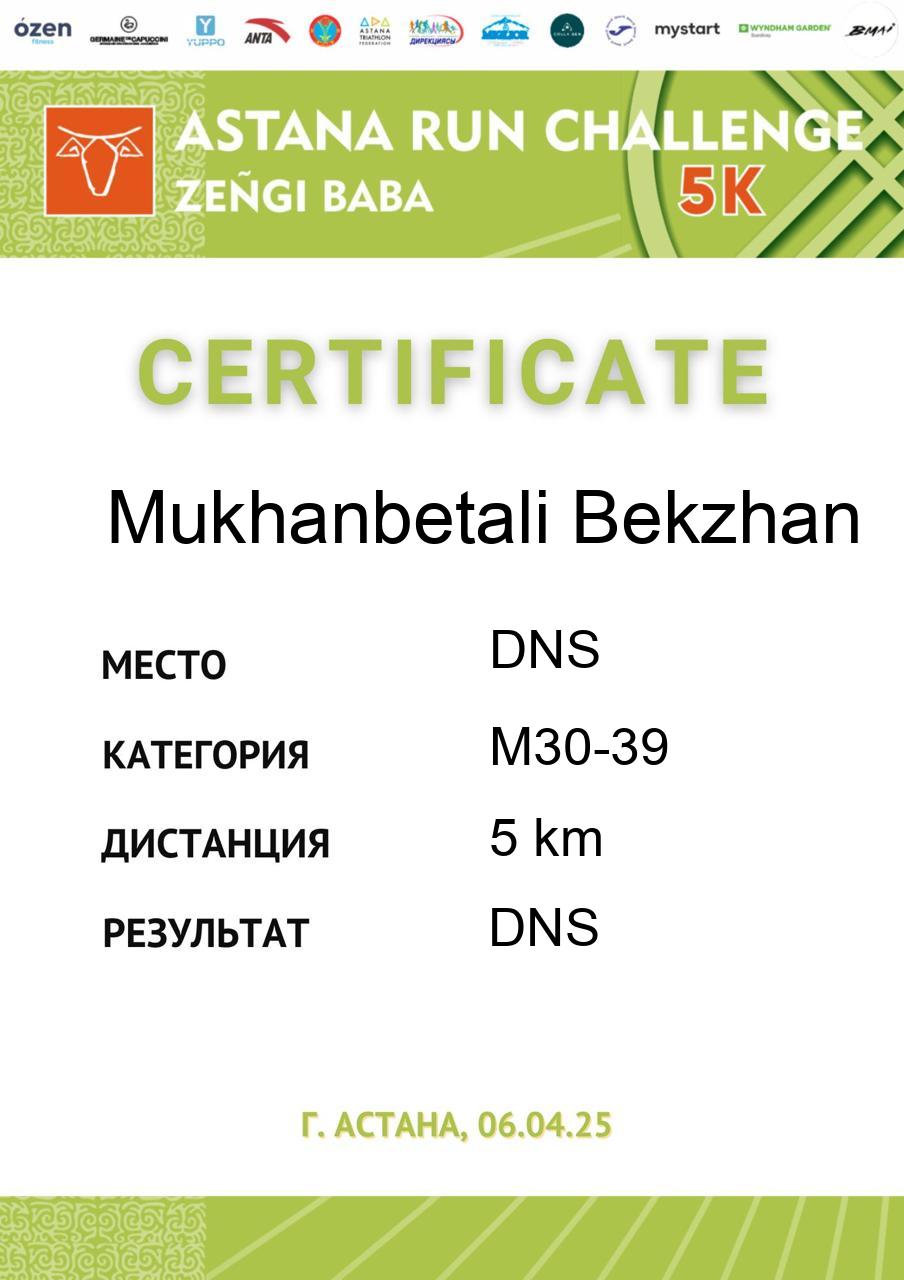| DNS | Dostiyarov Assylzhan | 872 | M40-49 | 5 km | DNS | DNS | Скачать |