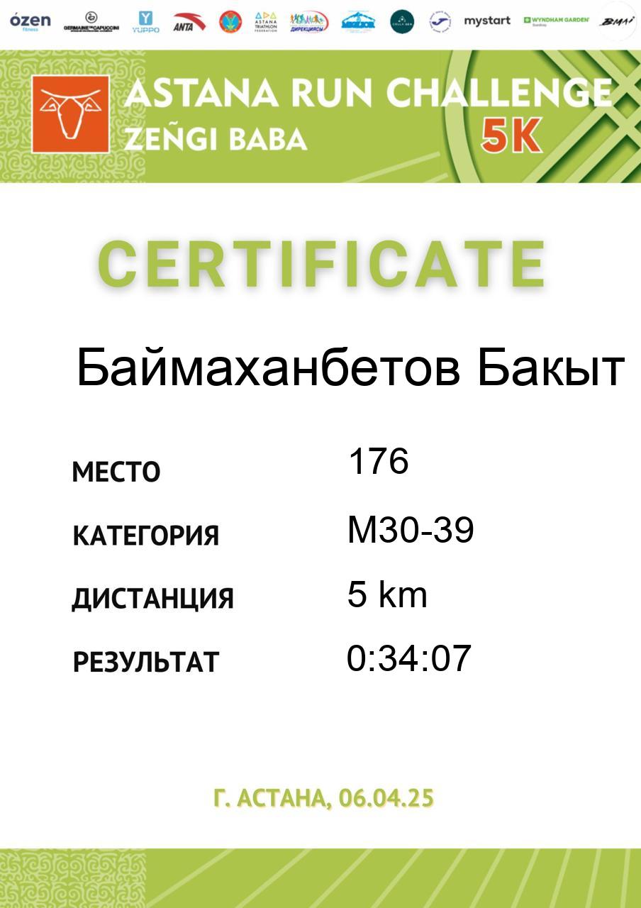 | 134 | Bikirov Galym | 180 | M40-49 | 5 km | 0:35:44 | 689 | Скачать |