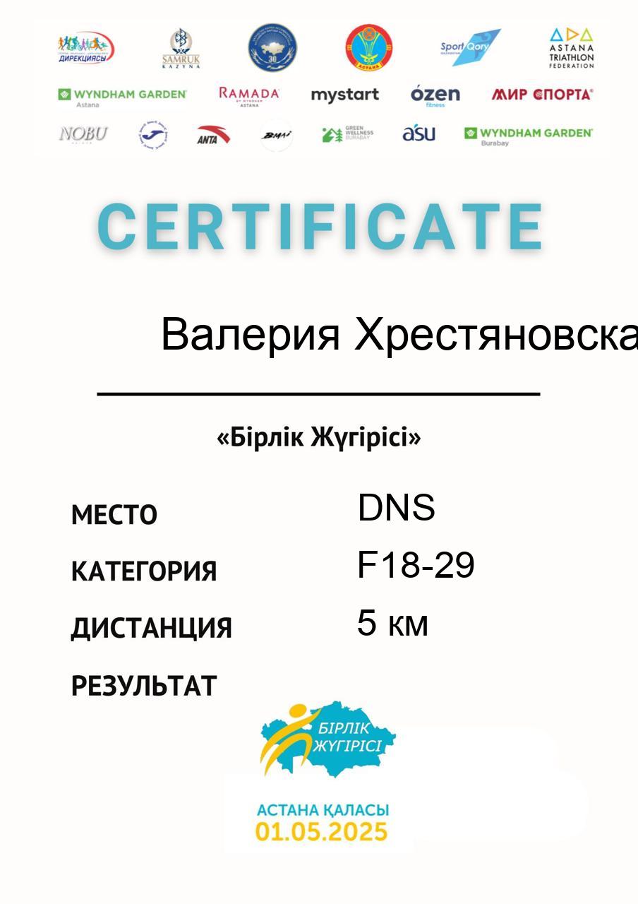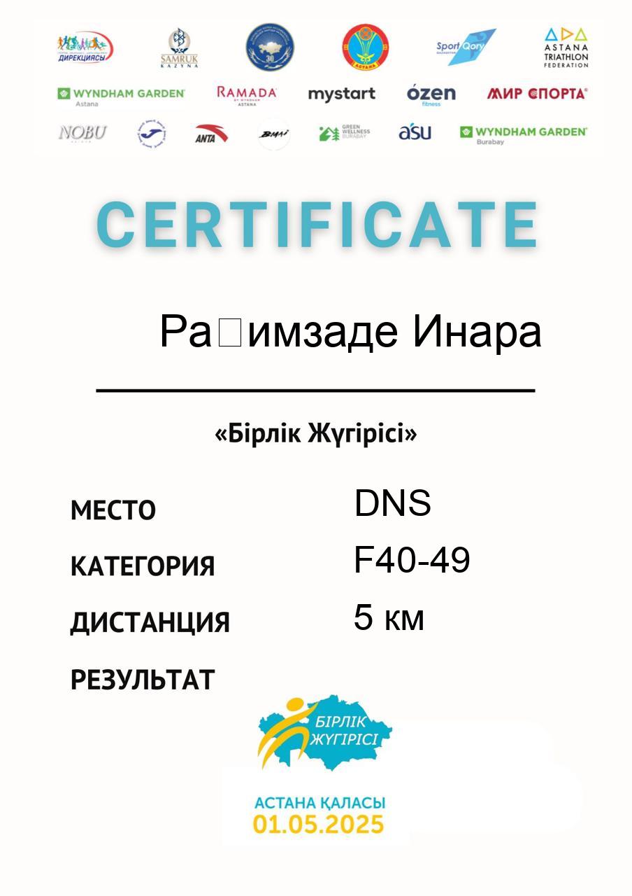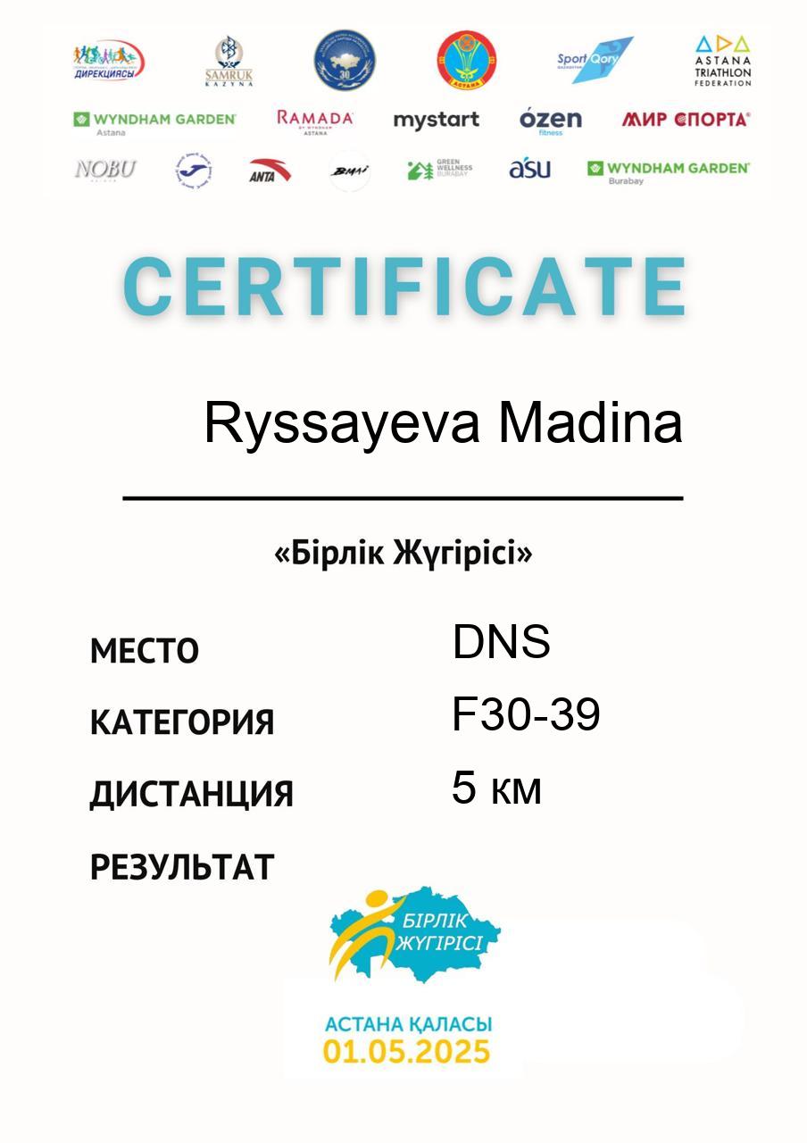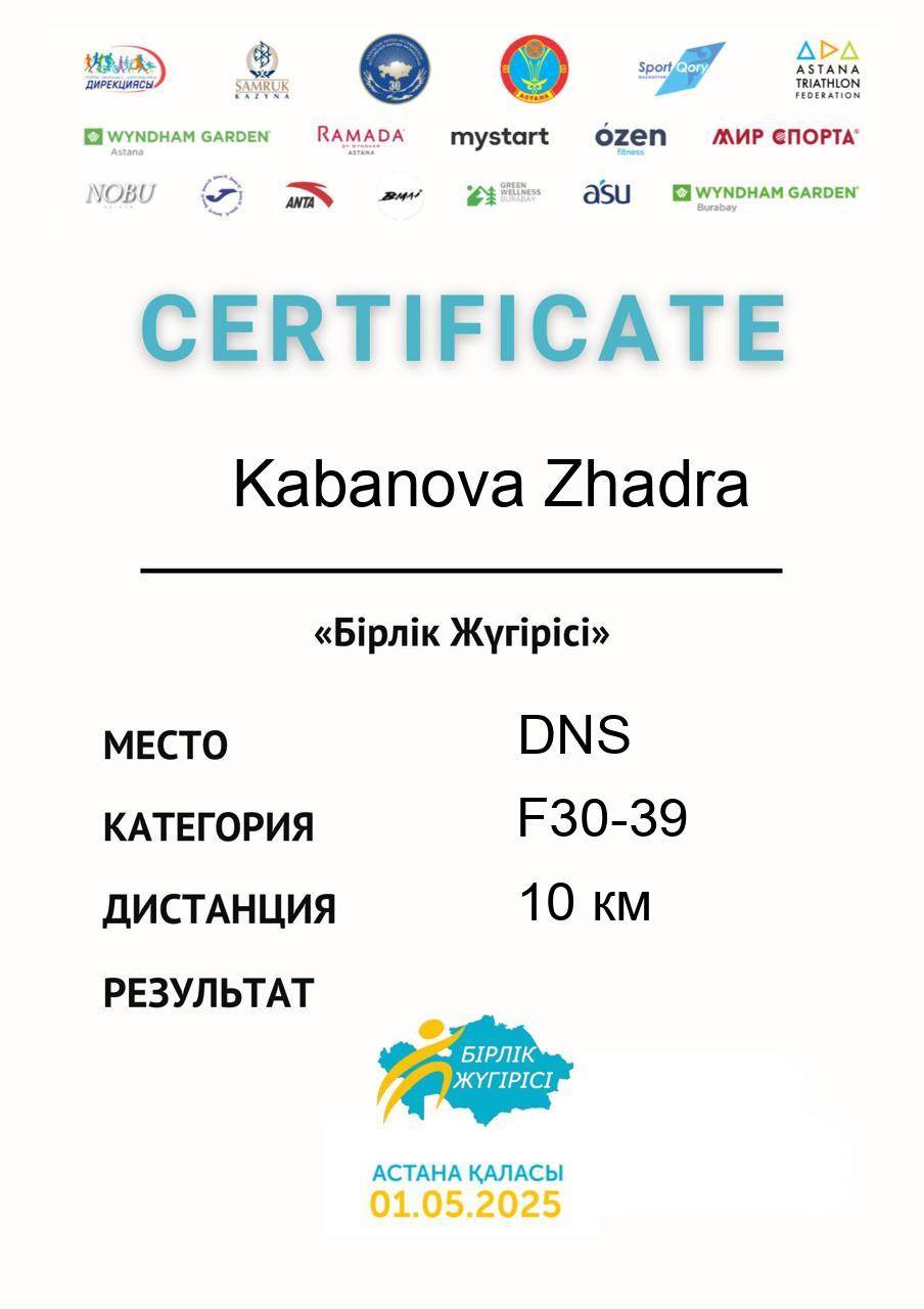 | DNS | Kanatova Aliya | 153 | F30-39 | 5 км | Скачать | |||
