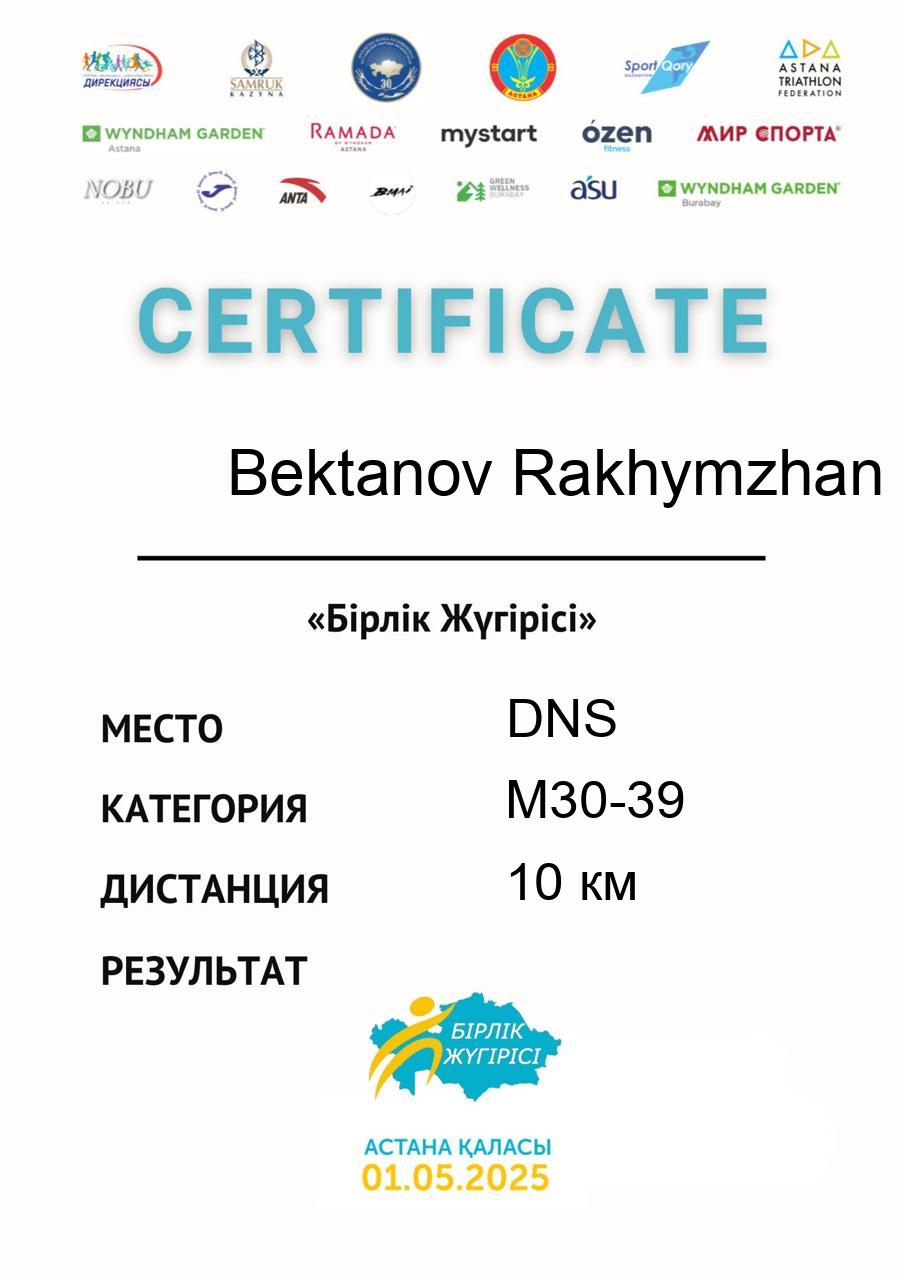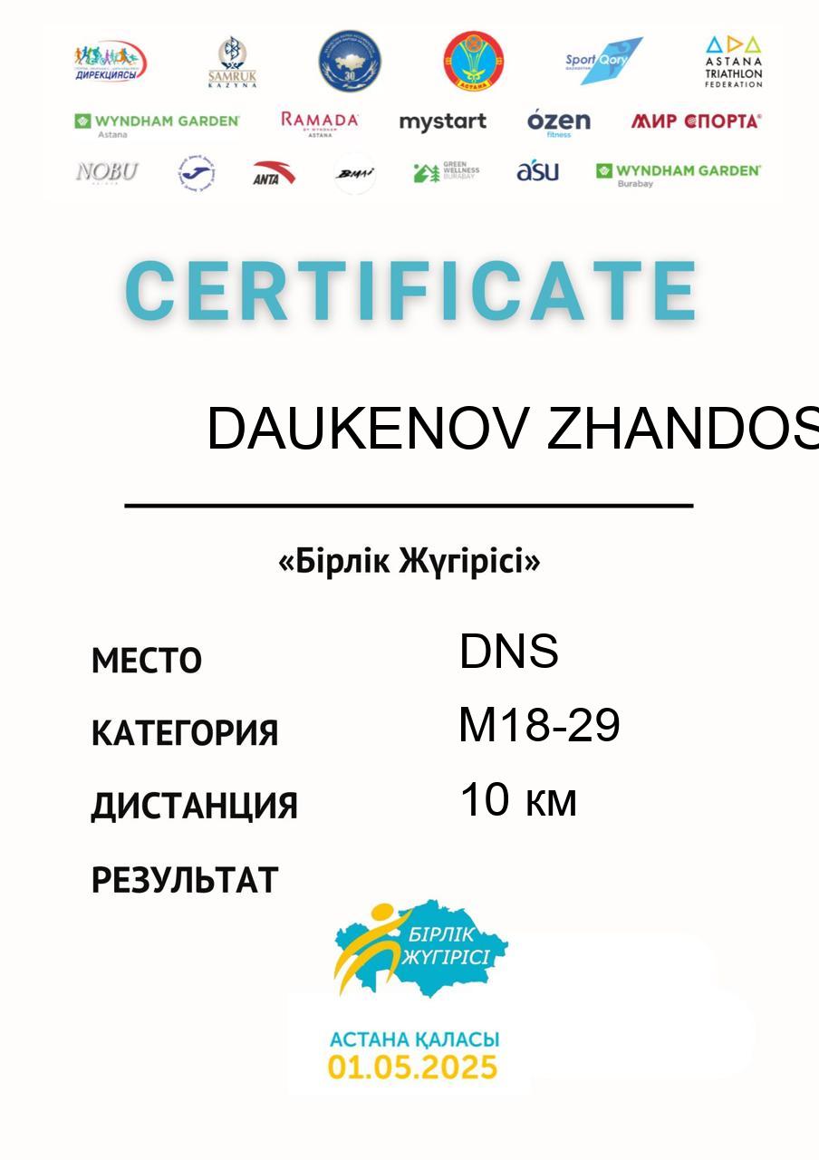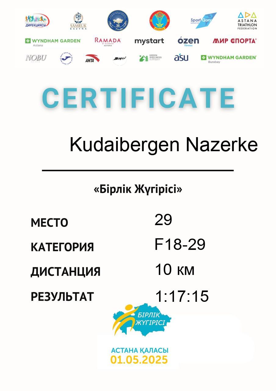 | DNS | Balmagambet Aktolkyn | 69 | F18-29 | 5 км | Скачать | |||