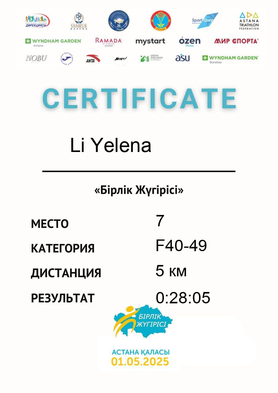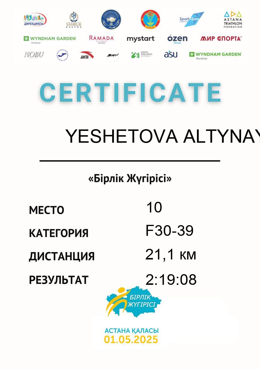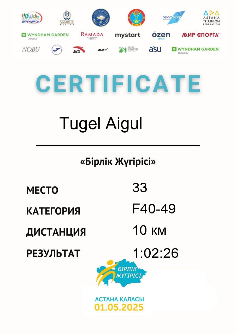 | DNS | ASSYLGAREYEVA YULIYA | 49 | F30-39 | 5 км | Скачать | |||