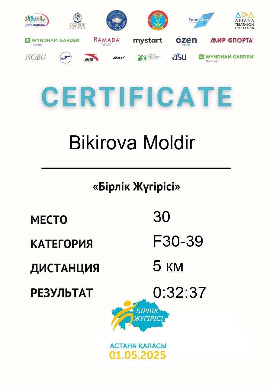 | DNS | Amirova Aidana | 35 | F30-39 | 5 км | Скачать | |||
