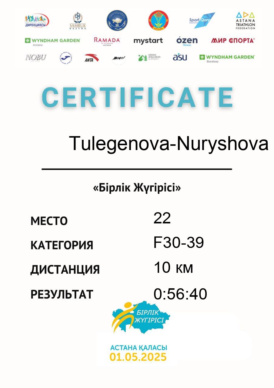 | DNS | Zhantassova Anar | 2540 | F30-39 | 10 км | Скачать | |||