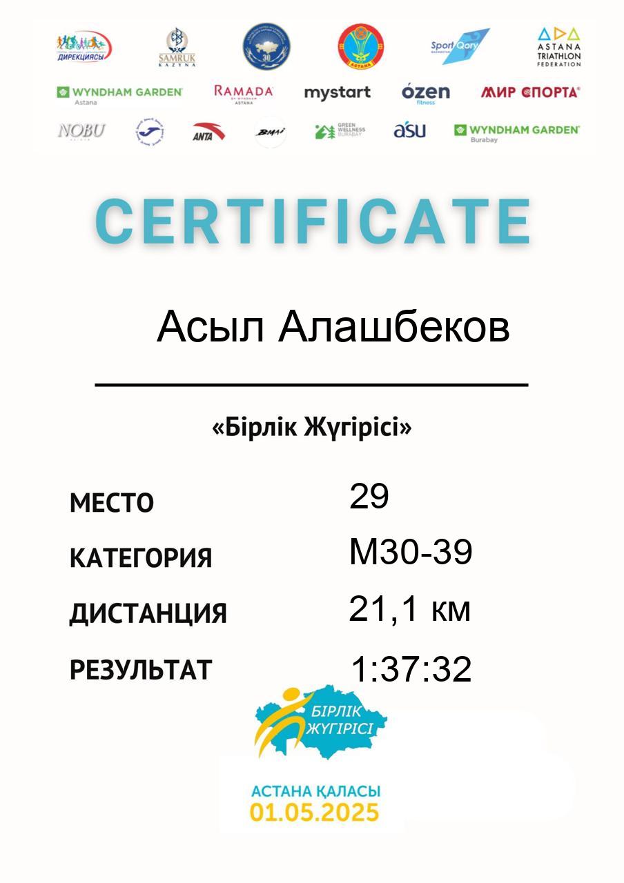 | 64 | Kusmagul Nurbolat | 4085 | M30-39 | 21,1 км | 5:44 | 2:01:14 | 2:01:02 | Скачать |