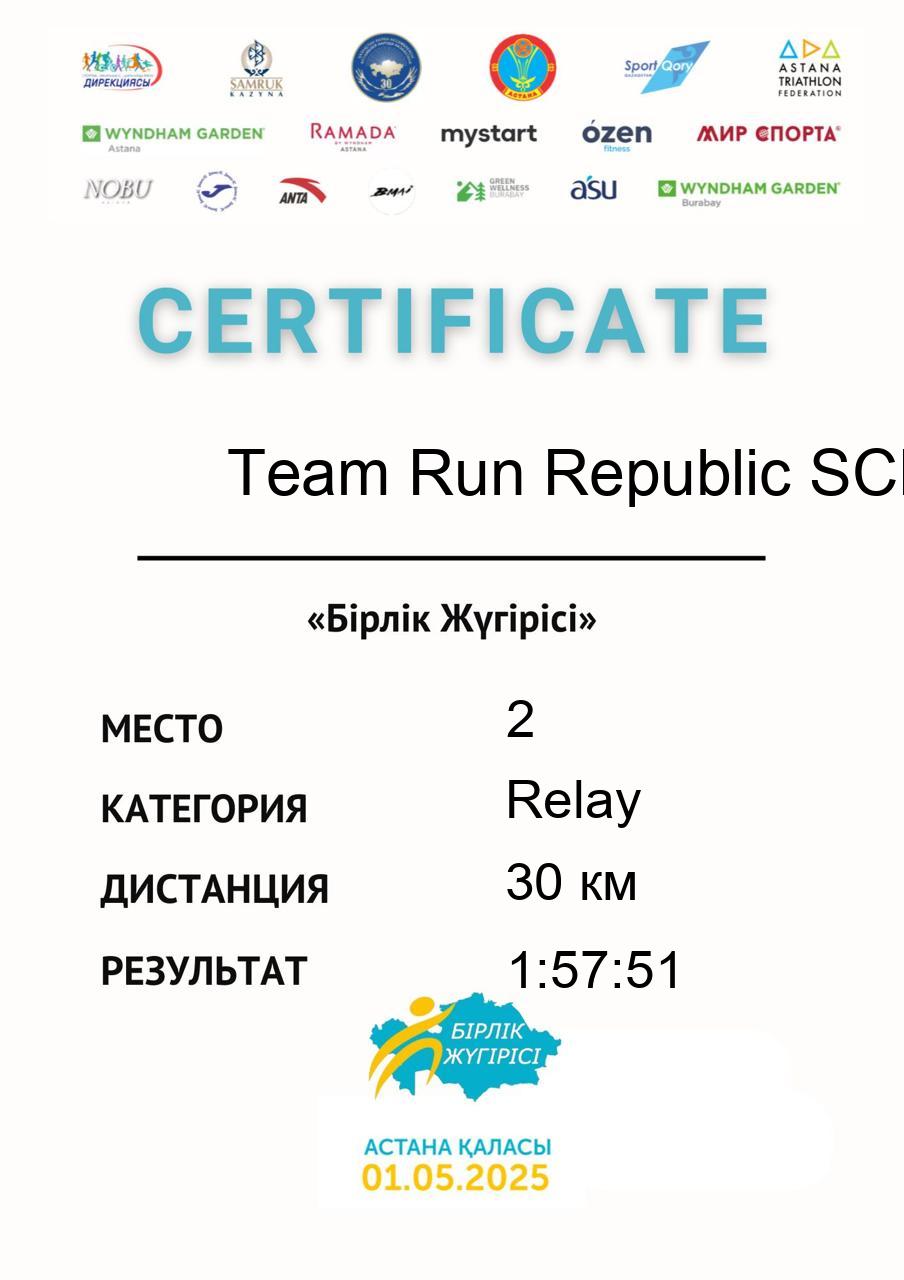 | 2 | Team Run Republic SCD | 5000 | Relay | 30 км | 3:55 | 1:57:55 | 1:57:51 | Скачать |